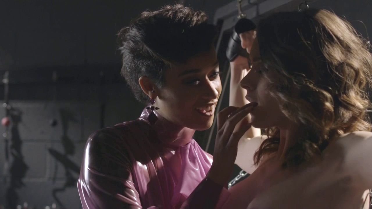 Эшли полностью раздевается перед сексуальной Дилан (Skin Diamond) в BDSM-подвале.
