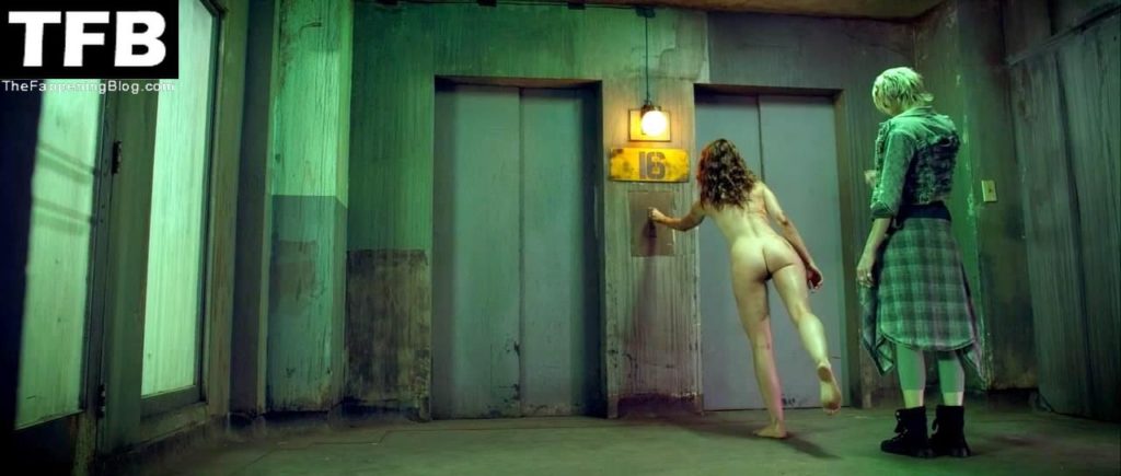 Эшлинн Йенни идёт голой по коридору к лифтам, где её ждёт Кэти Кэссиди. Эшлинн показывает груди и ягодицы, разговаривая с Кэти, при этом она ничего не носит.