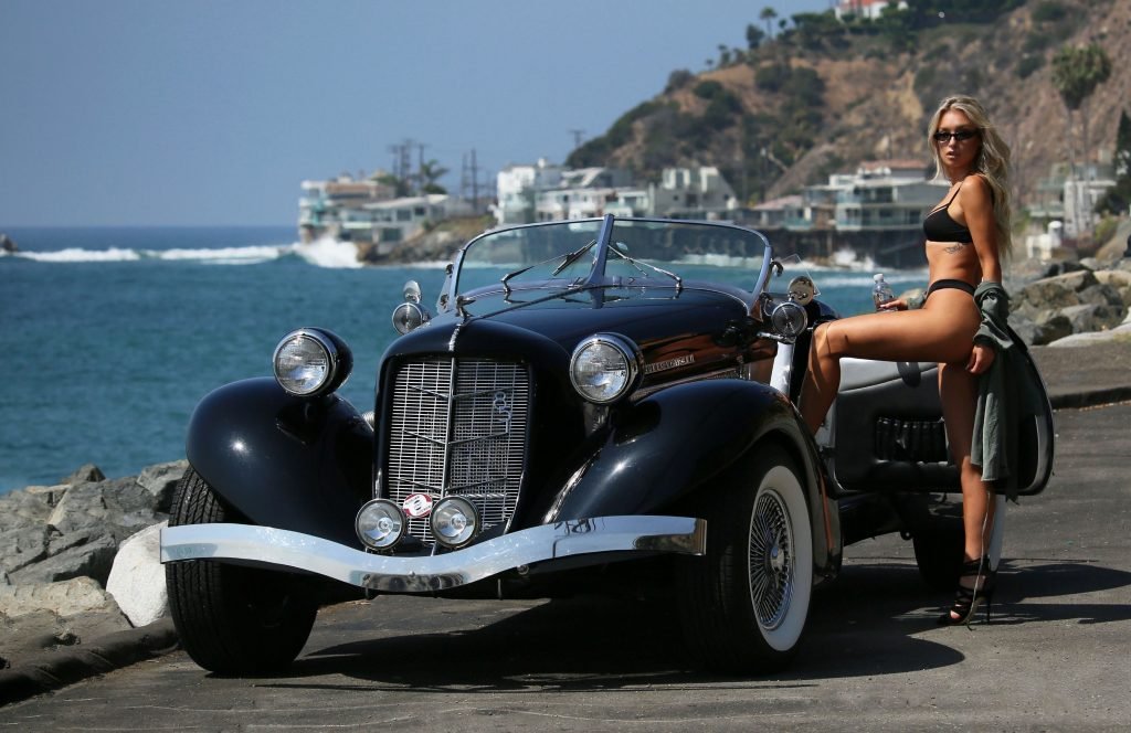 Обри Эванс заставляет сердце биться чаще, готовясь к большому прорыву в Голливуде. 28-летняя плеймейт и модель Playboy демонстрирует свою подтянутую фигуру в сексуальном черном кружевном бюстгальтере и туфлях на съемочной площадке своей последней фотосессии 138 Water в Малибу, где она позирует с классическим автомобилем для кампании, 11/06/2018.