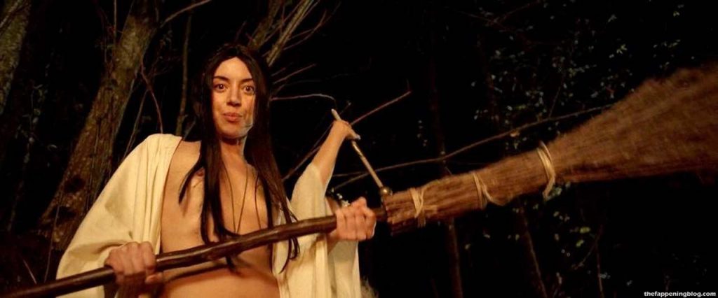 Check out one more scene of Aubrey Plaza’s naked boobs, where she is seen with Jemima Kirke and Kate Micucci. These three actresses are topless, playing witches around the tied man in the woods! Her nipple is erected; assume it was cold outside while they were filming this sexy scene!