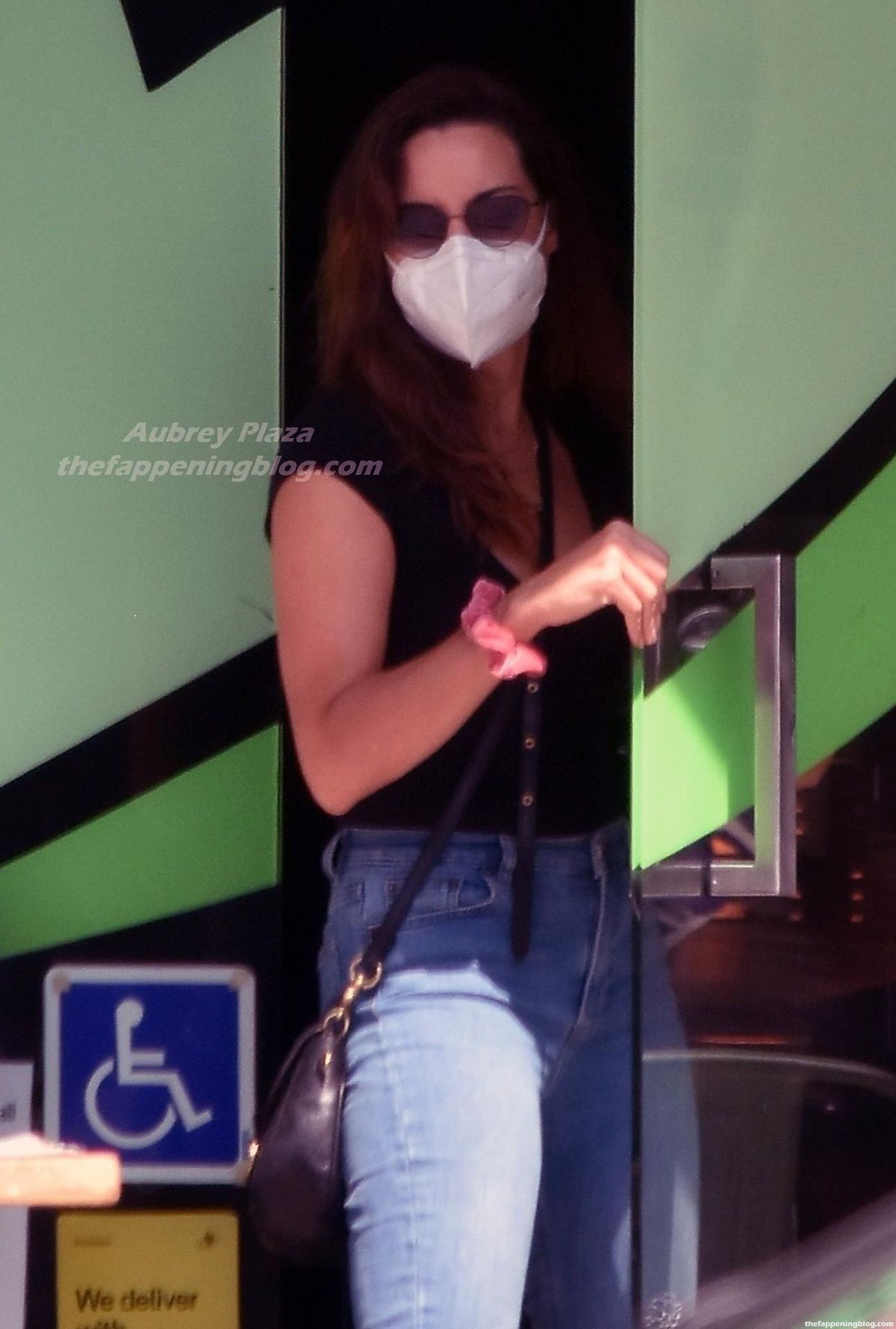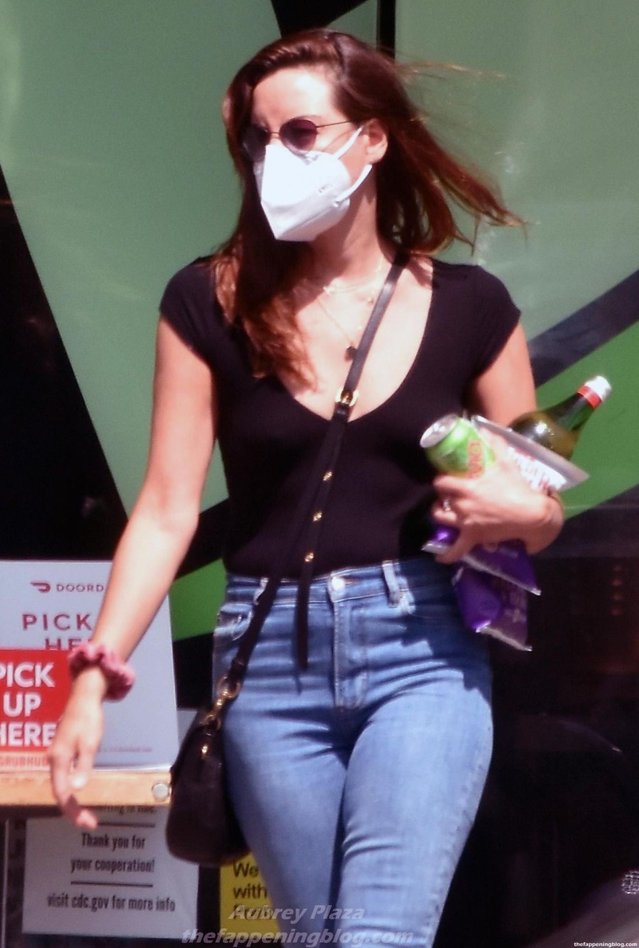 Alright folks, so now, let’s look at some of the newest photos of miss Plaza that exist! It’s not hard to spot Aubrey Plaza tits in Los Angeles, especially on a hot and sunny day, while our favorite brunette is not wearing a bra! Her pokies were visible through that thin black shirt that she was wearing, and she was, as it seems, pumping some gas and getting some snacks at the gas station in Los Feliz!