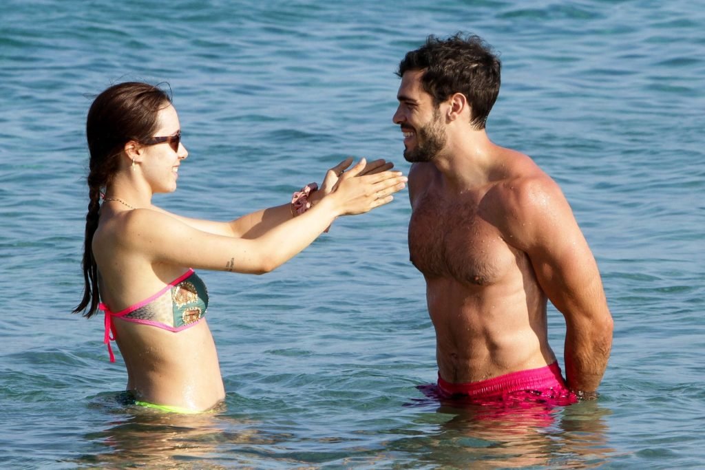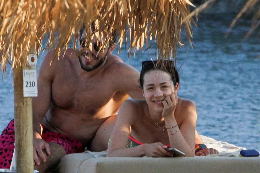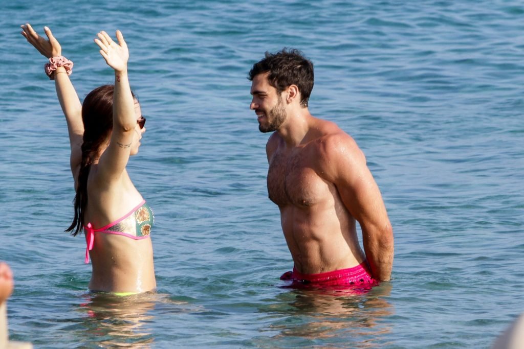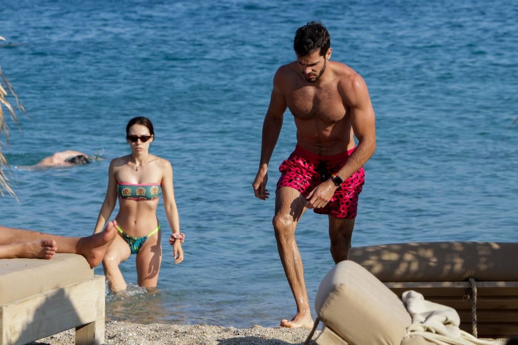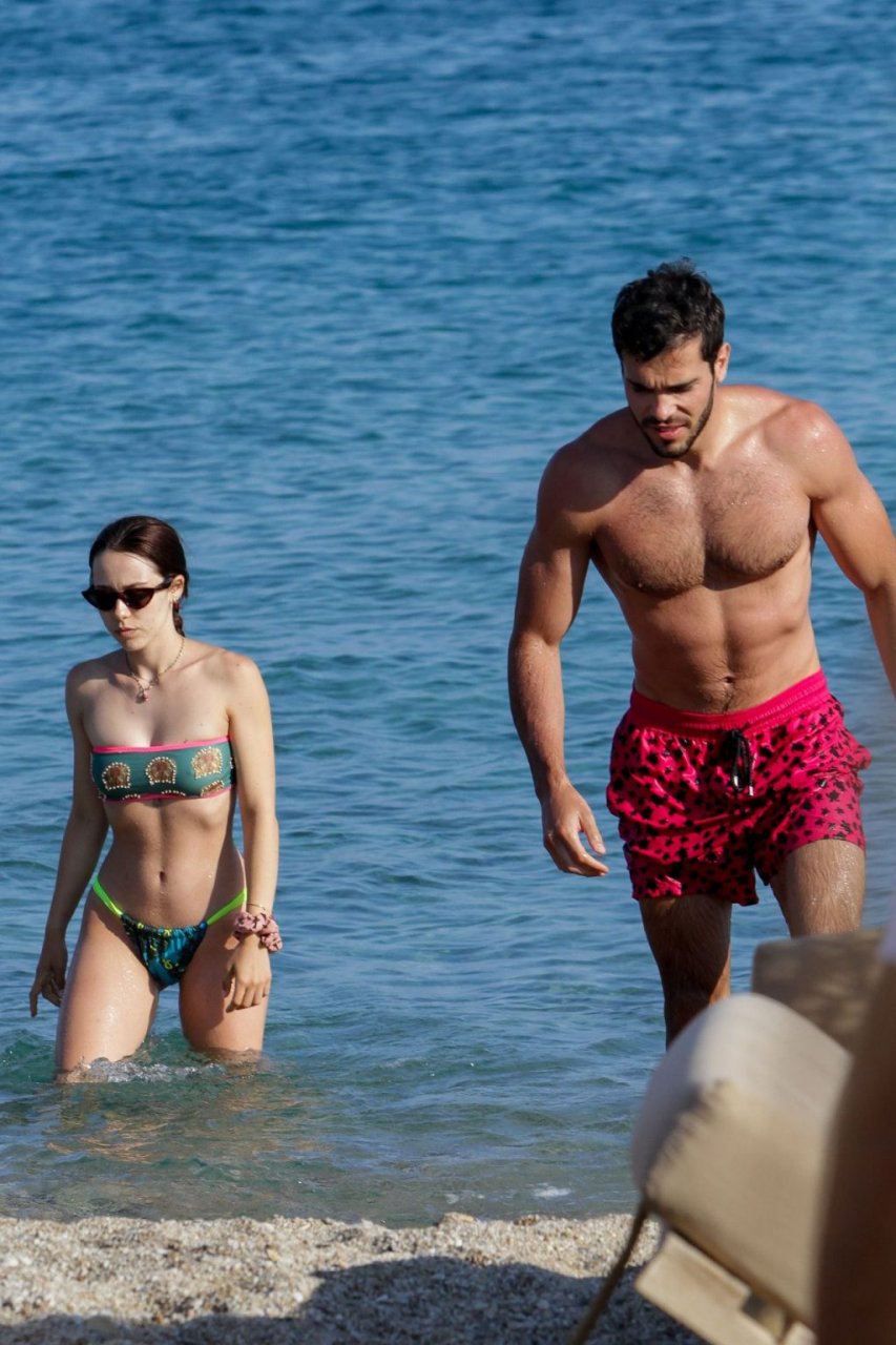Аврора Рамаззотти была замечена в бикини и топлесс с Гоффредо Черца на пляже острова Миконос, Греция, 02.08.2019.