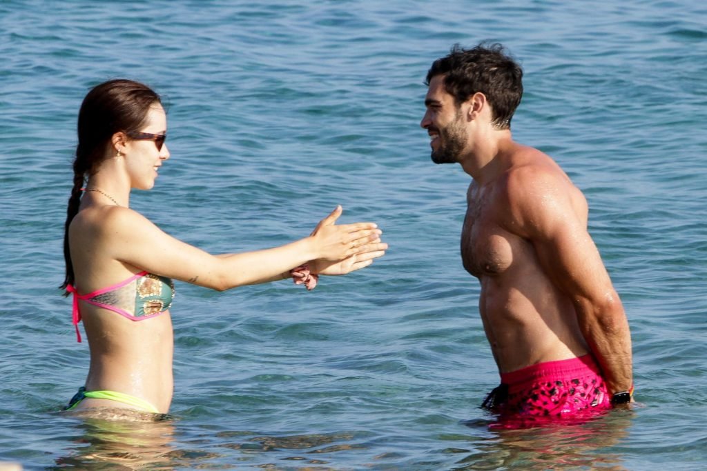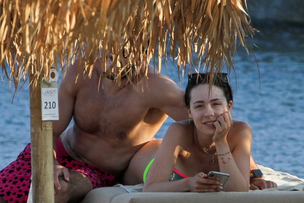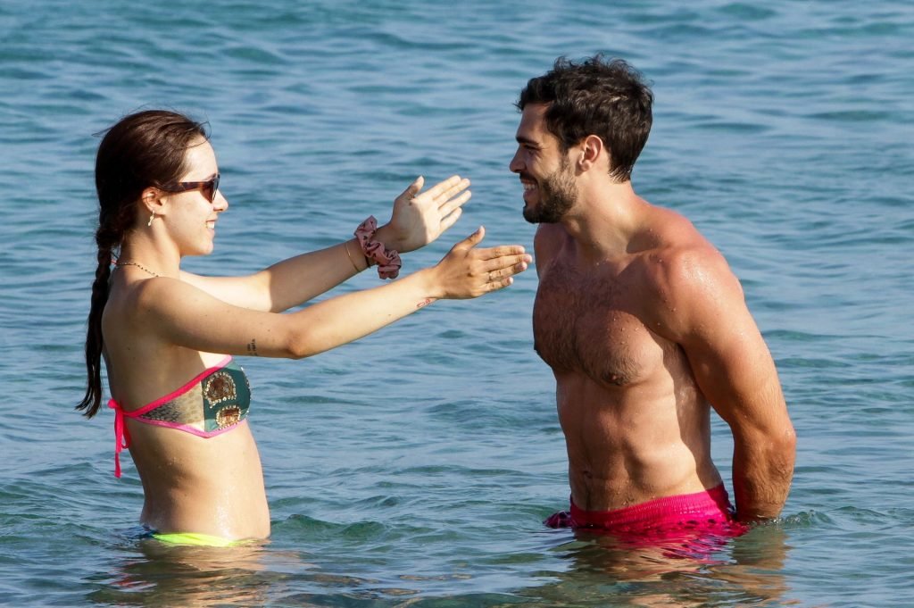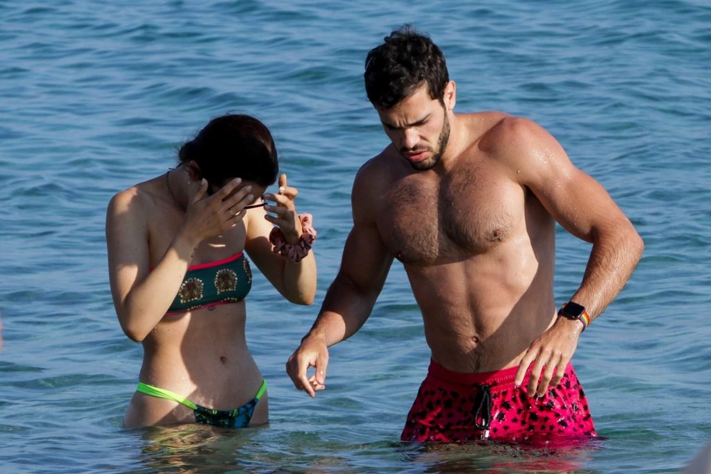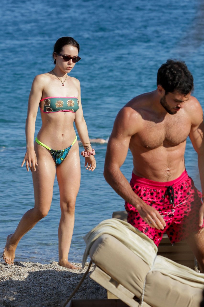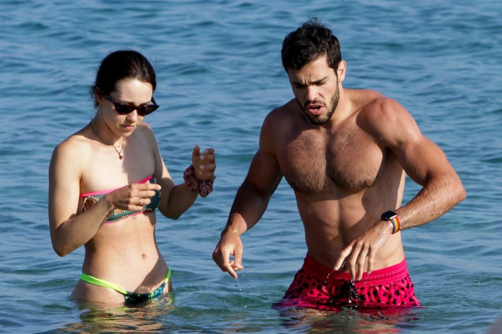 Аврора Рамаззотти была замечена в бикини и топлесс с Гоффредо Черца на пляже острова Миконос, Греция, 02.08.2019.
