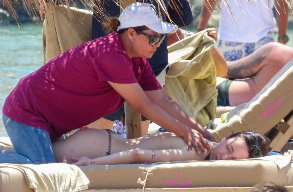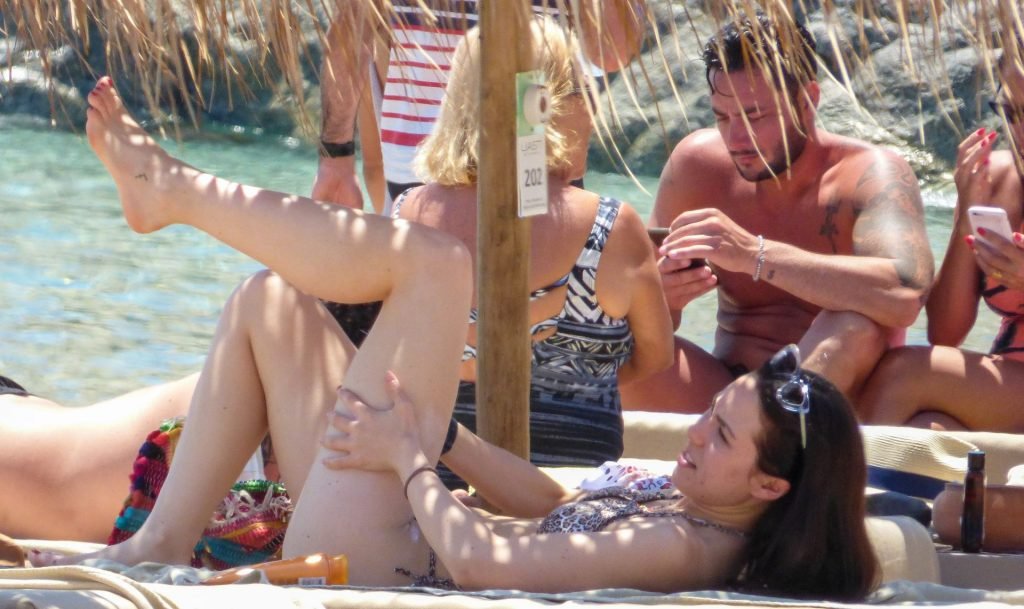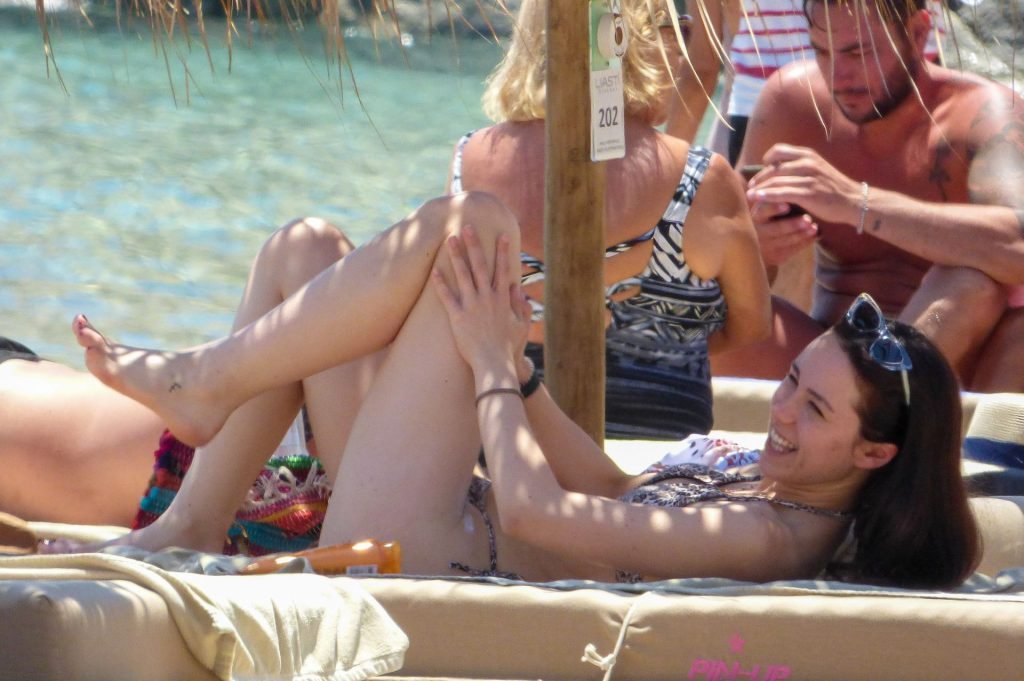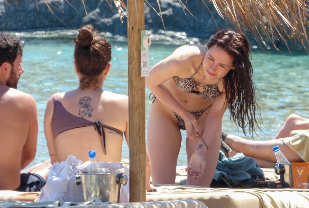 Аврора Рамаззотти была замечена, как она весело проводит время с подругами на пляже на острове Миконос, Греция, 06/06/2019.