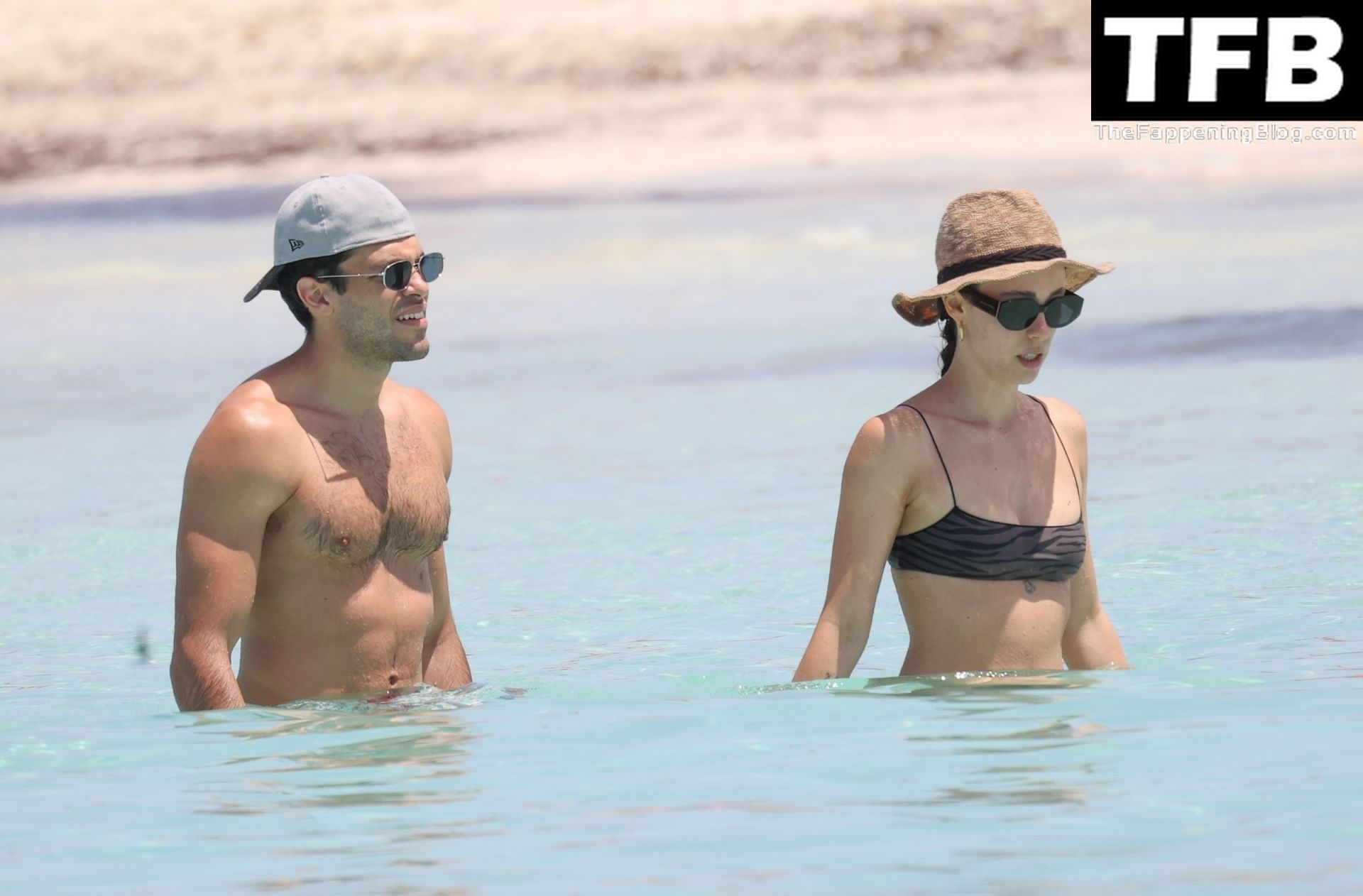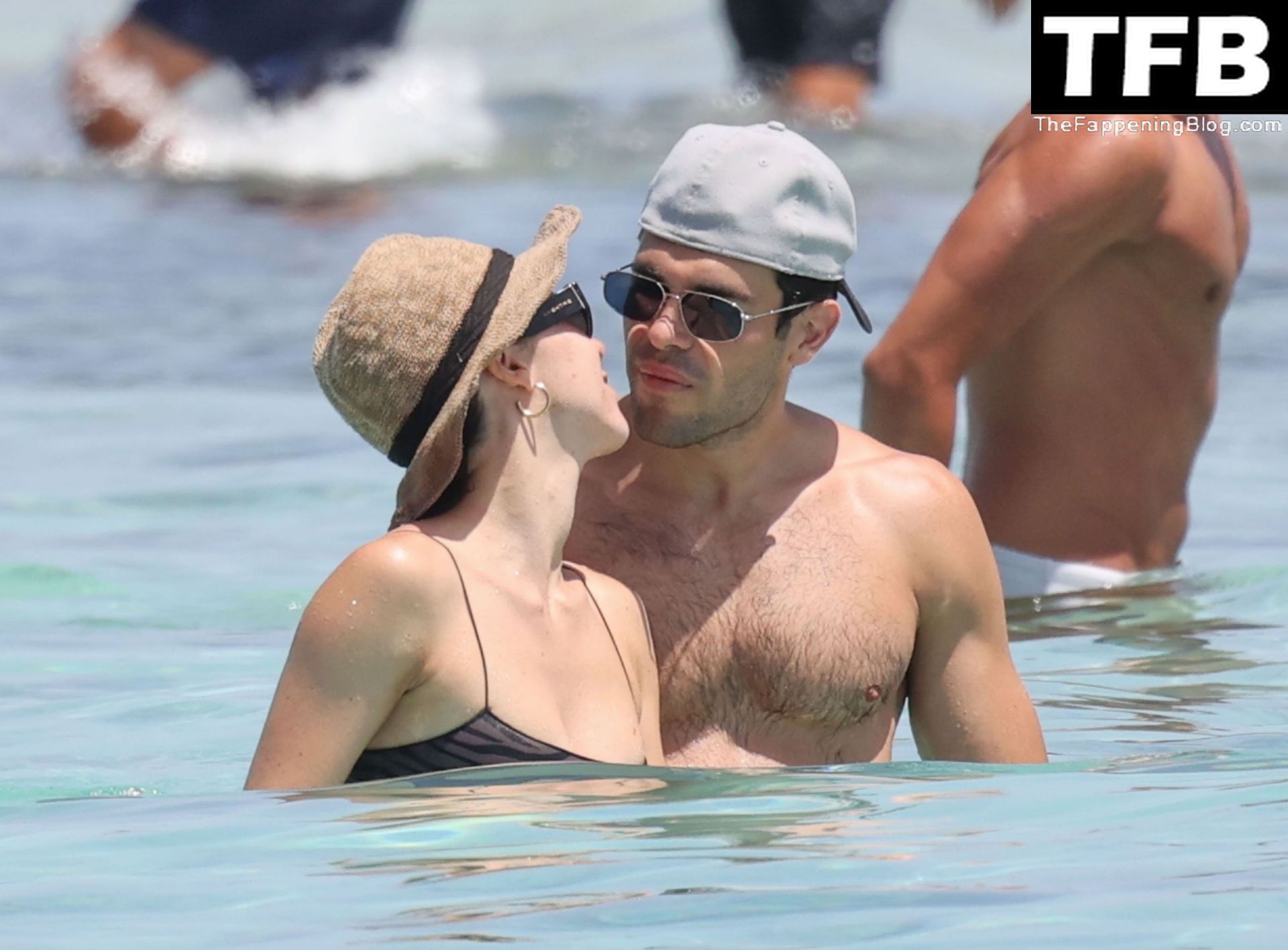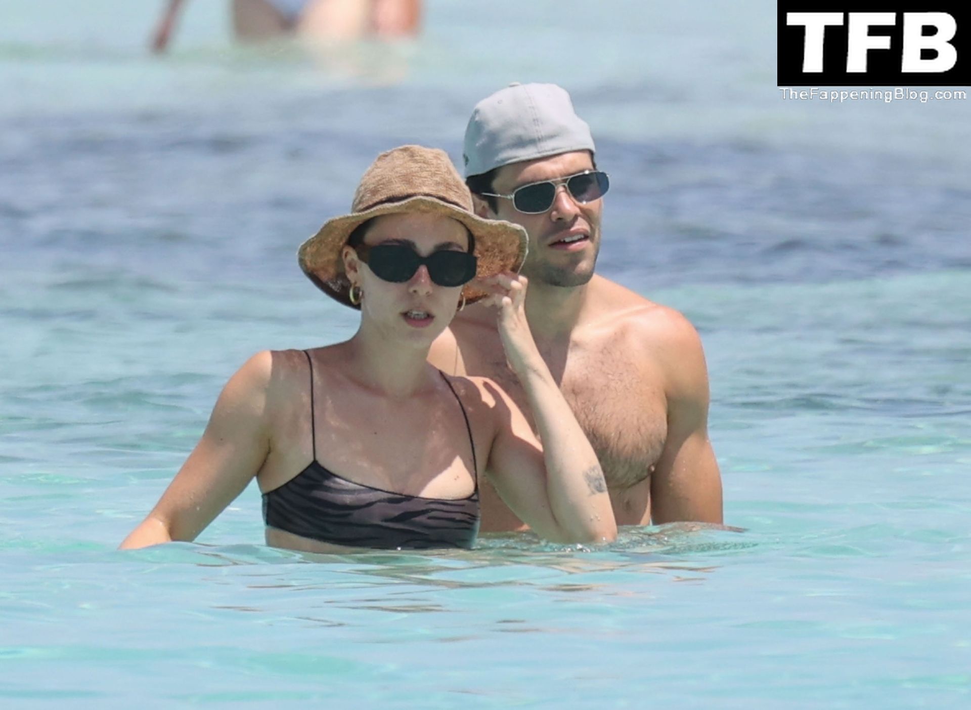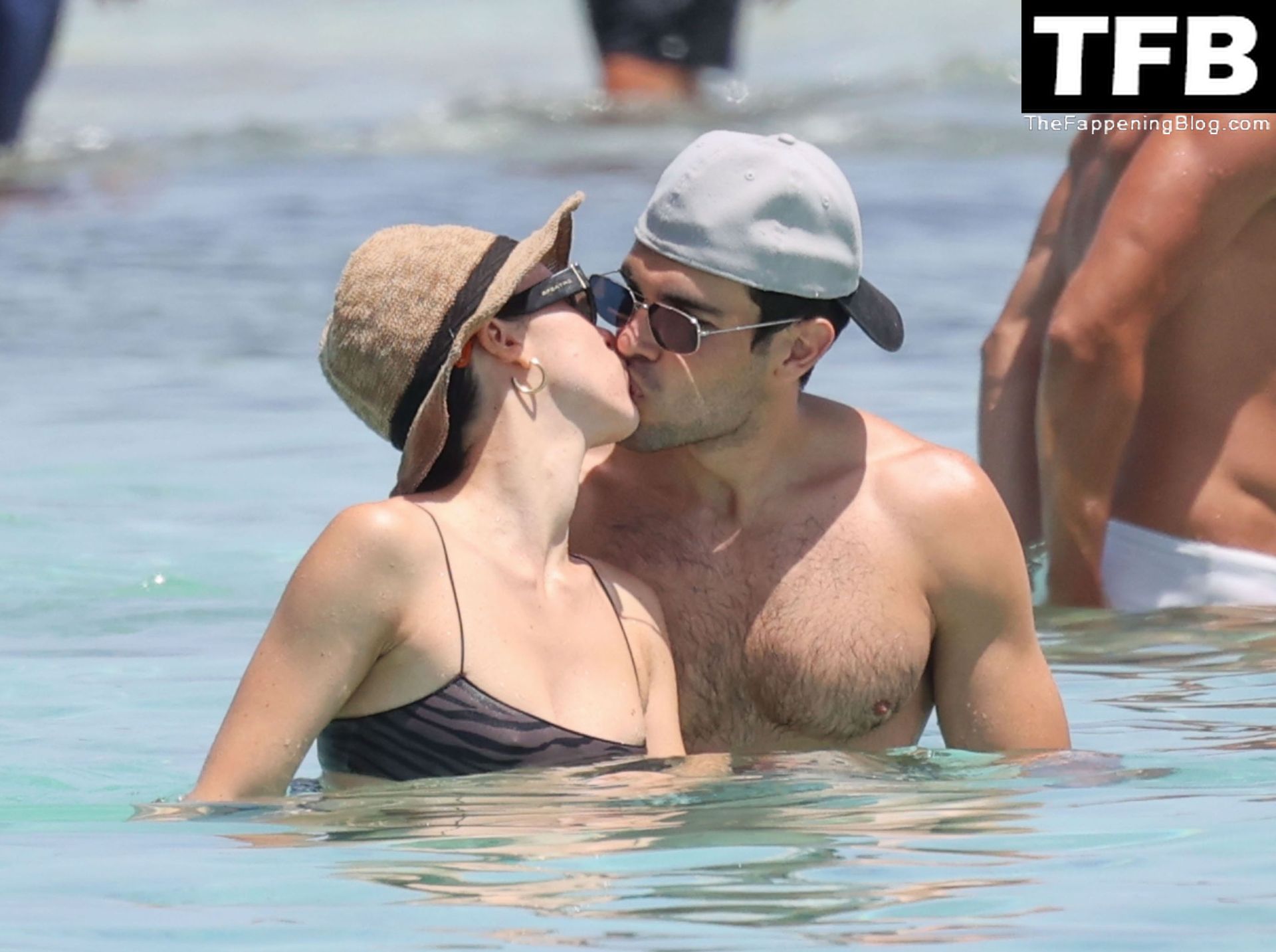 Итальянская телеведущая и дочь Мишель Хунцикер Аврора Рамаззотти демонстрирует свою стройную фигуру в крошечном черном бикини во время отпуска с бойфрендом Гоффредо Черца, проявляя нежности на пляже на Форментере, Испания, 17.06.2022.