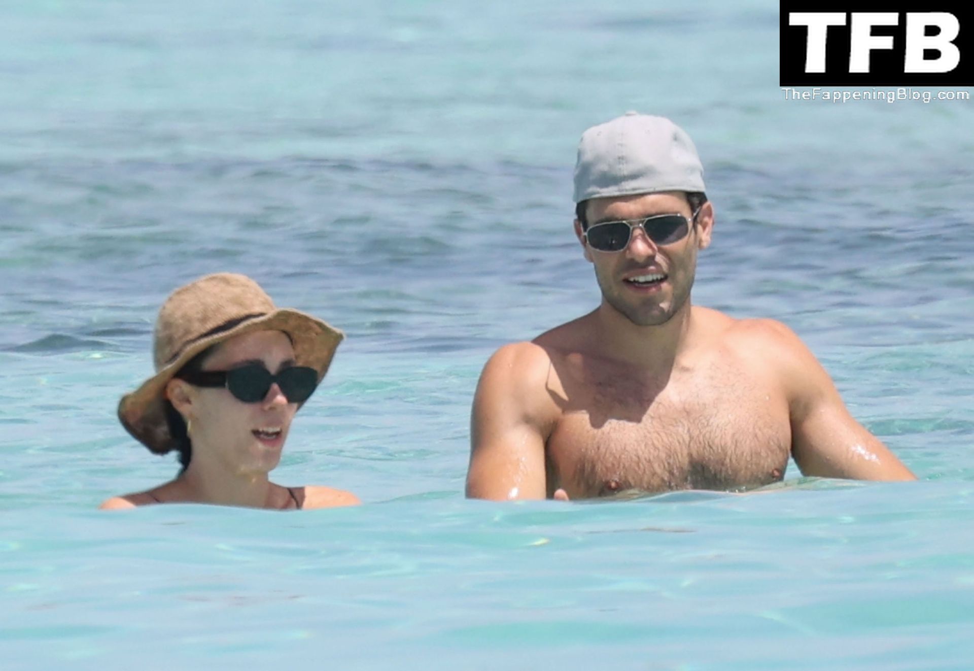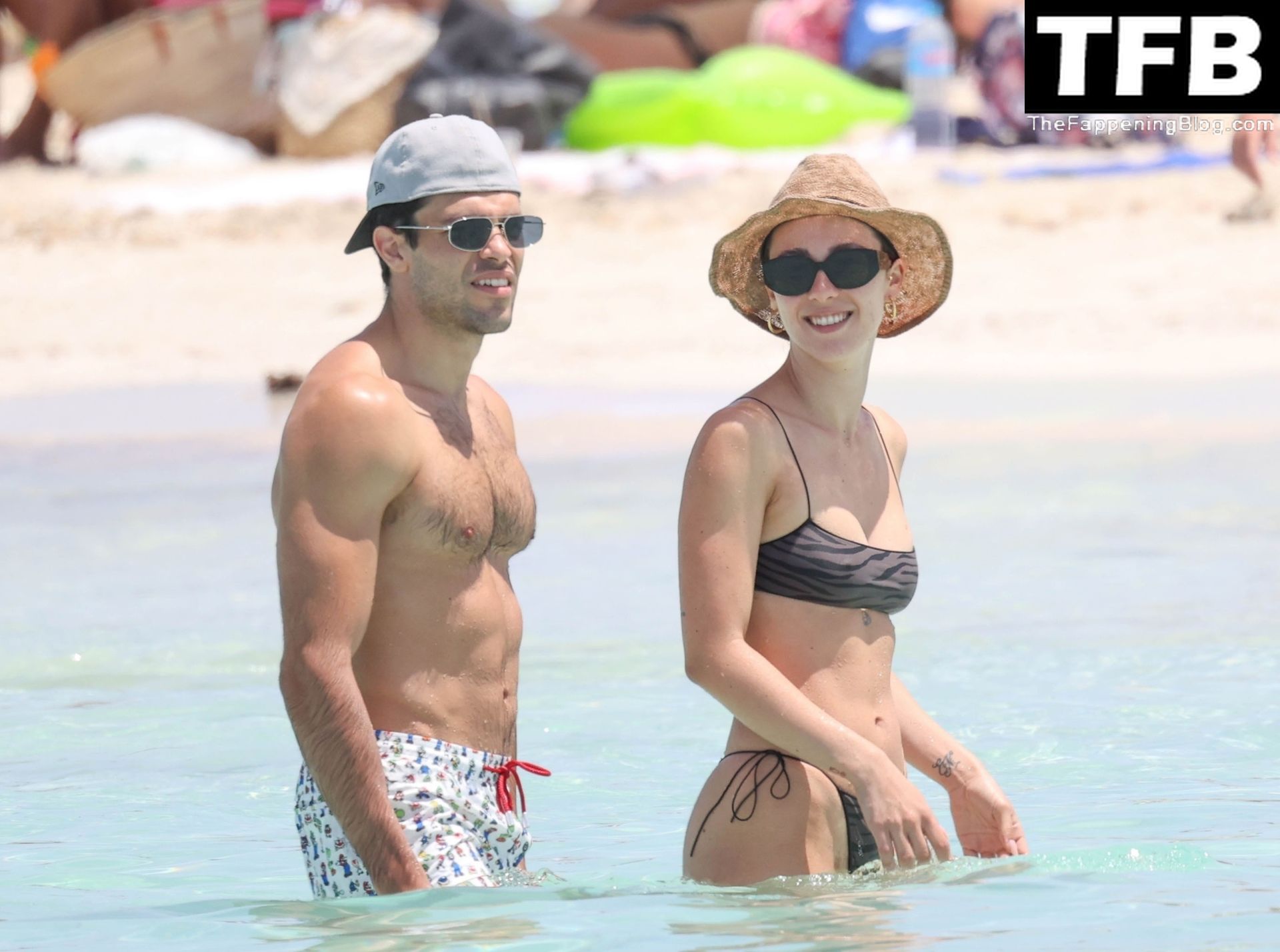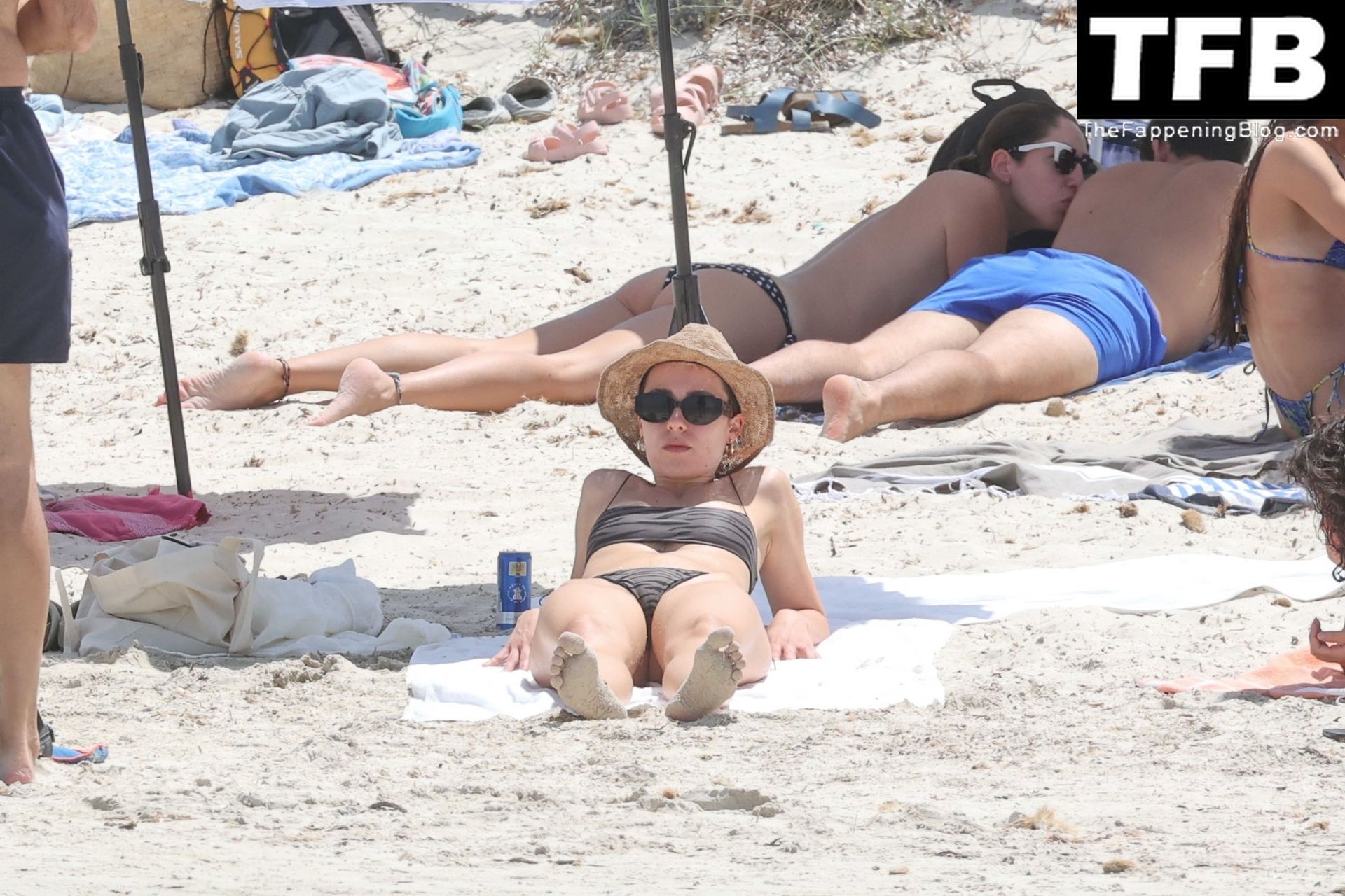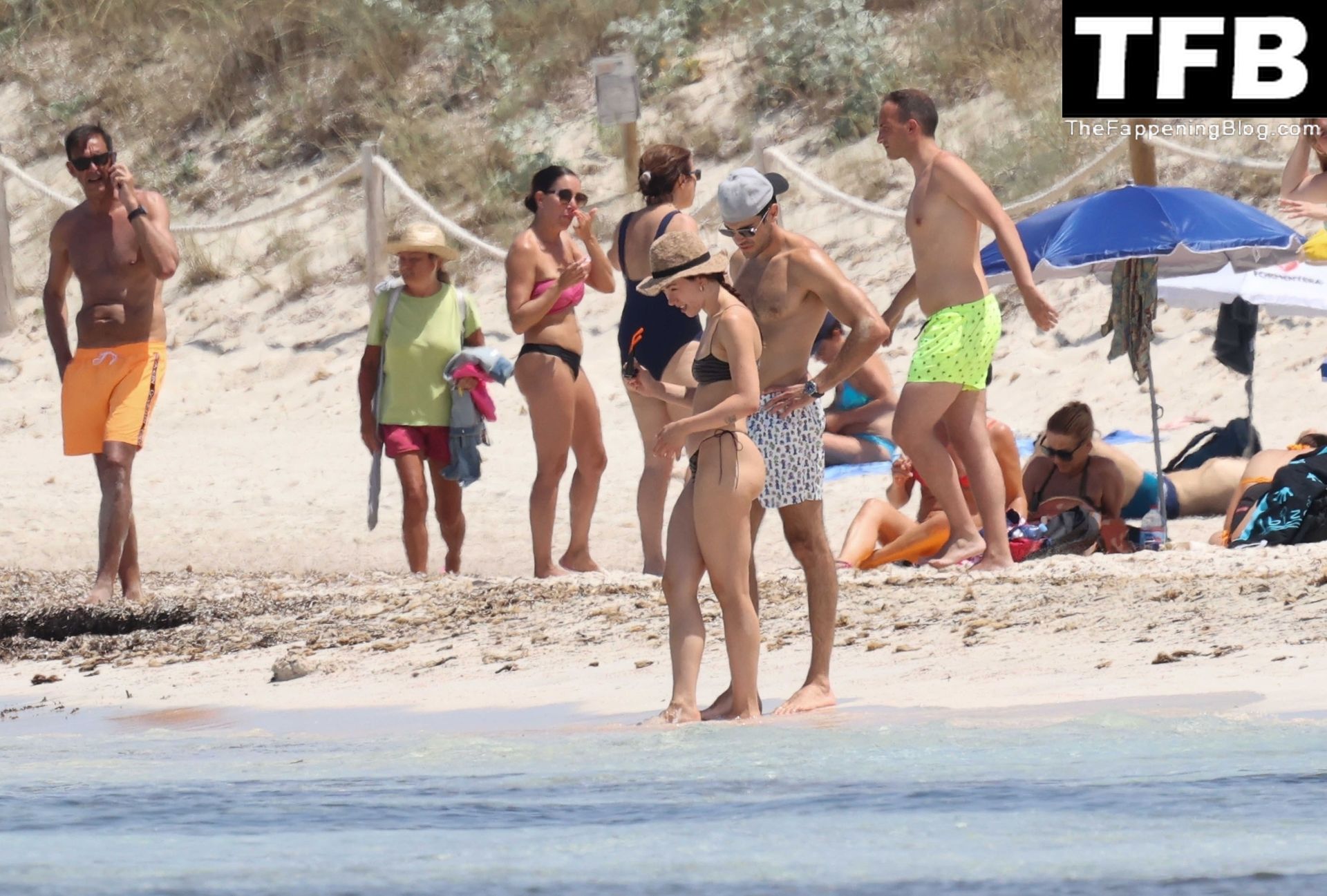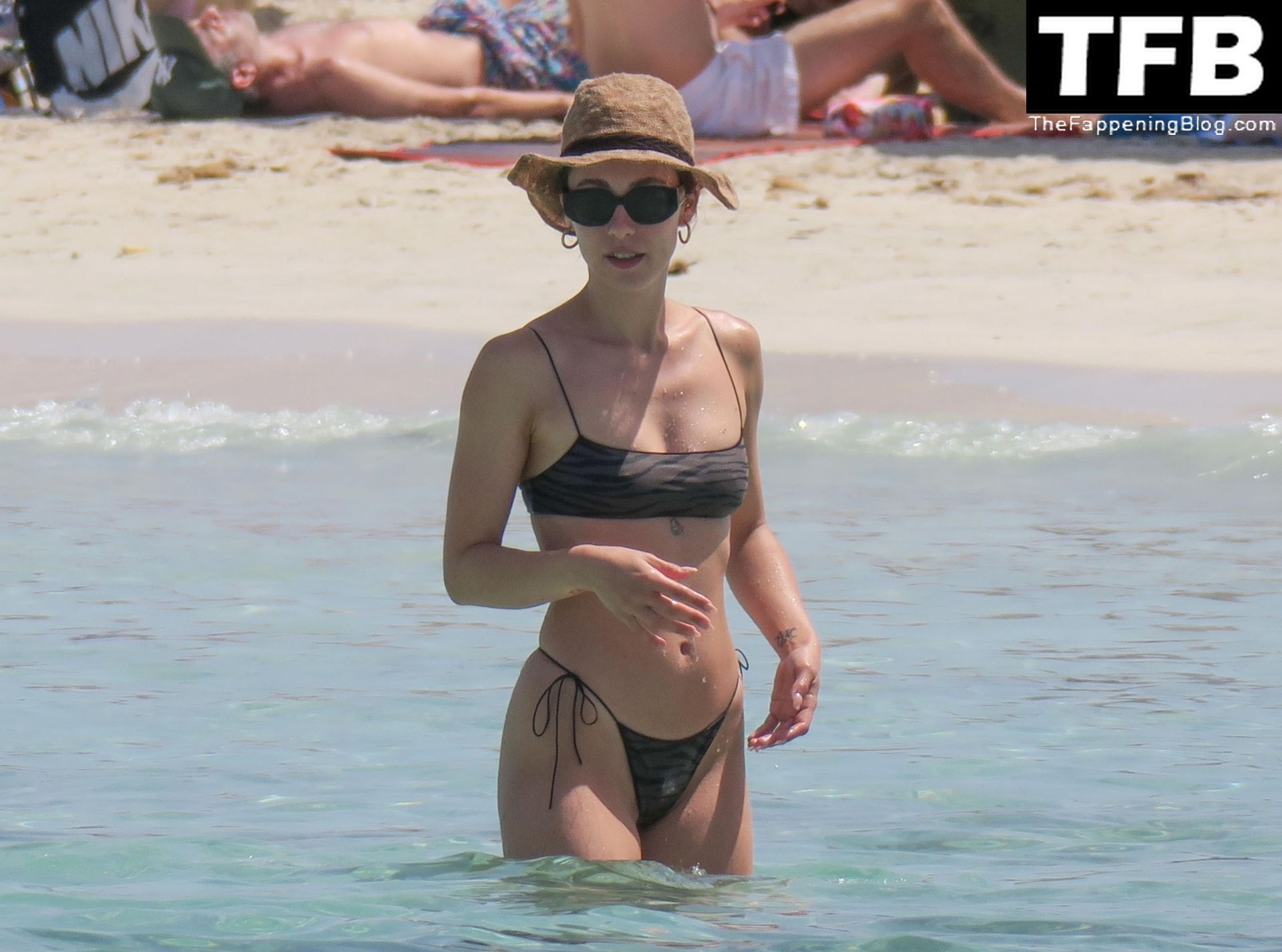 Итальянская телеведущая и дочь Мишель Хунцикер Аврора Рамаззотти демонстрирует свою стройную фигуру в крошечном черном бикини во время отпуска с бойфрендом Гоффредо Черца, проявляя нежности на пляже на Форментере, Испания, 17.06.2022.