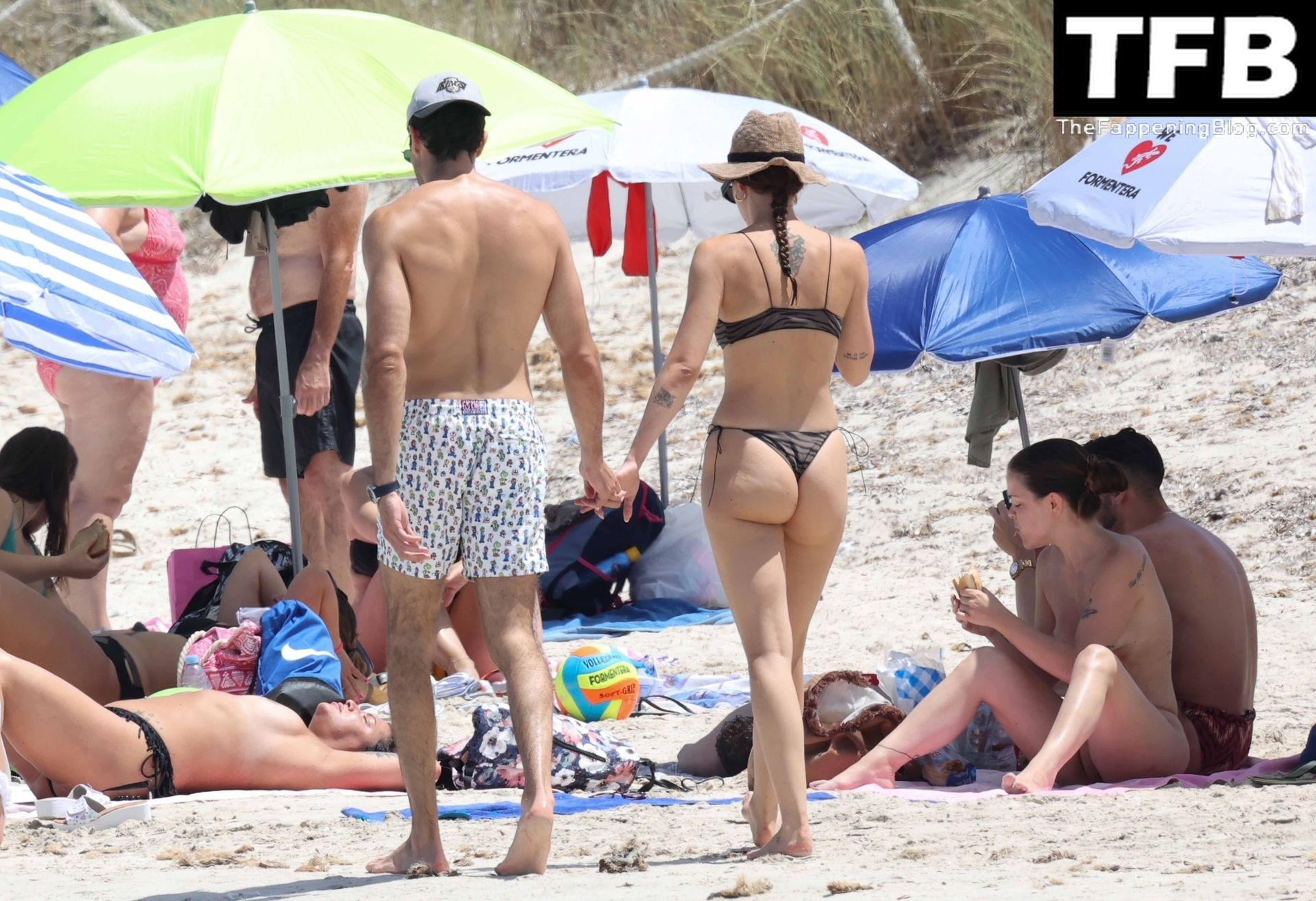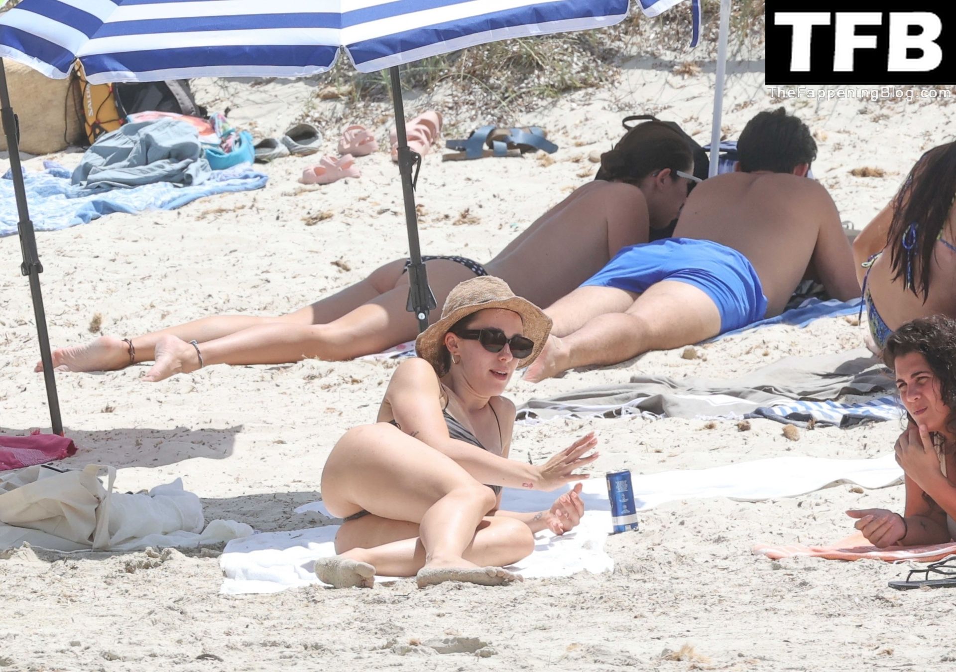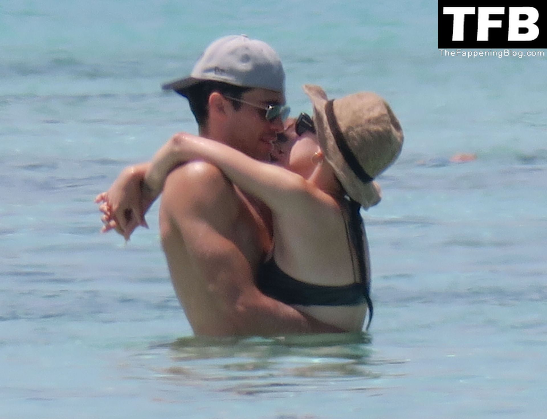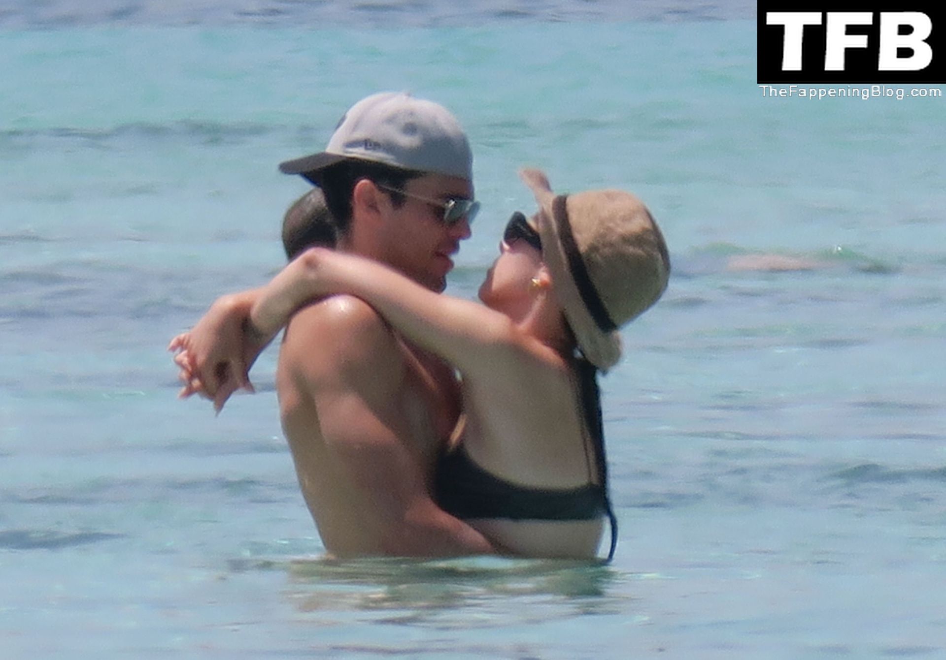 Итальянская телеведущая и дочь Мишель Хунцикер Аврора Рамаззотти демонстрирует свою стройную фигуру в крошечном черном бикини во время отпуска с бойфрендом Гоффредо Черца, проявляя нежности на пляже на Форментере, Испания, 17.06.2022.