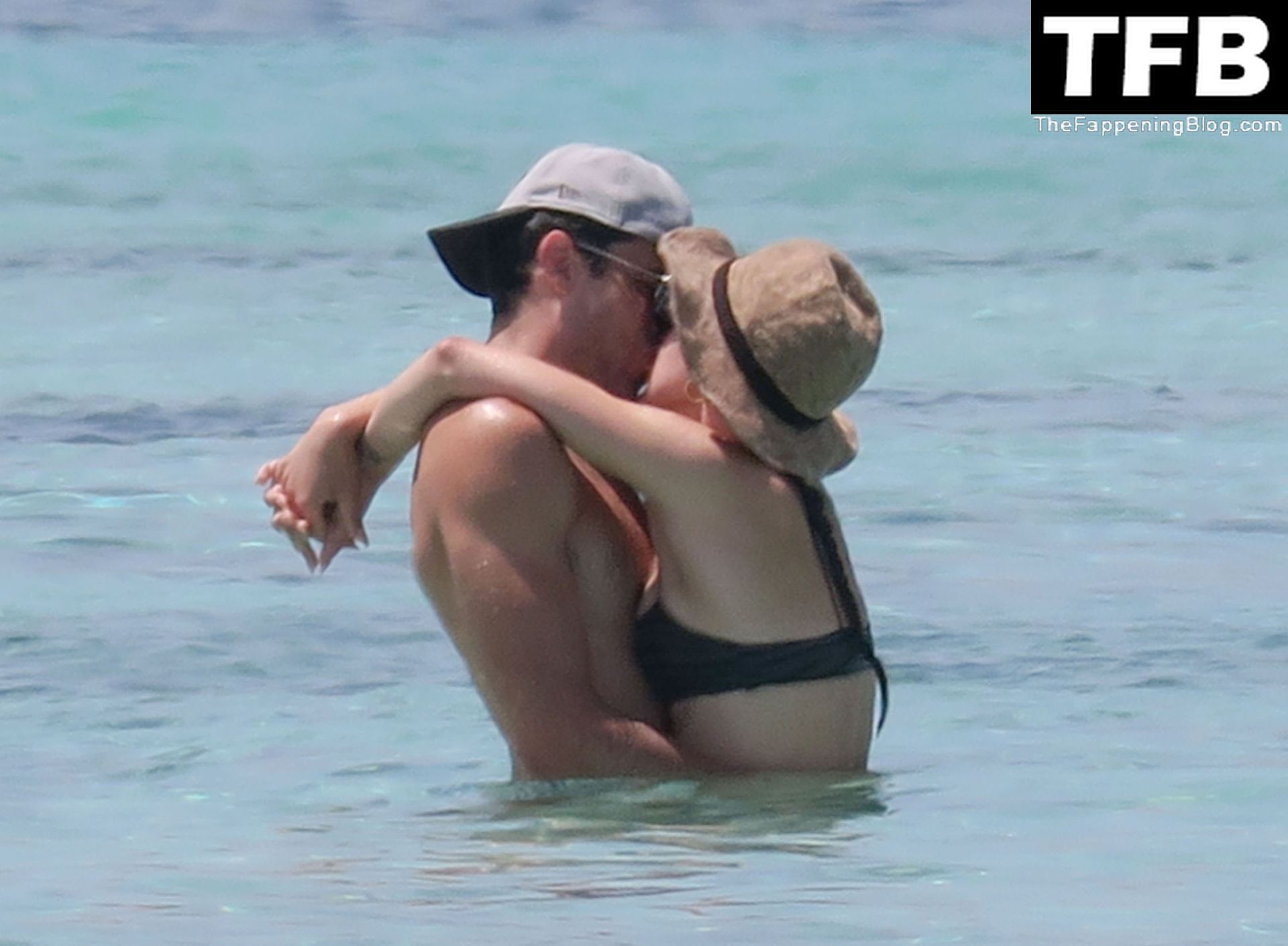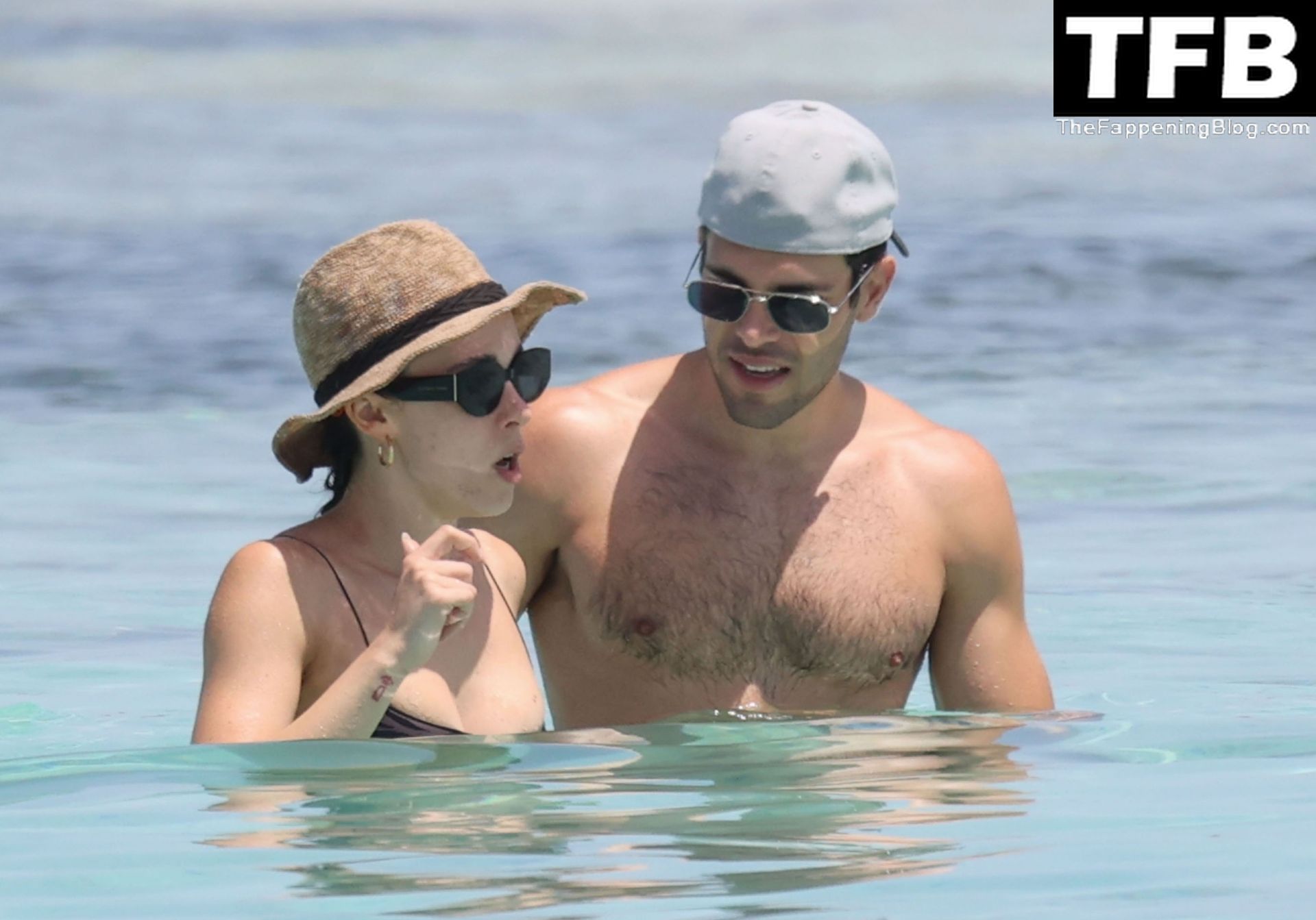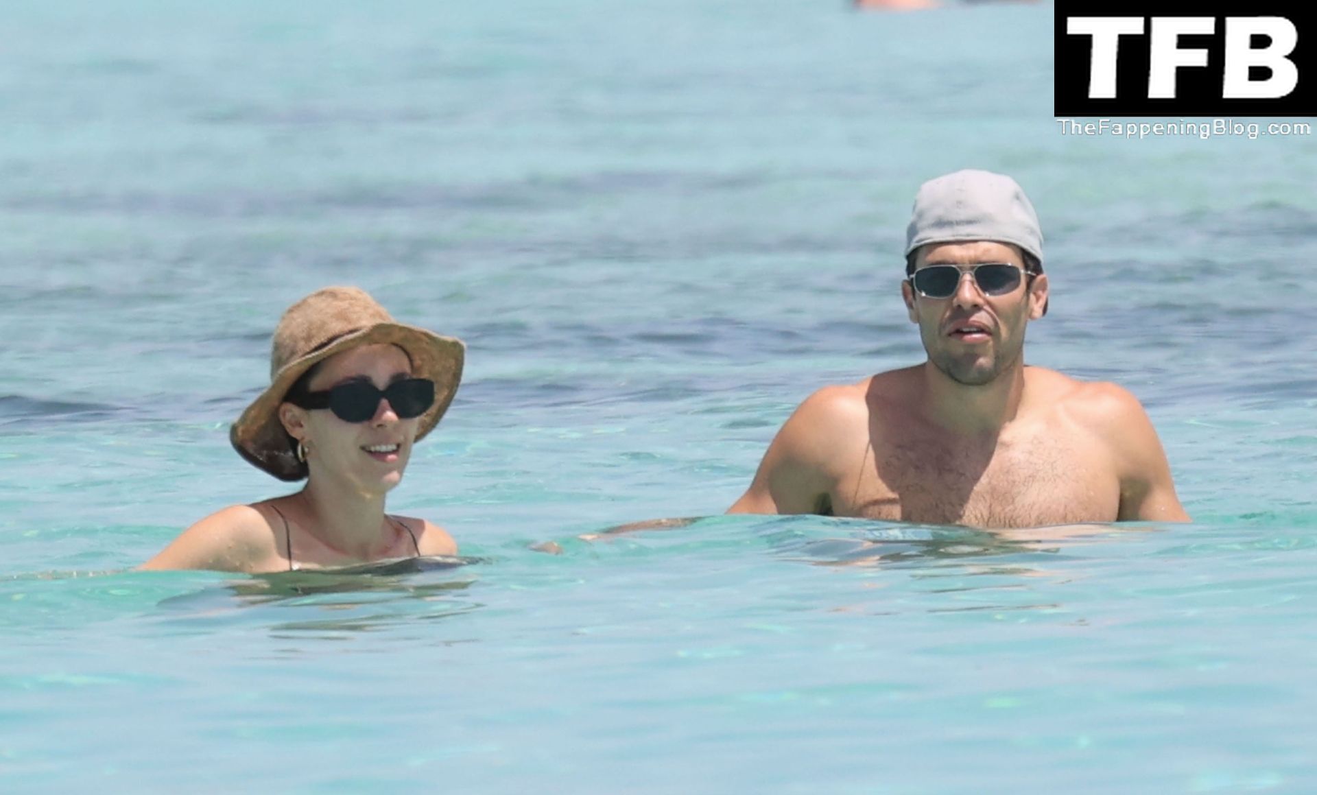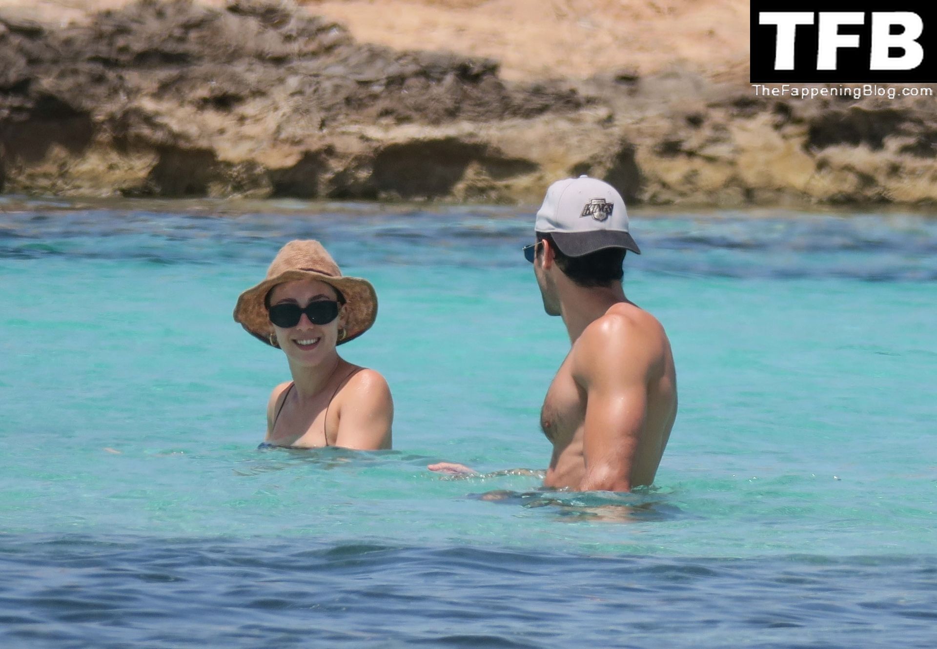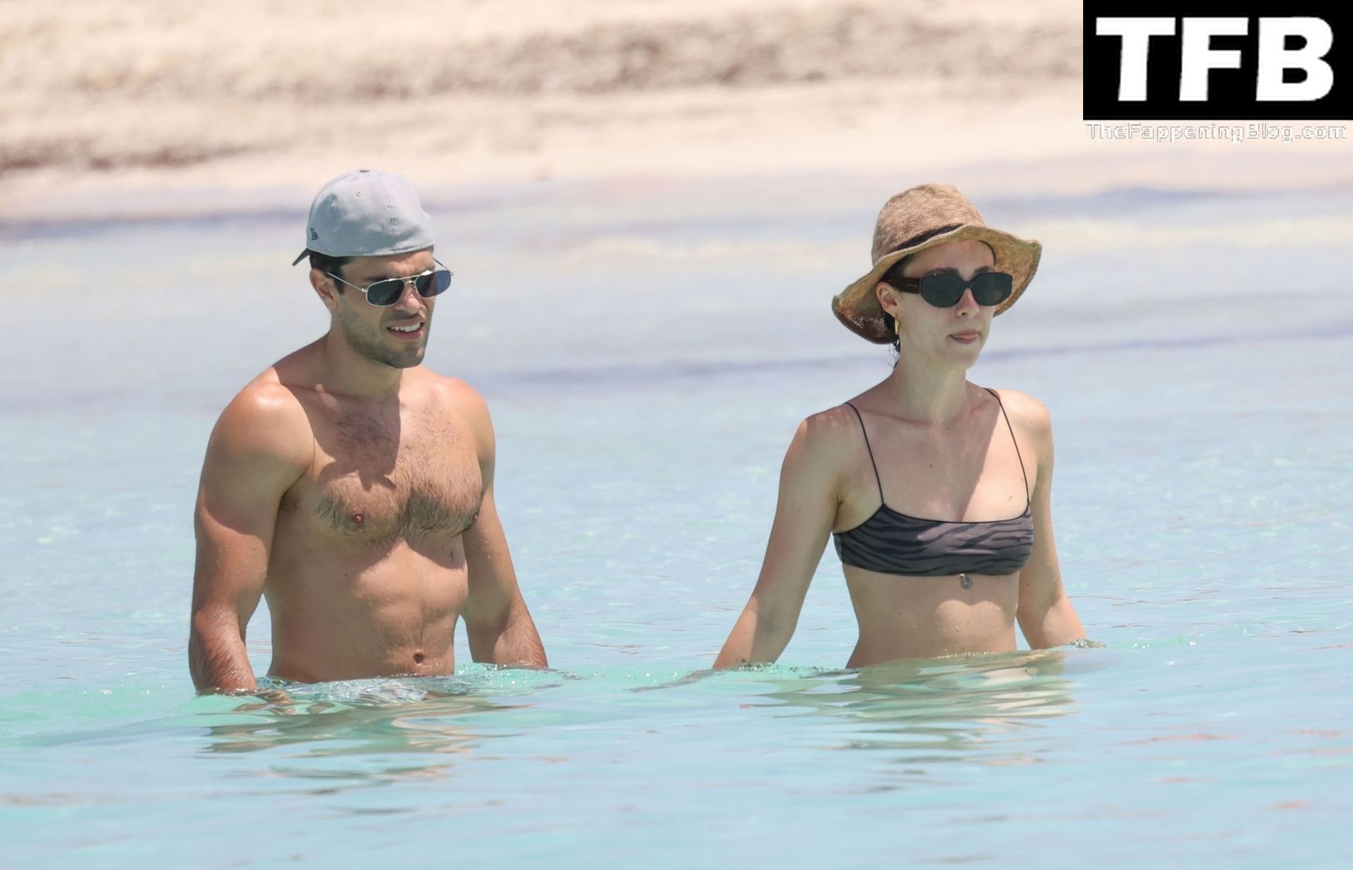 Итальянская телеведущая и дочь Мишель Хунцикер Аврора Рамаззотти демонстрирует свою стройную фигуру в крошечном черном бикини во время отпуска с бойфрендом Гоффредо Черца, проявляя нежности на пляже на Форментере, Испания, 17.06.2022.