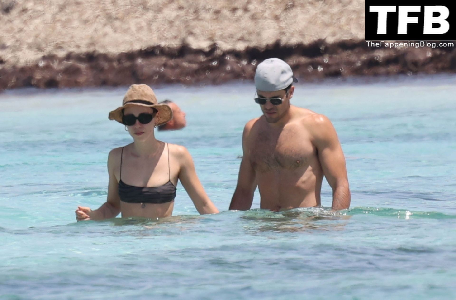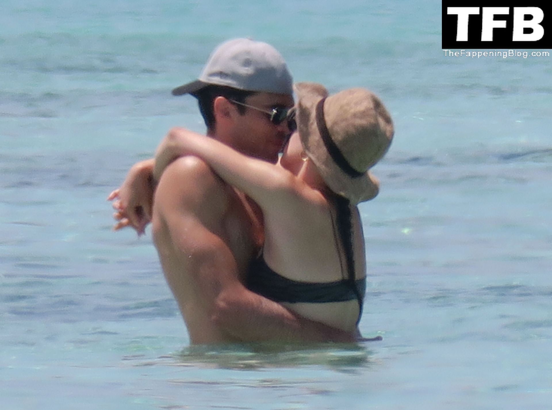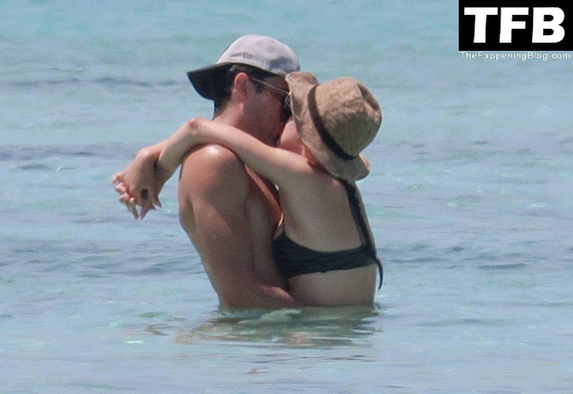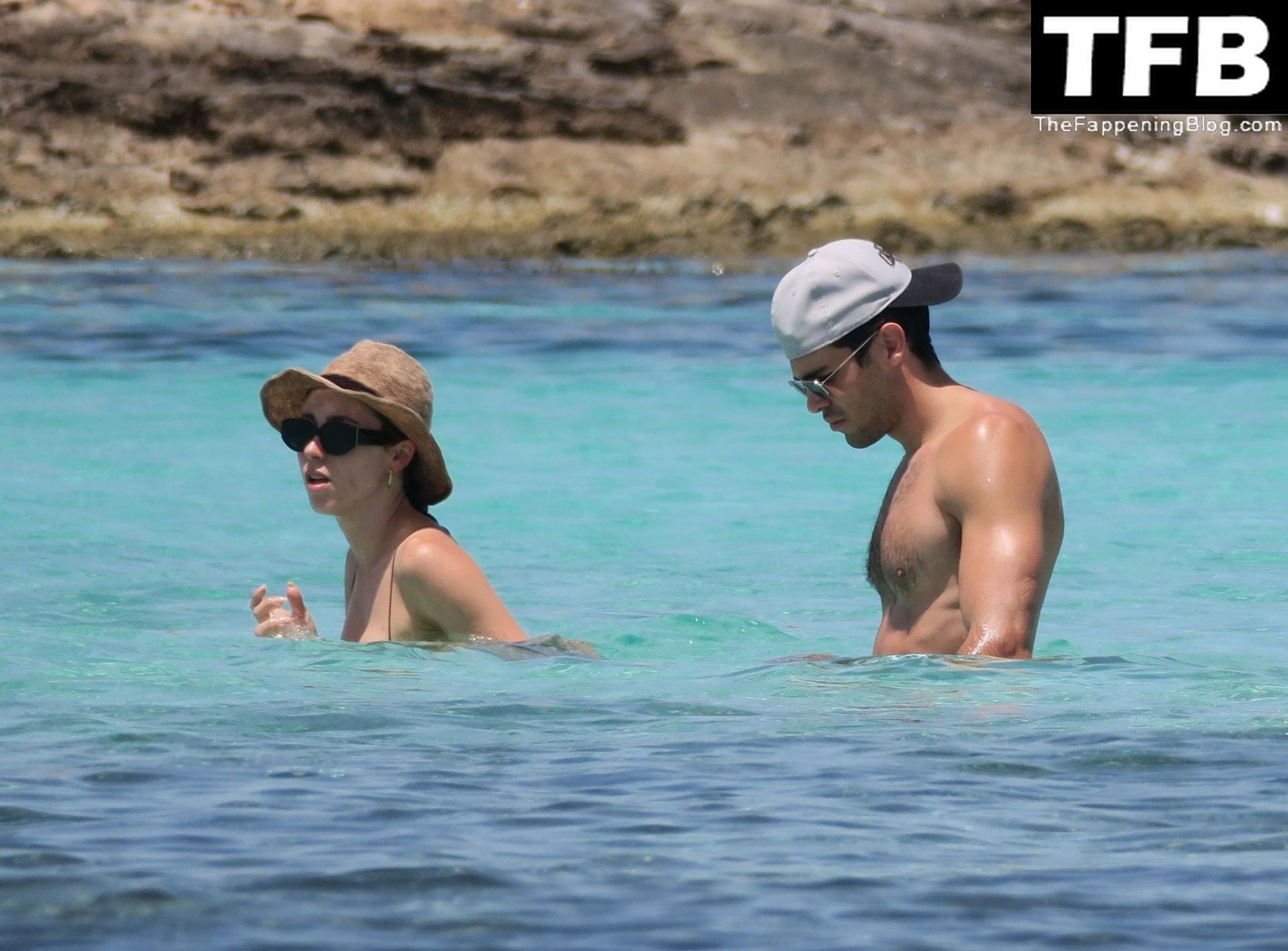 Итальянская телеведущая и дочь Мишель Хунцикер Аврора Рамаззотти демонстрирует свою стройную фигуру в крошечном черном бикини во время отпуска с бойфрендом Гоффредо Черца, проявляя нежности на пляже на Форментере, Испания, 17.06.2022.