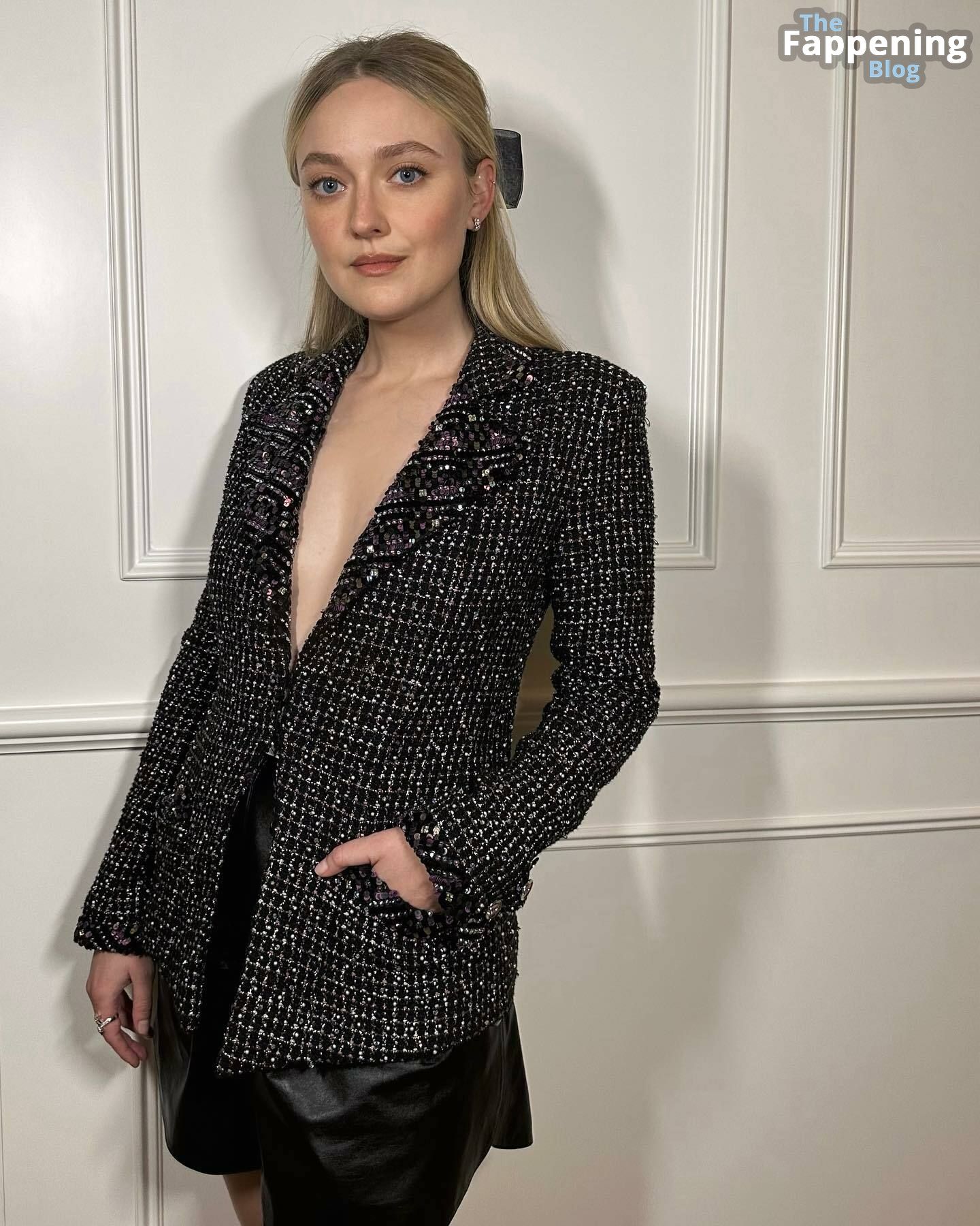Дакота Фаннинг выглядит потрясающе, в сексуальном жакете с глубоким вырезом, который подчеркивает её великолепный стиль.