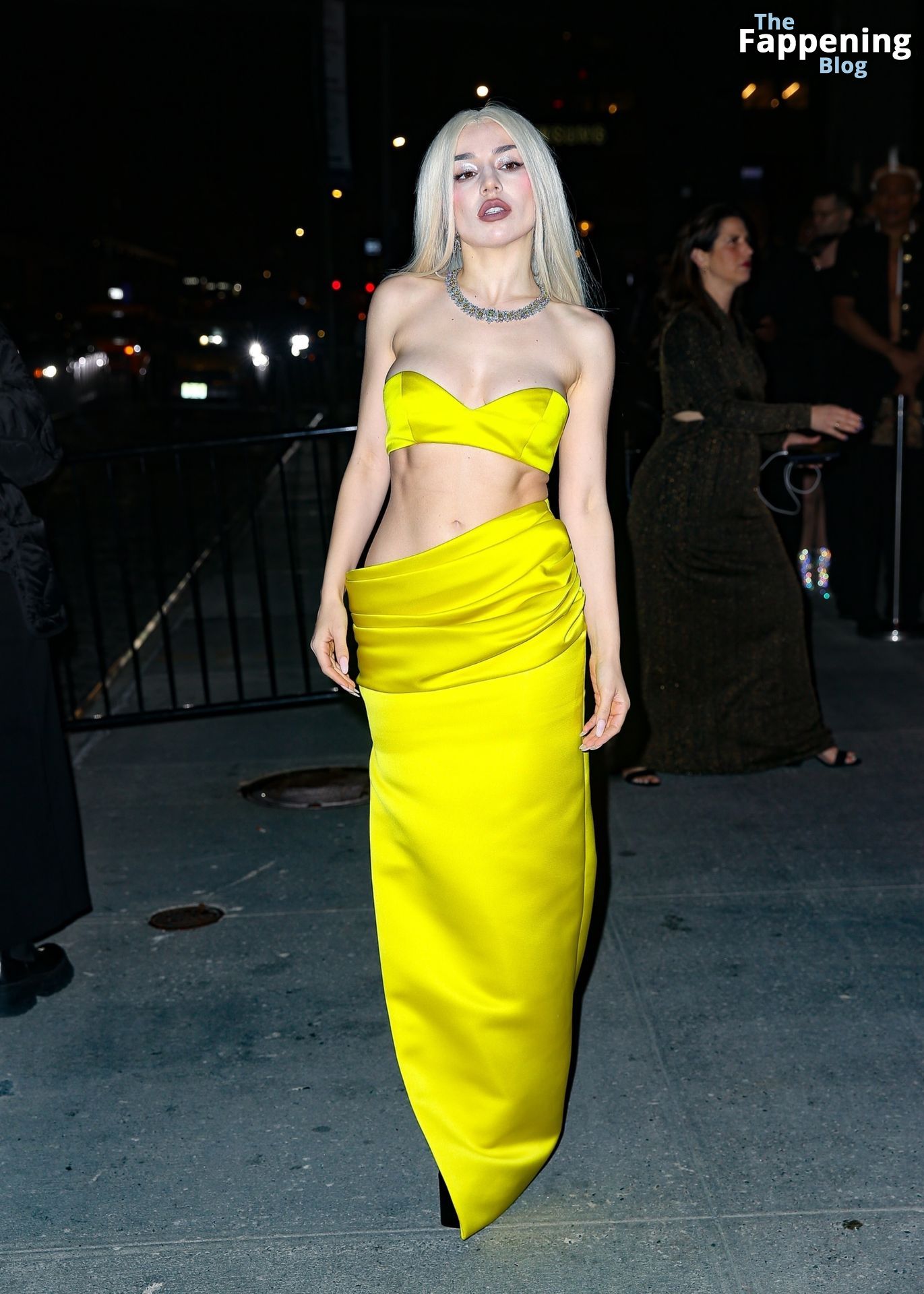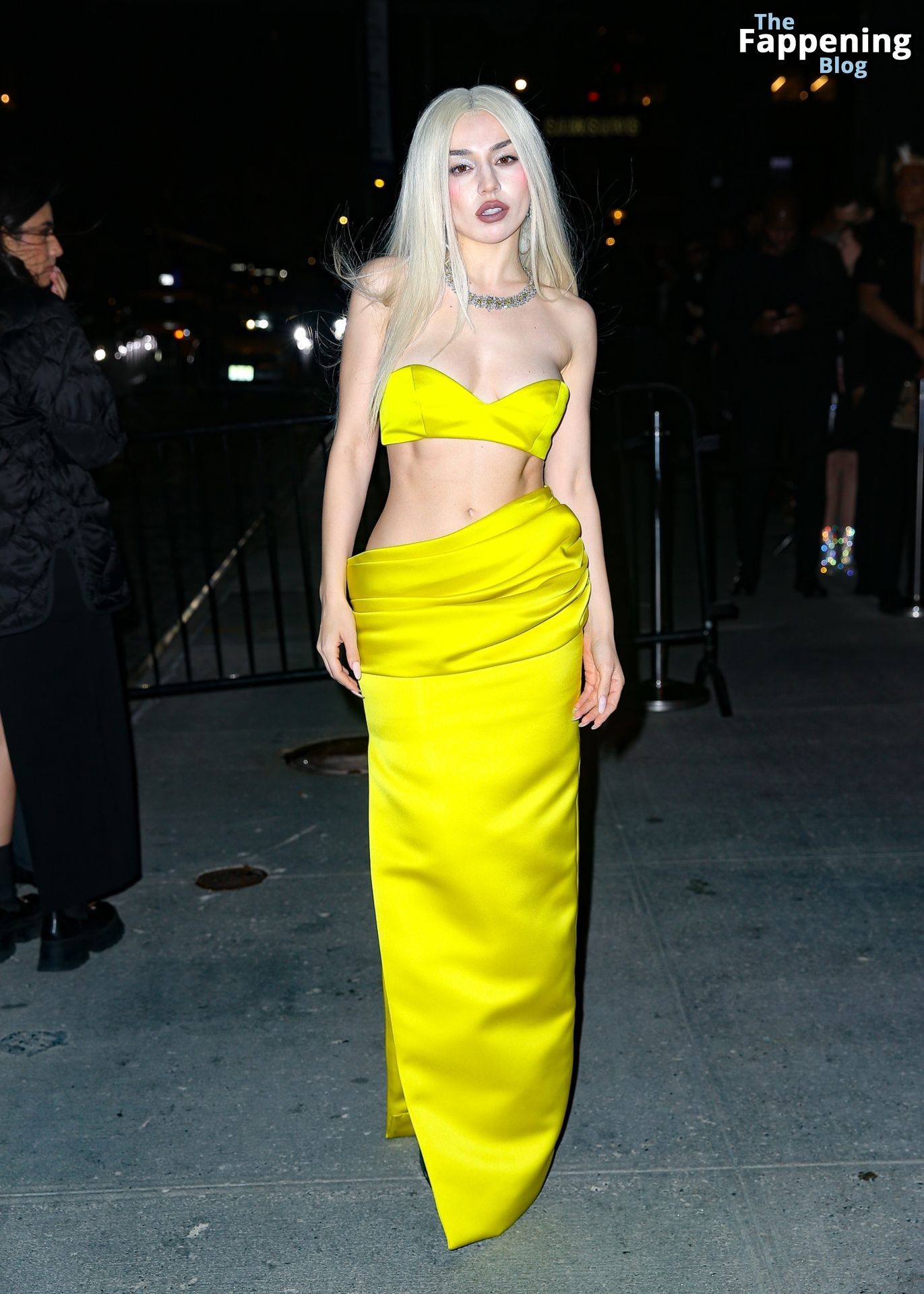 Не пропустите горячее модное заявление Авы Макс: желтое платье без бюстгальтера, которое подчеркивает всю ее красоту, когда она прибывает на вечеринку Met Gala в Нью-Йорке.