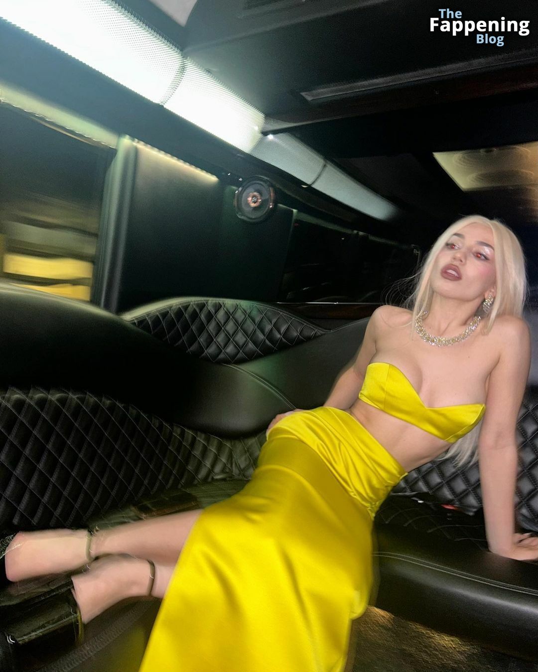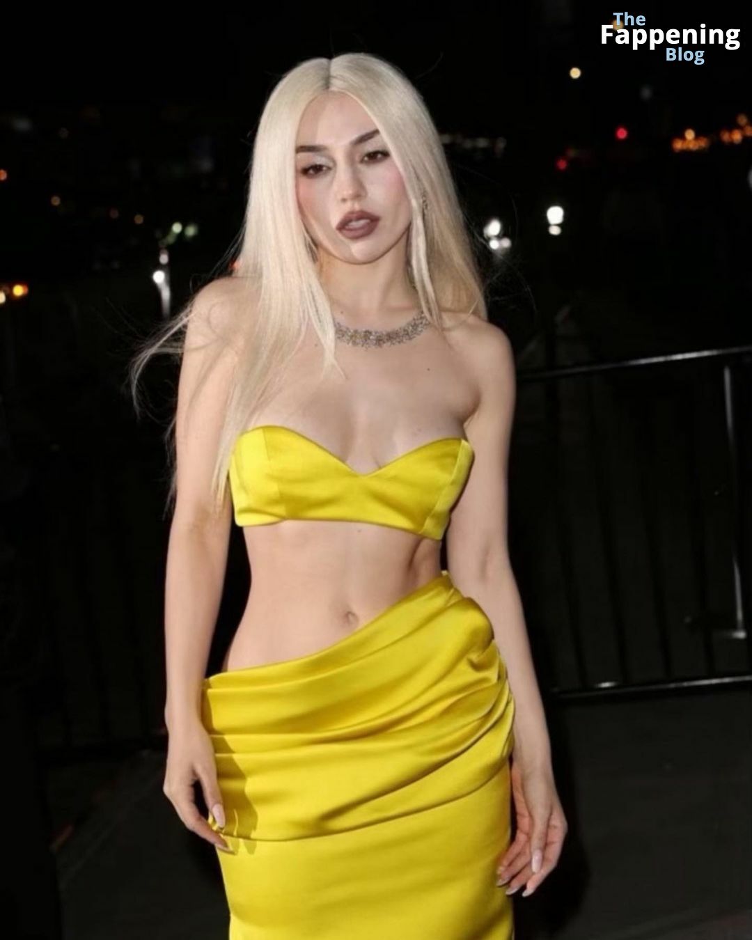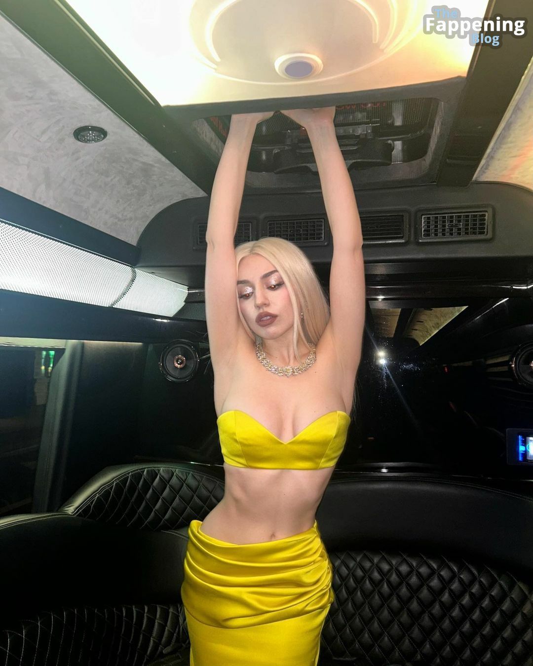 Ава Макс демонстрирует свою сексуальную фигуру в желтом платье без бретелек (18 фото)