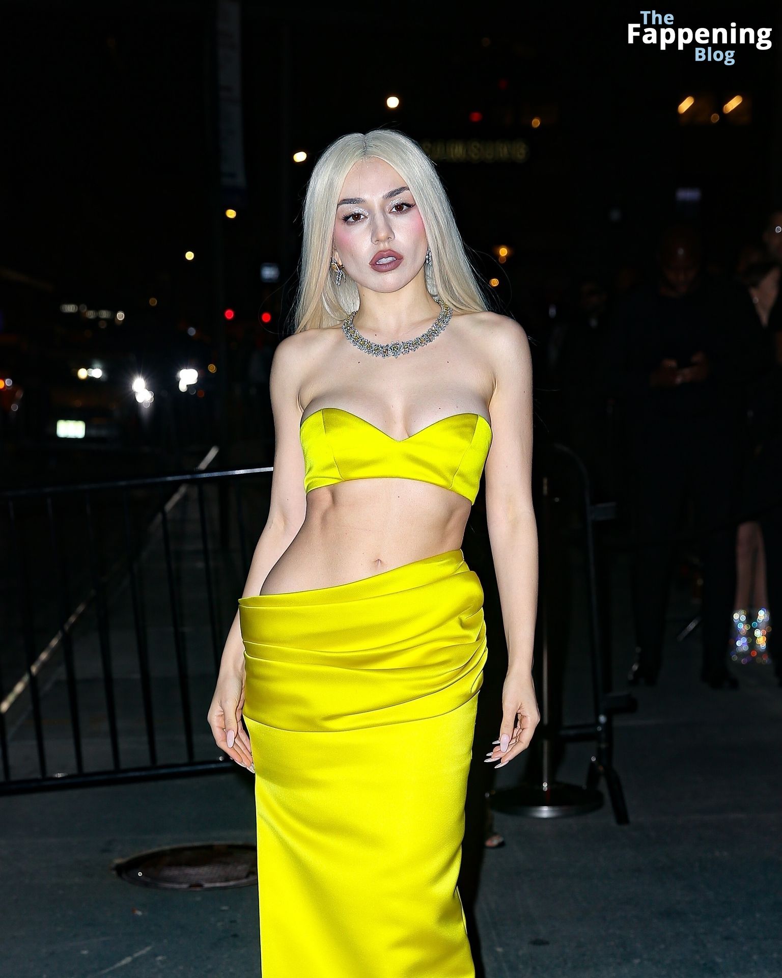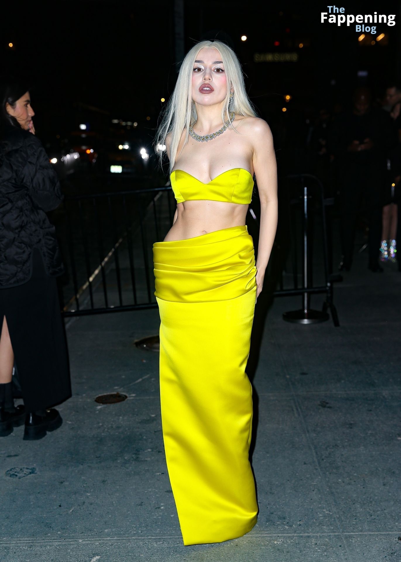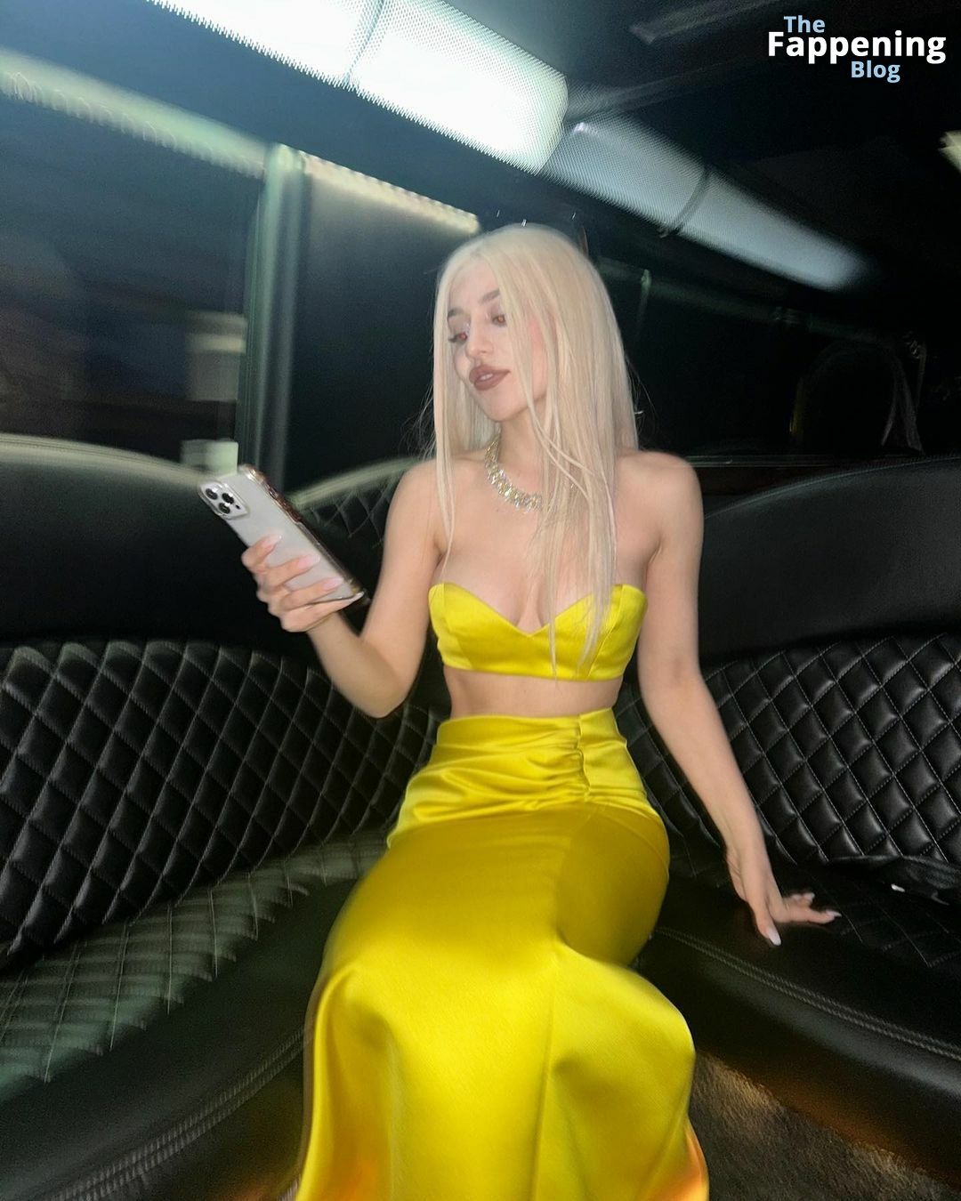 Ава Макс демонстрирует свою сексуальную фигуру в желтом платье без бретелек (18 фото)