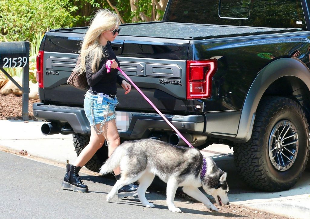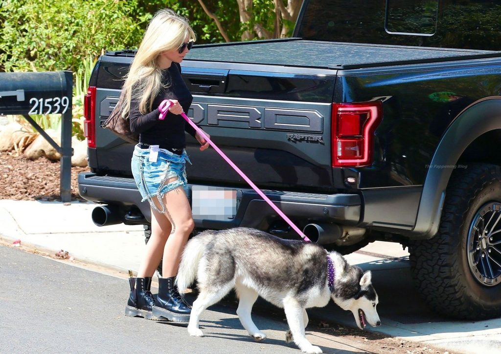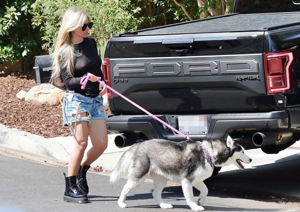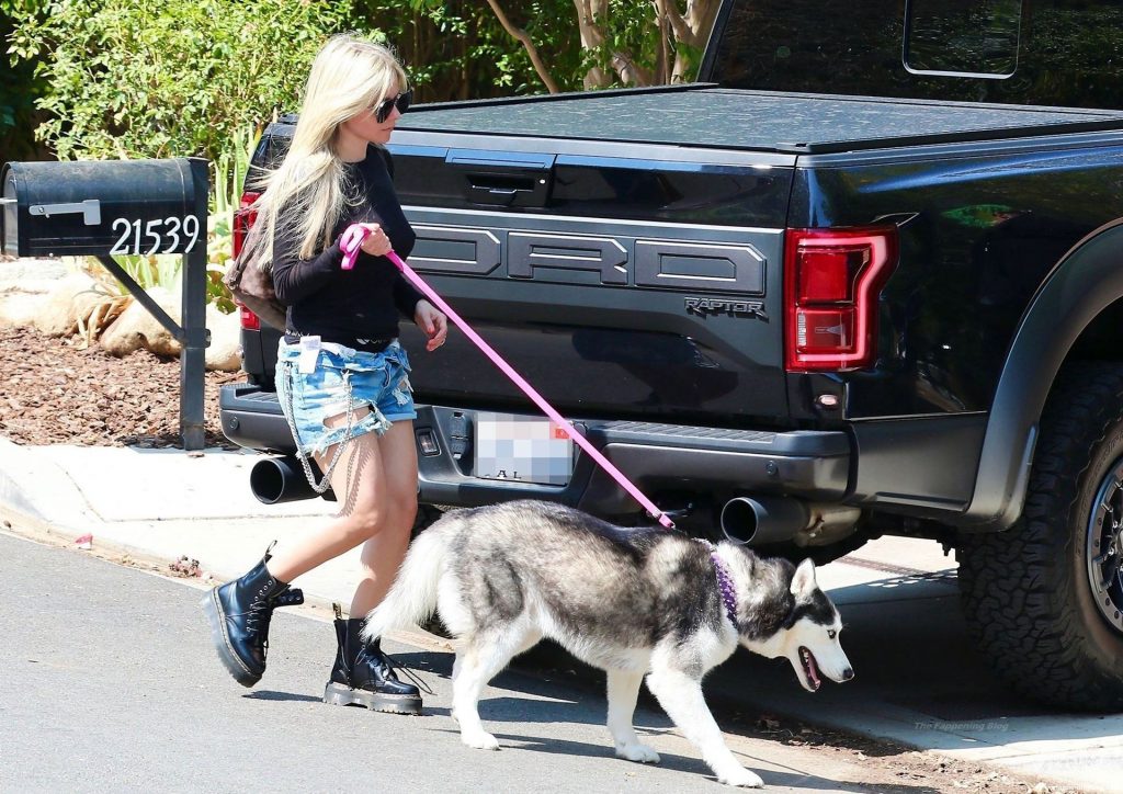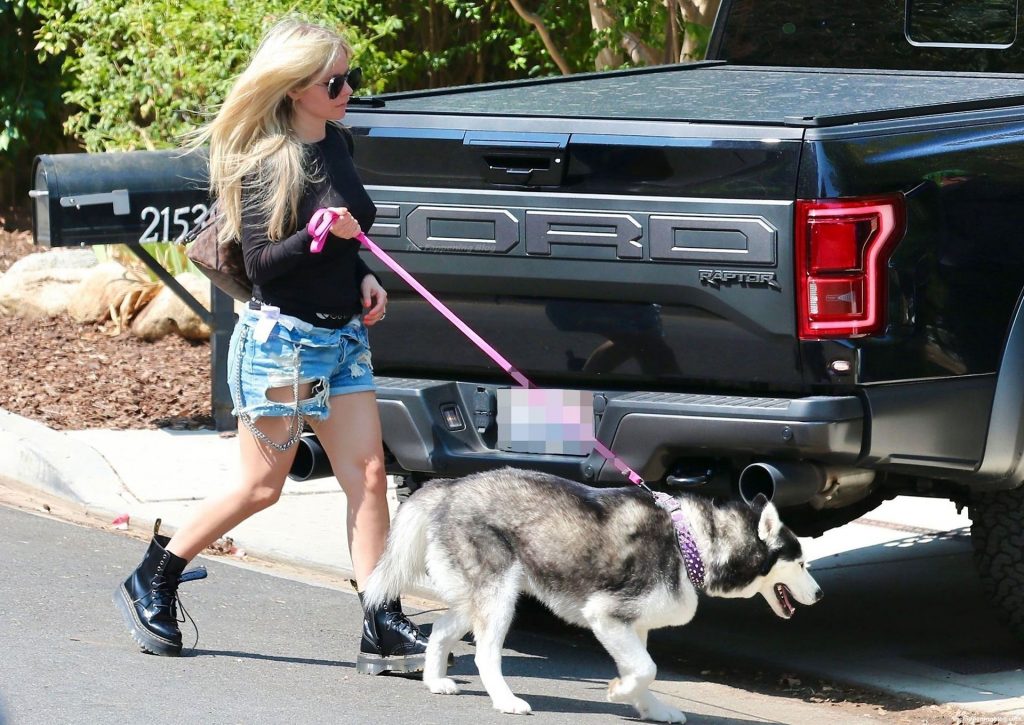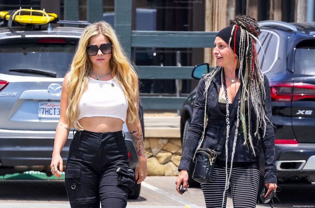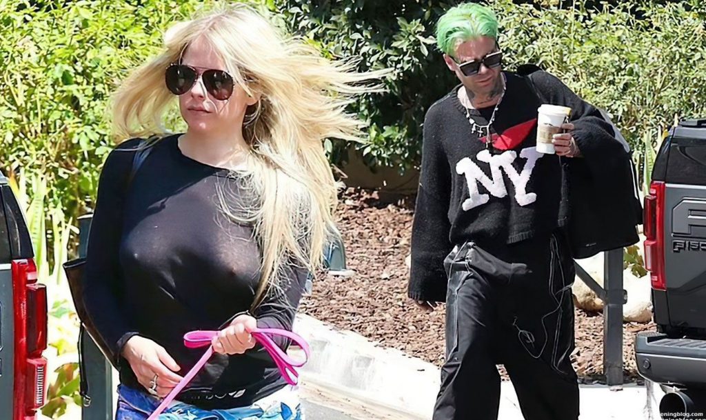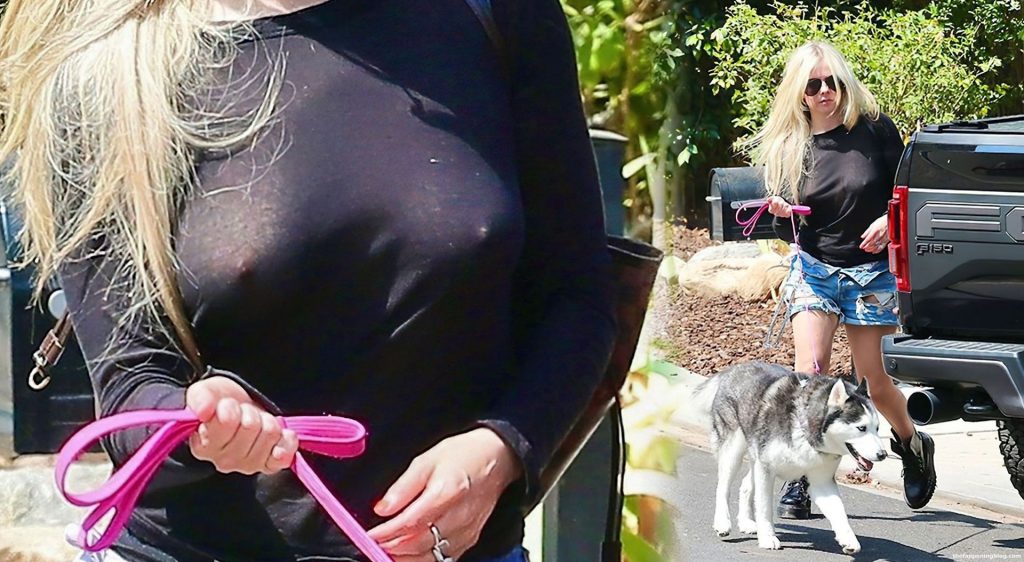 Check it out, guys! It turns out that one more Hollywood blonde hates wearing bras! And that’s precisely how we got a hold of these Avril Lavigne tits photos! Some sneaky paparazzi man was following her around when he spotted that her perky nipples are showing! But, instead of just nipple photos, he captured her whole tits because of the see-through top that she was wearing! She was pictured in front of a friend’s house in Calabasas with her dog!
