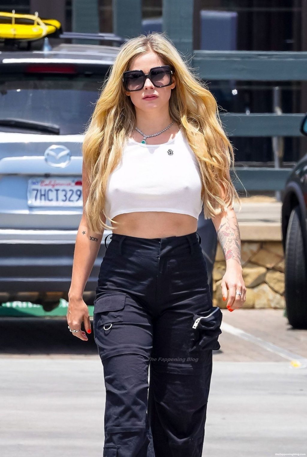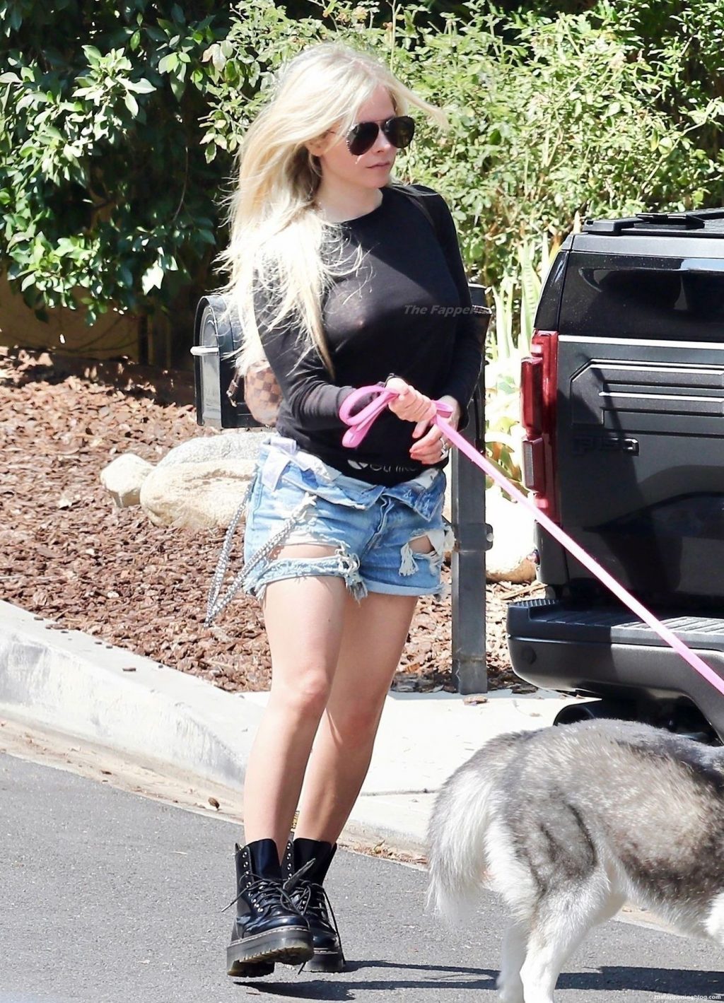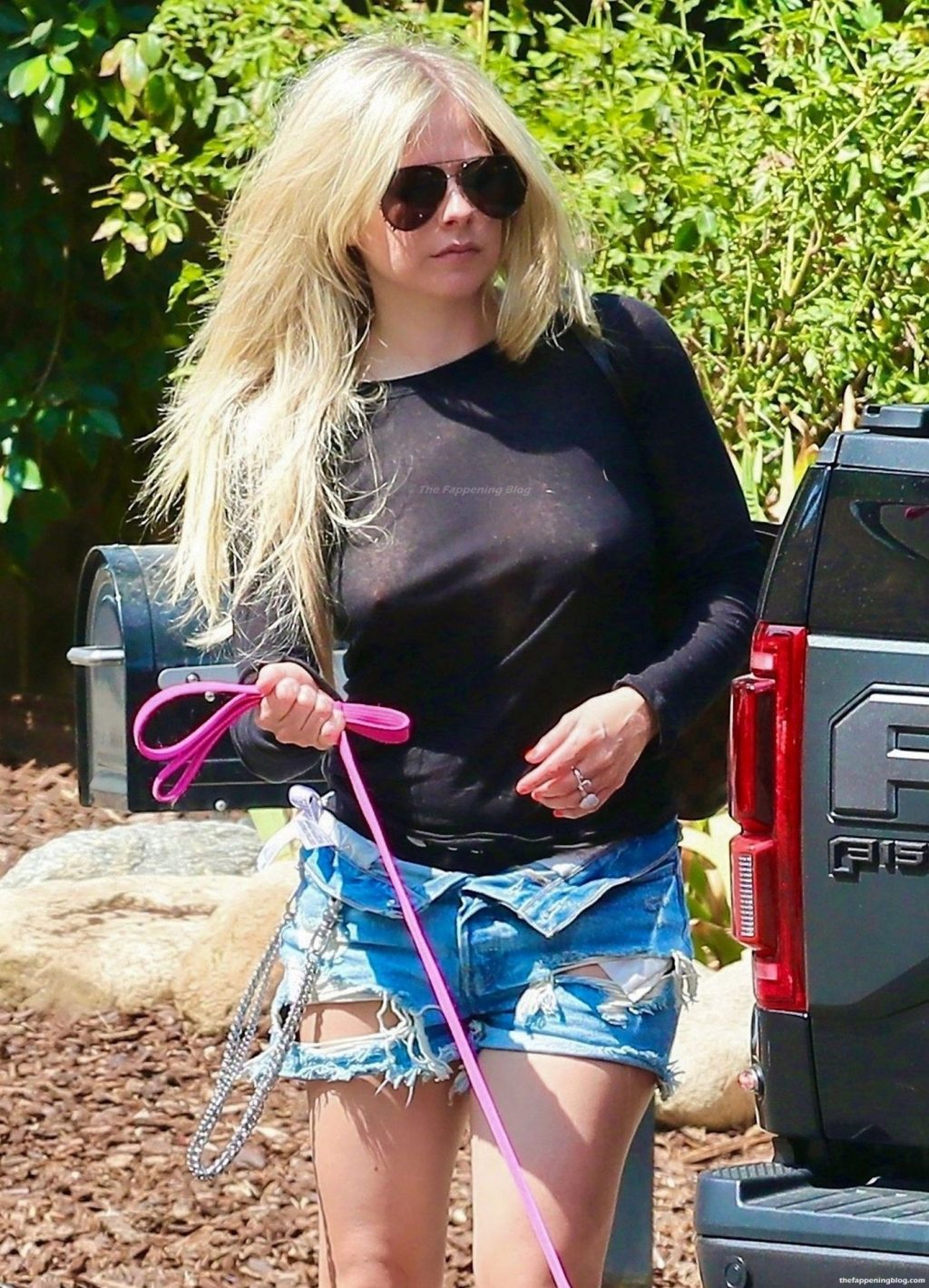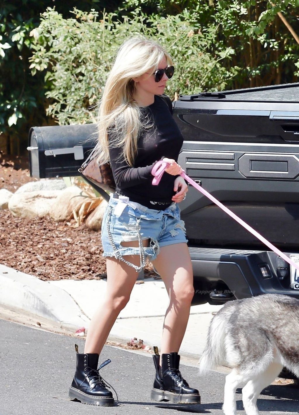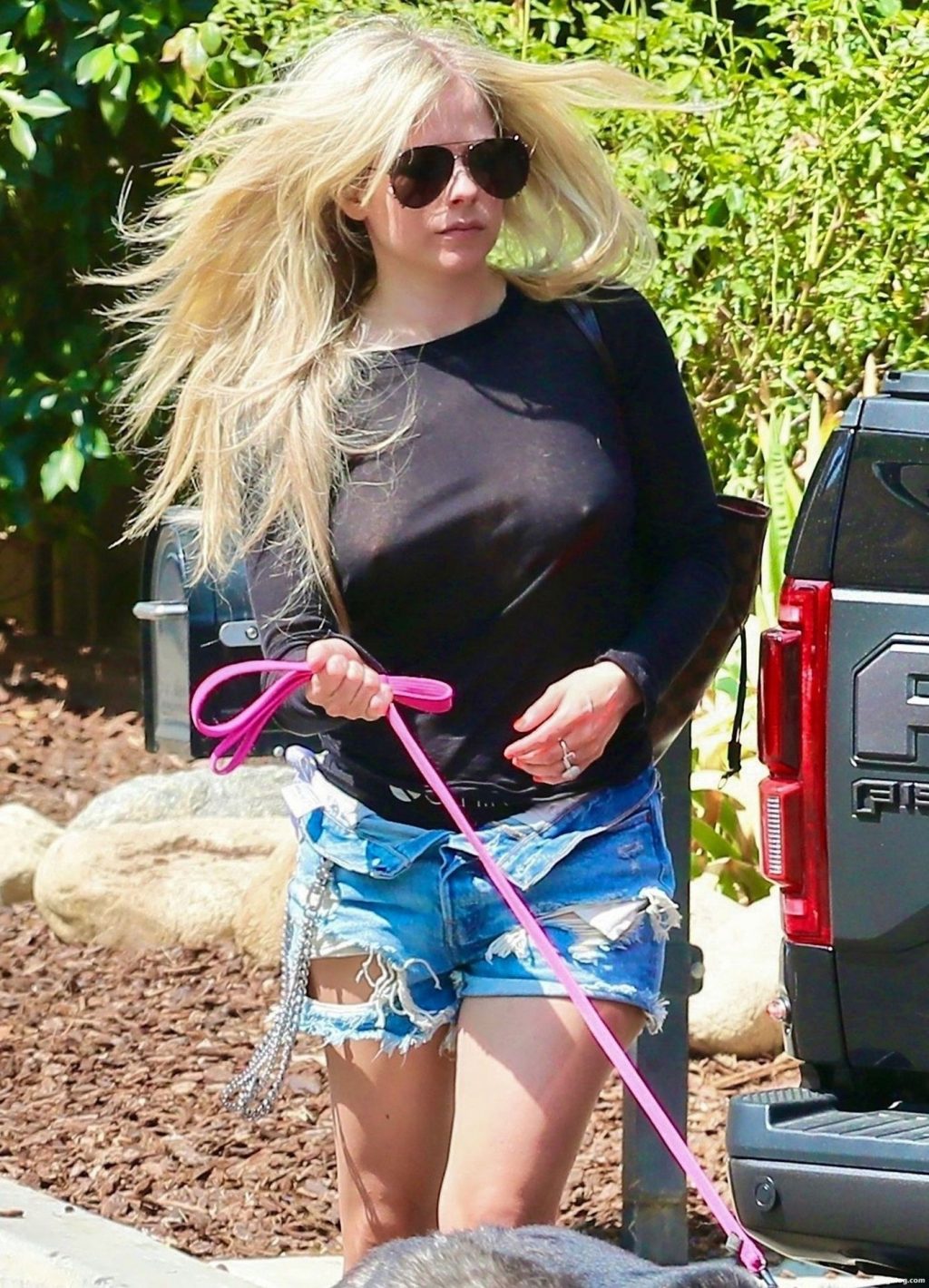 Check it out, guys! It turns out that one more Hollywood blonde hates wearing bras! And that’s precisely how we got a hold of these Avril Lavigne tits photos! Some sneaky paparazzi man was following her around when he spotted that her perky nipples are showing! But, instead of just nipple photos, he captured her whole tits because of the see-through top that she was wearing! She was pictured in front of a friend’s house in Calabasas with her dog!