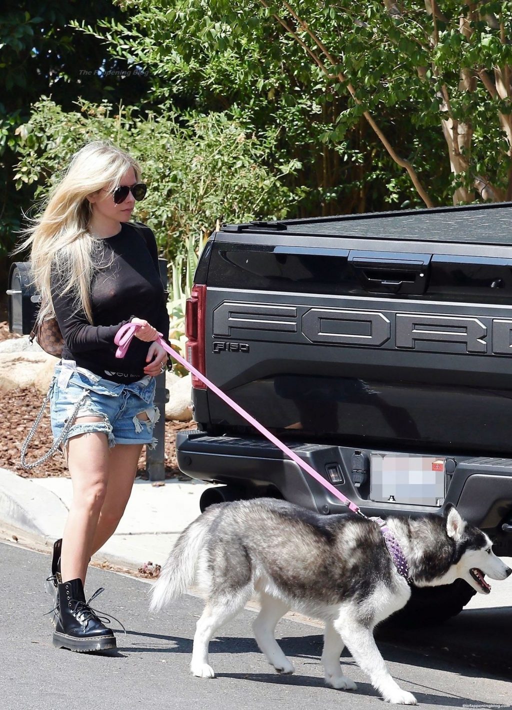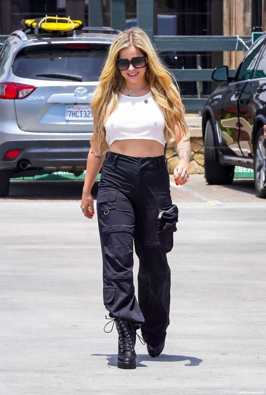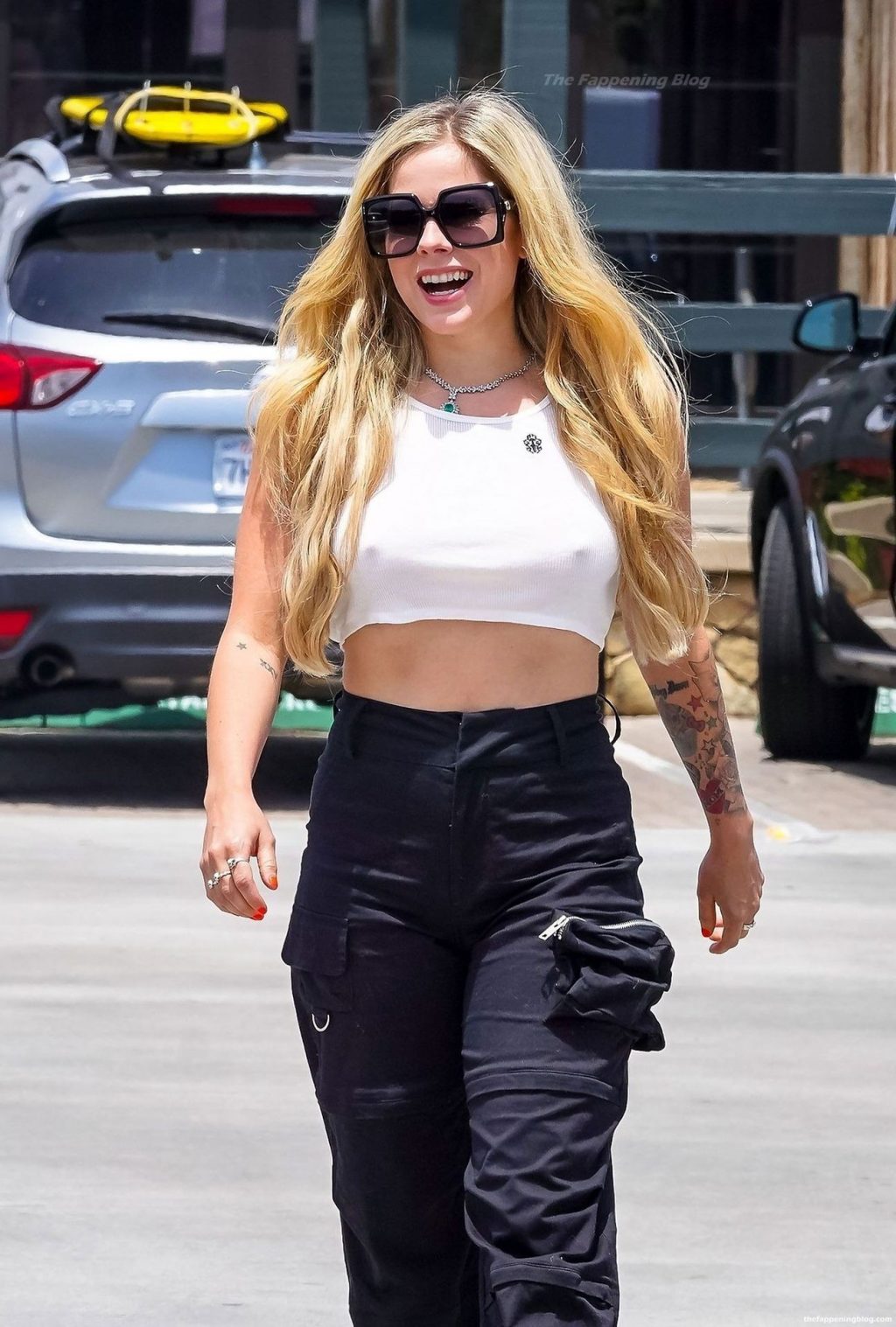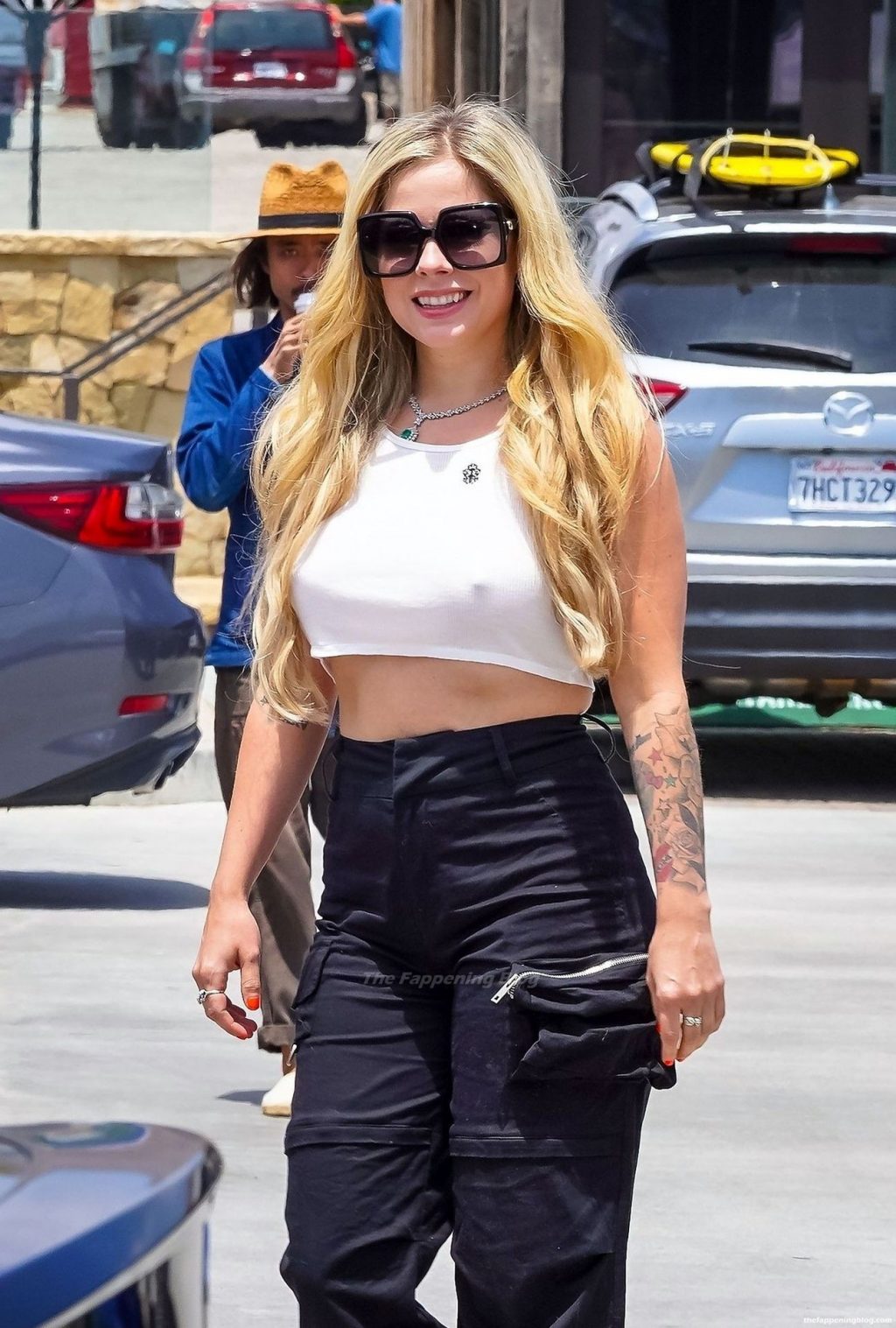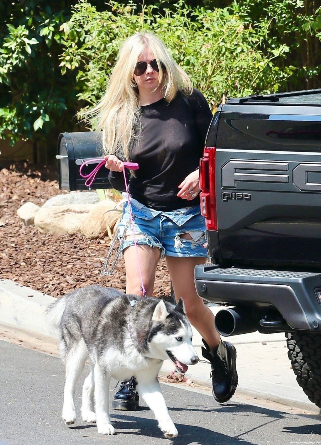 Check it out, guys! It turns out that one more Hollywood blonde hates wearing bras! And that’s precisely how we got a hold of these Avril Lavigne tits photos! Some sneaky paparazzi man was following her around when he spotted that her perky nipples are showing! But, instead of just nipple photos, he captured her whole tits because of the see-through top that she was wearing! She was pictured in front of a friend’s house in Calabasas with her dog!