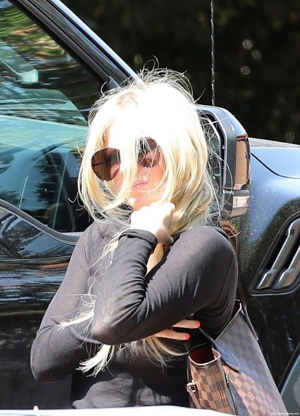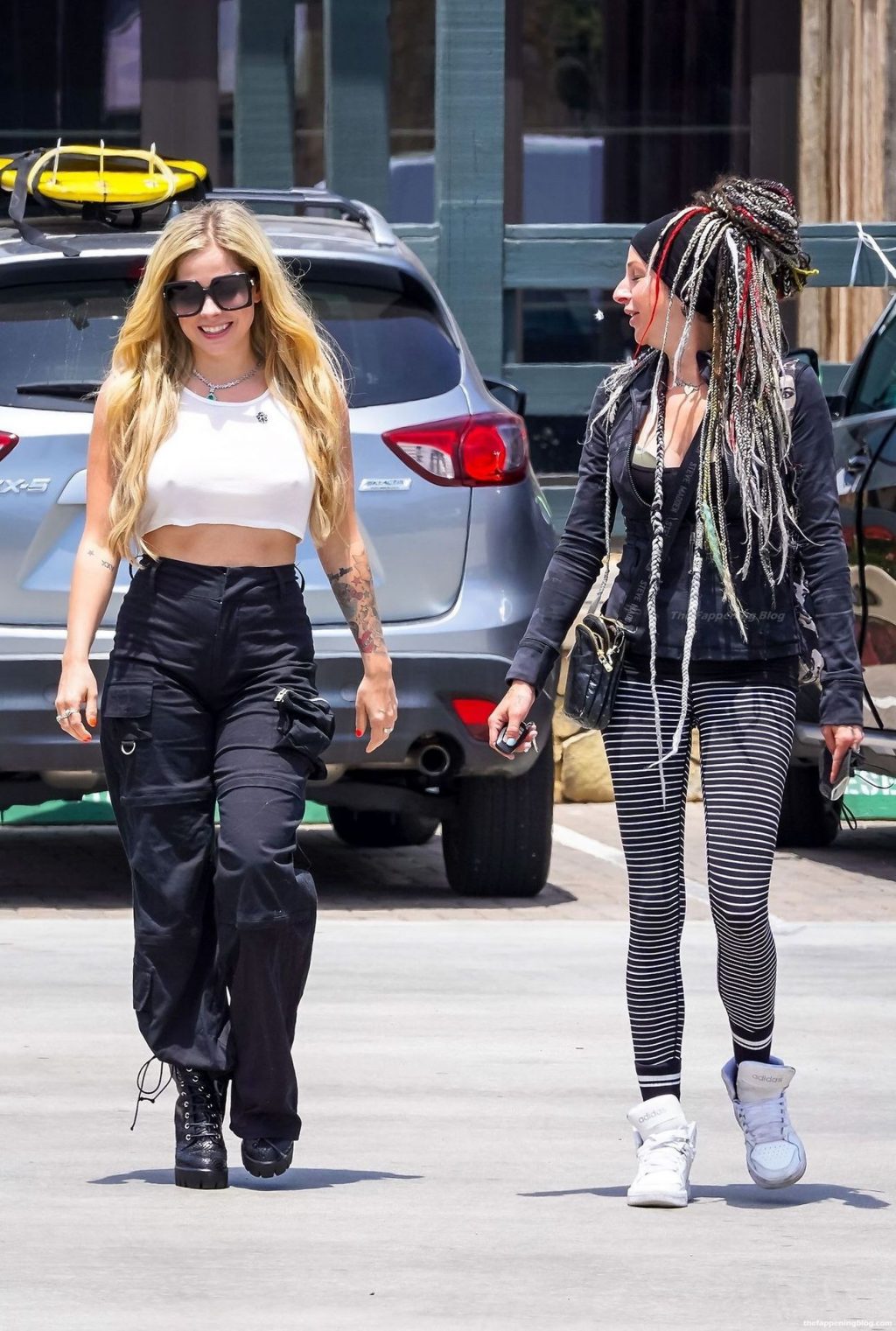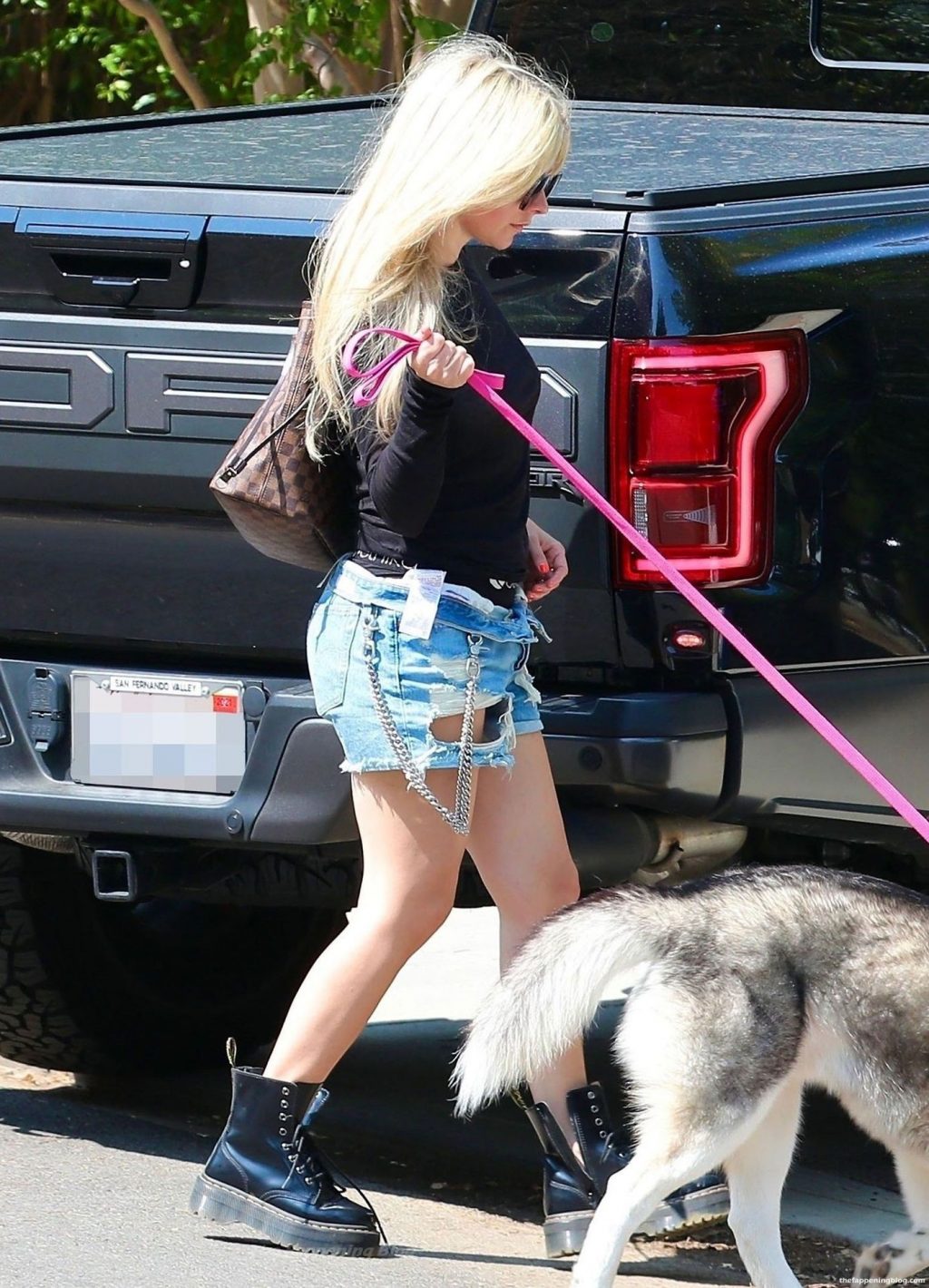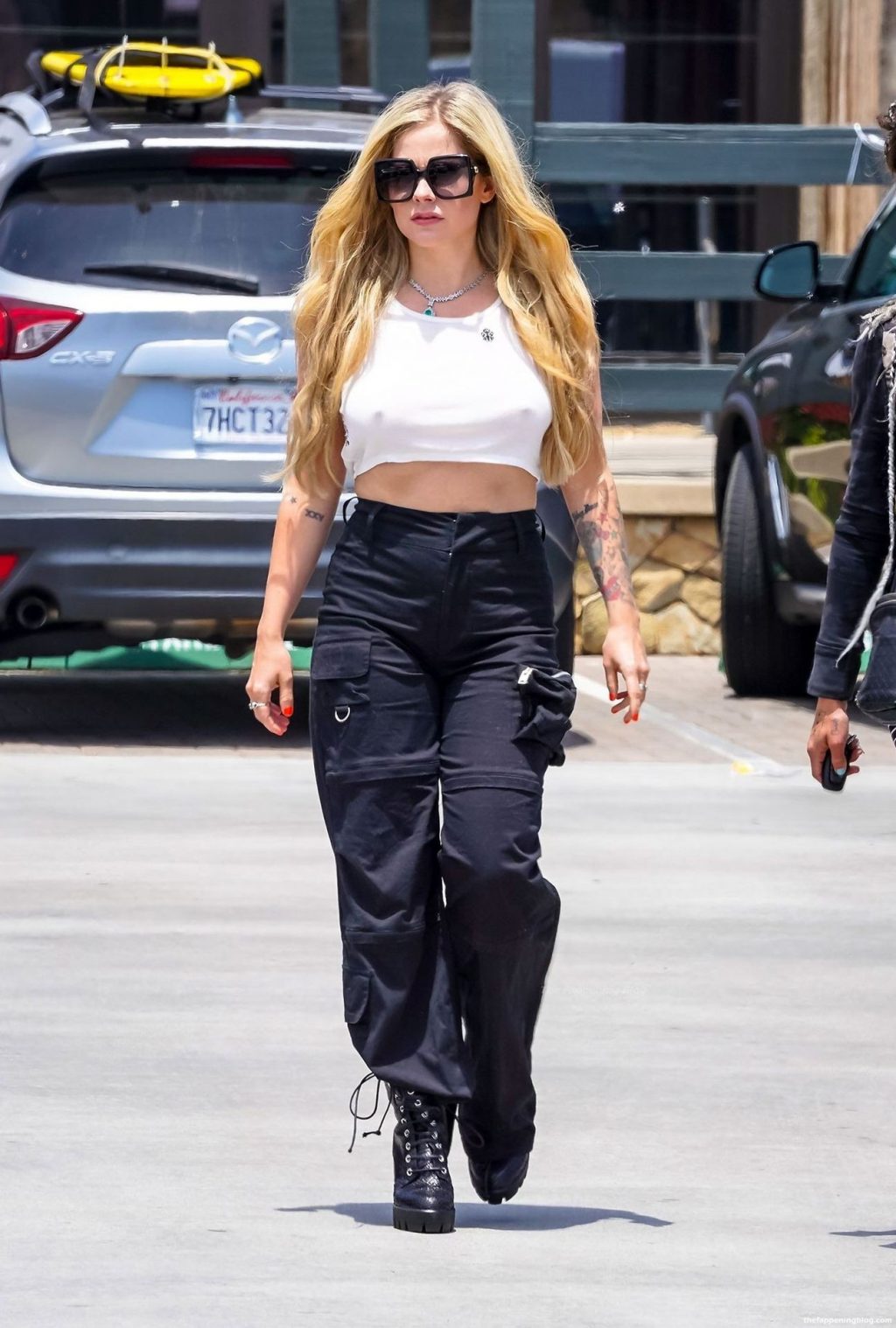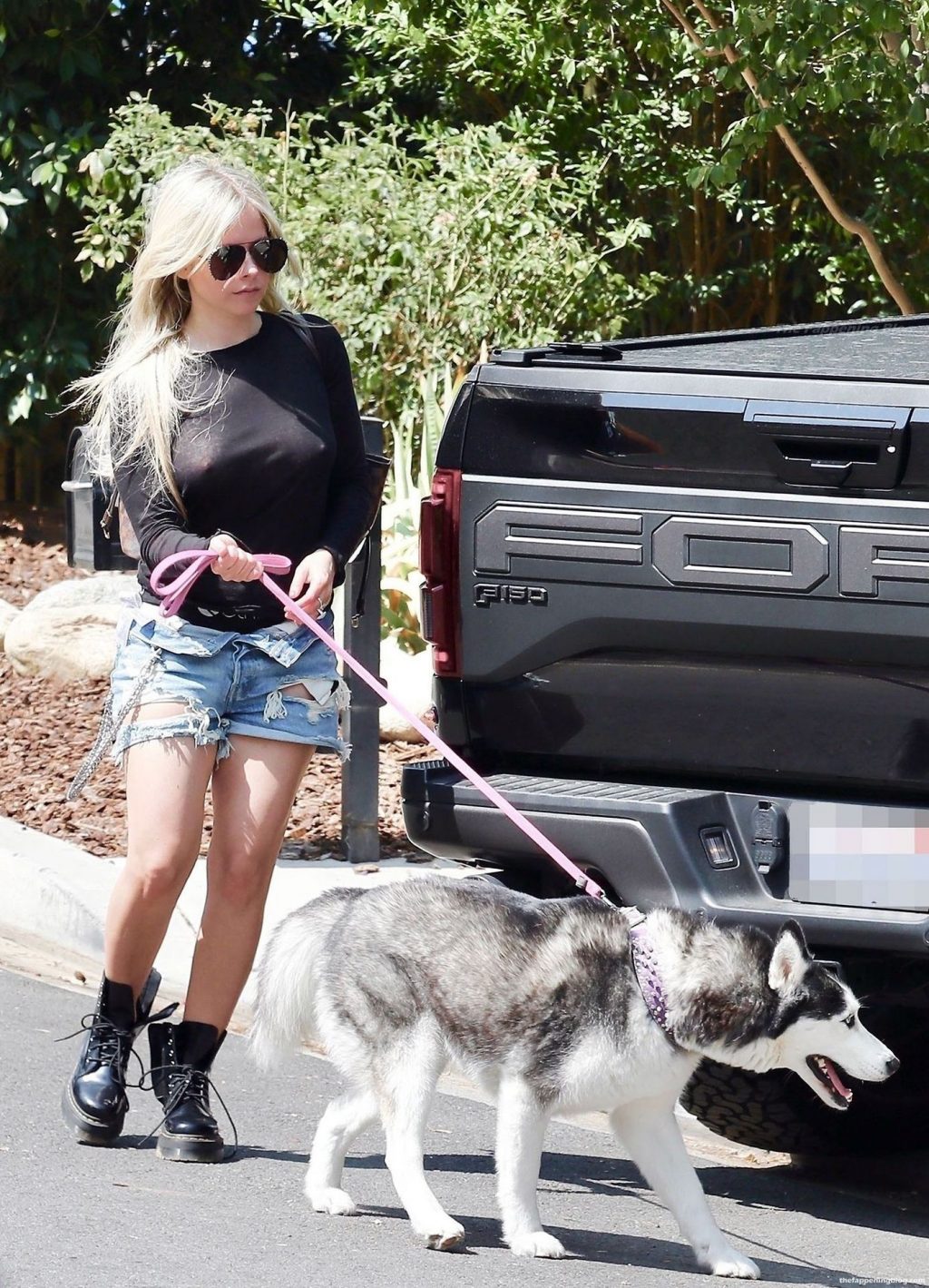 Check it out, guys! It turns out that one more Hollywood blonde hates wearing bras! And that’s precisely how we got a hold of these Avril Lavigne tits photos! Some sneaky paparazzi man was following her around when he spotted that her perky nipples are showing! But, instead of just nipple photos, he captured her whole tits because of the see-through top that she was wearing! She was pictured in front of a friend’s house in Calabasas with her dog!