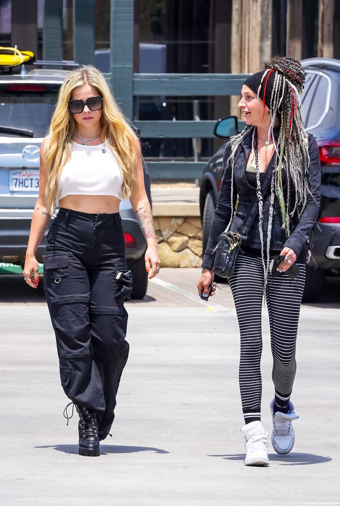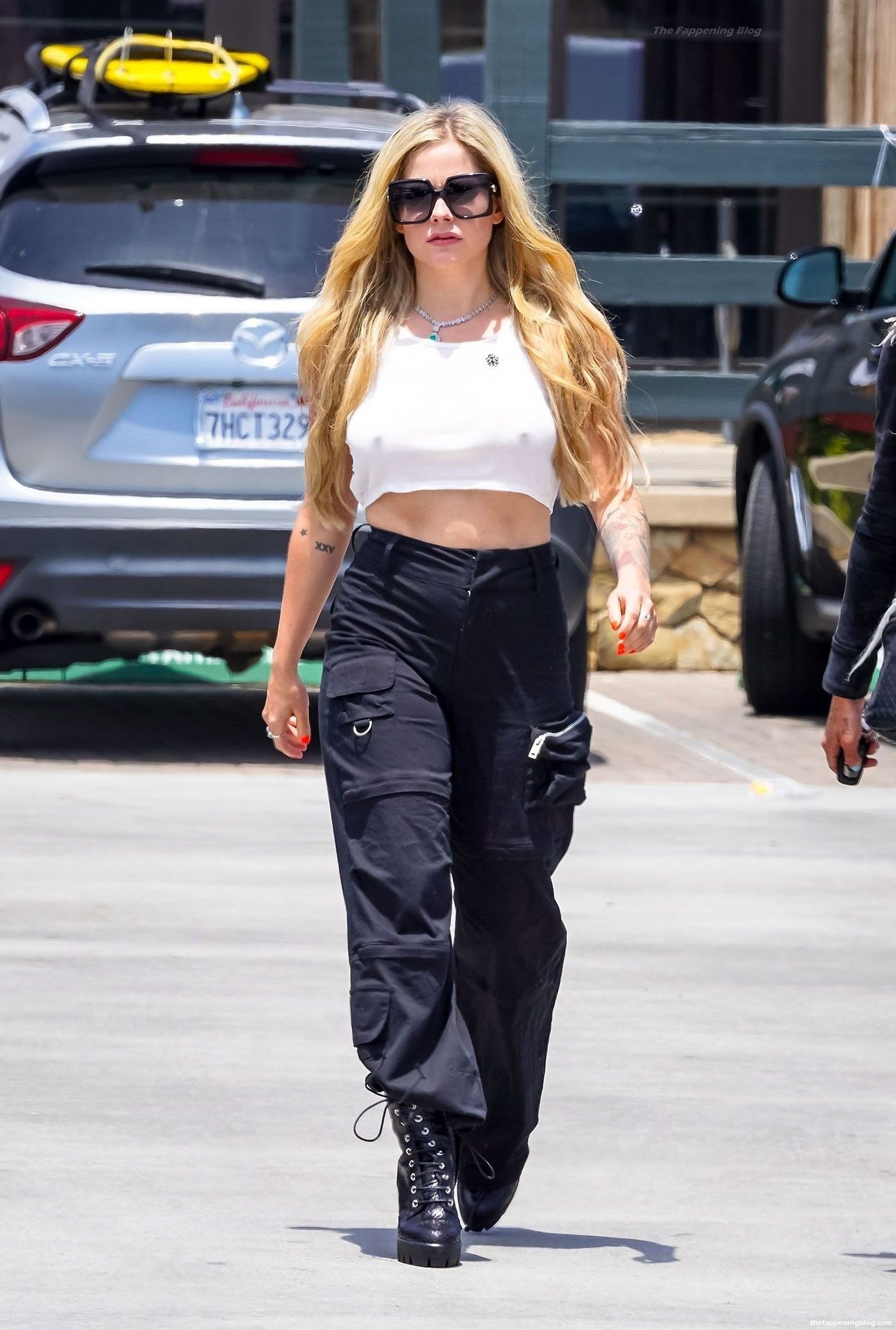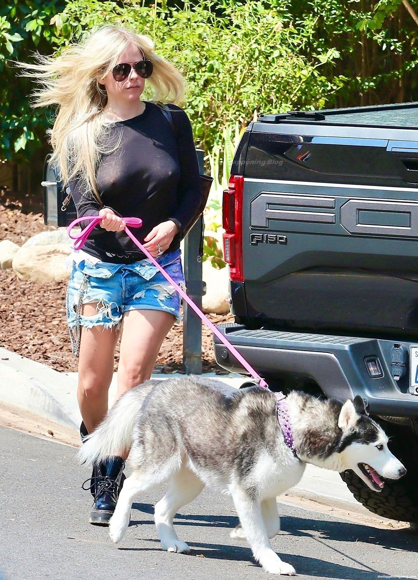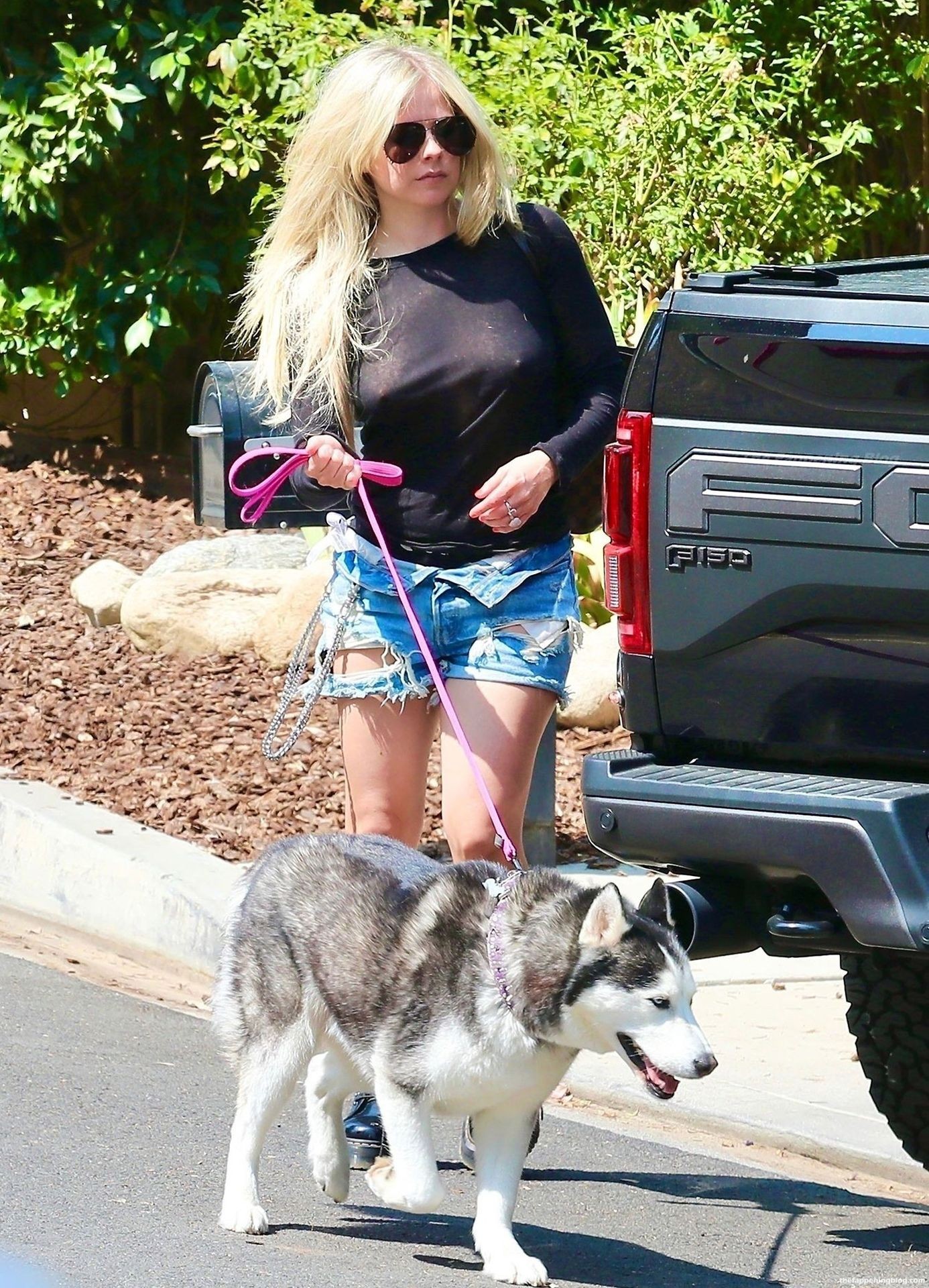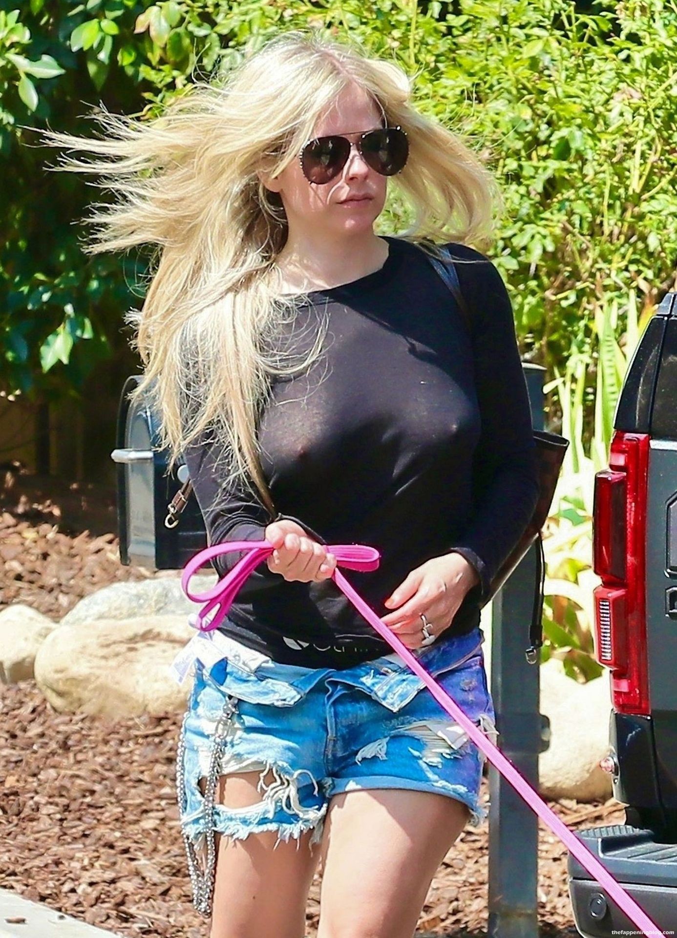 Check it out, guys! It turns out that one more Hollywood blonde hates wearing bras! And that’s precisely how we got a hold of these Avril Lavigne tits photos! Some sneaky paparazzi man was following her around when he spotted that her perky nipples are showing! But, instead of just nipple photos, he captured her whole tits because of the see-through top that she was wearing! She was pictured in front of a friend’s house in Calabasas with her dog!