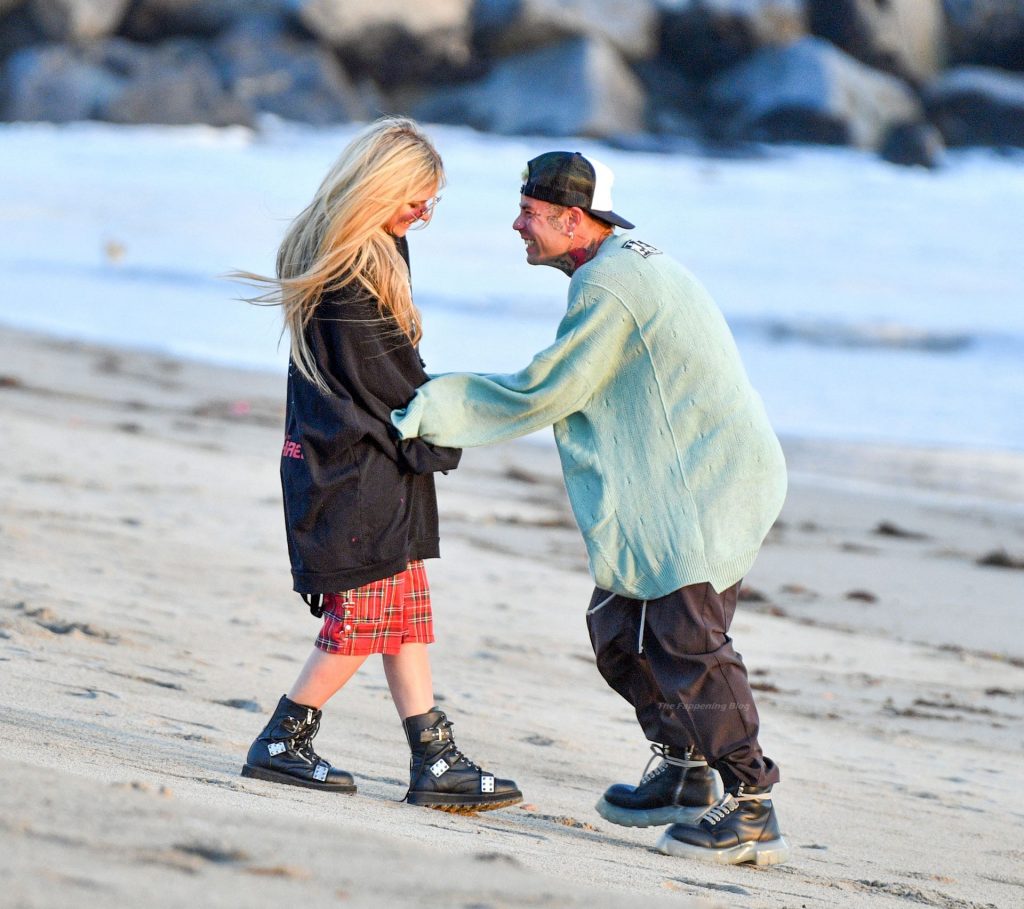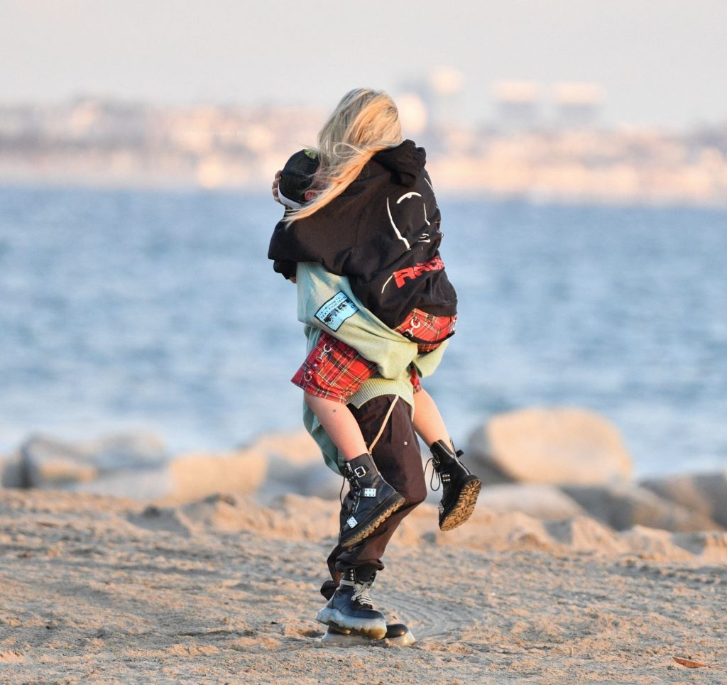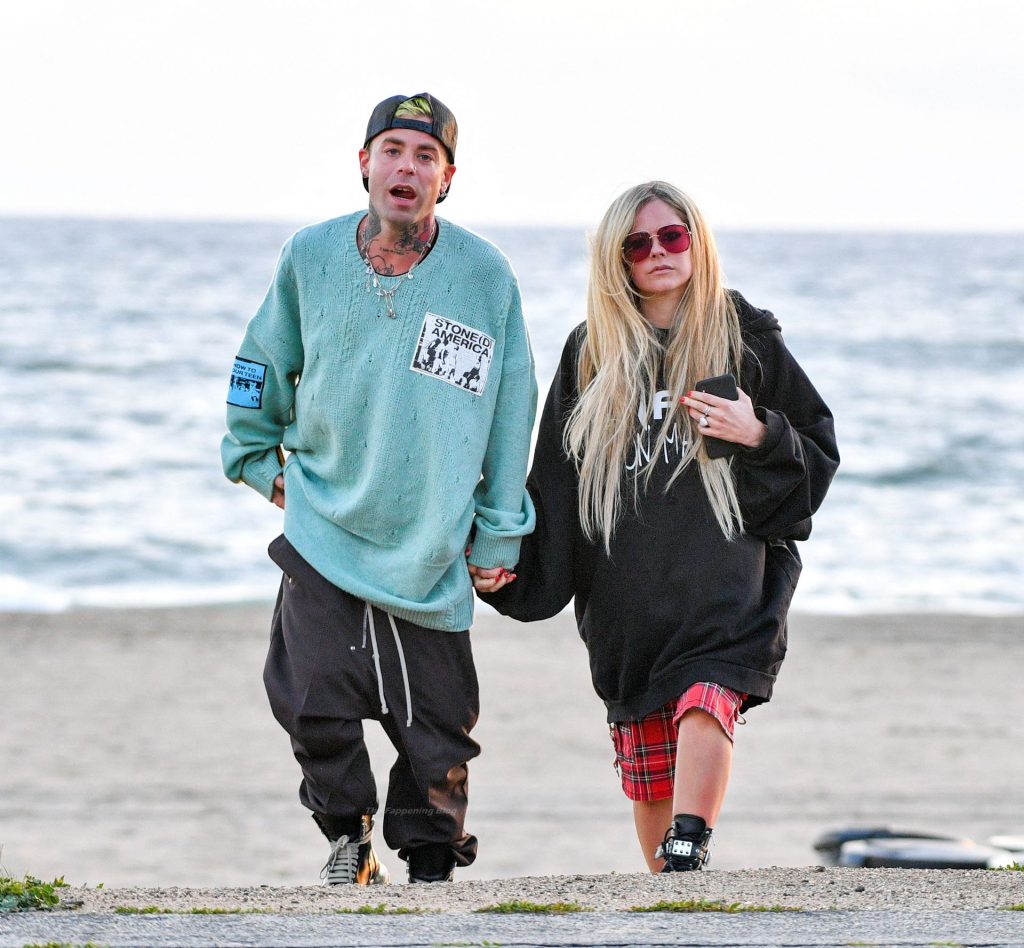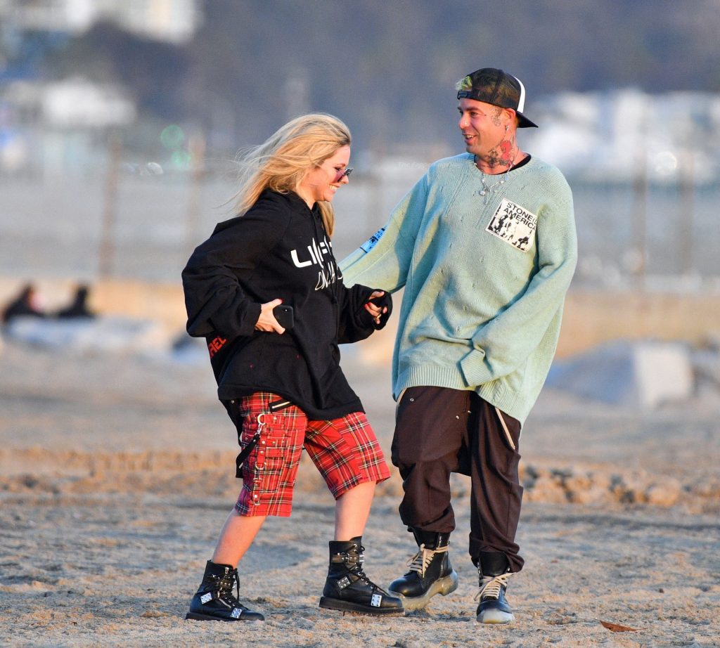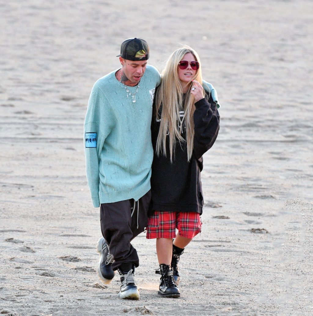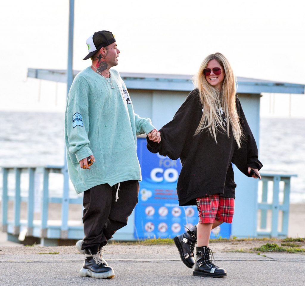 Аврил Лавин отмечает 34-й день рождения своего нового рокерского бойфренда Mod Sun романтической прогулкой по пляжу на закате в Санта-Монике, 11.03.2021.