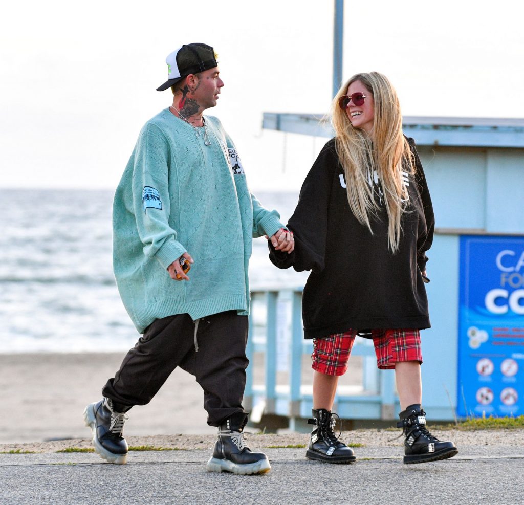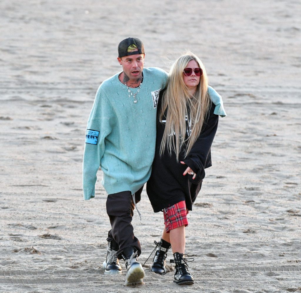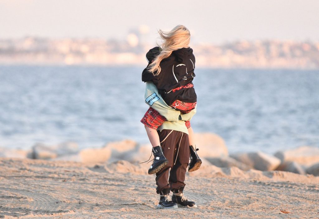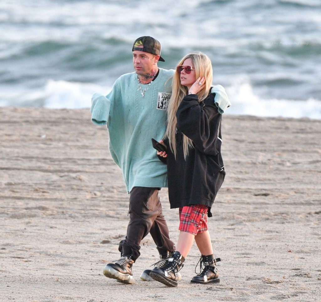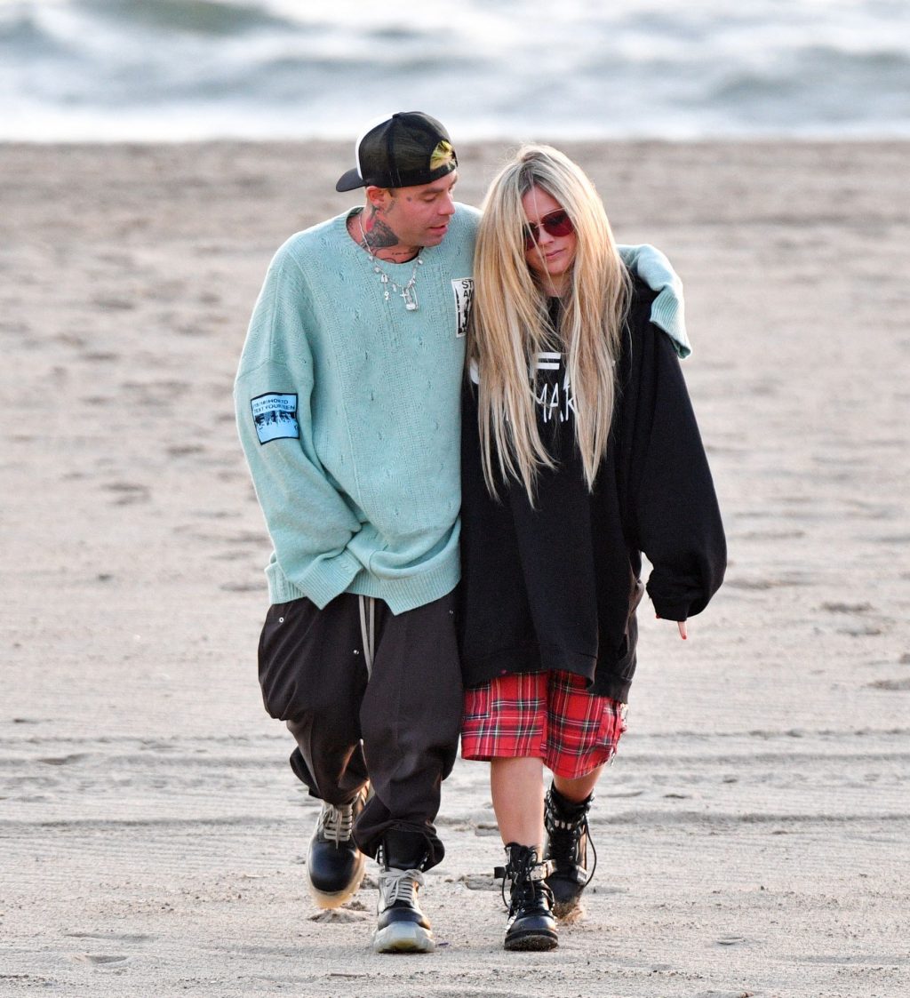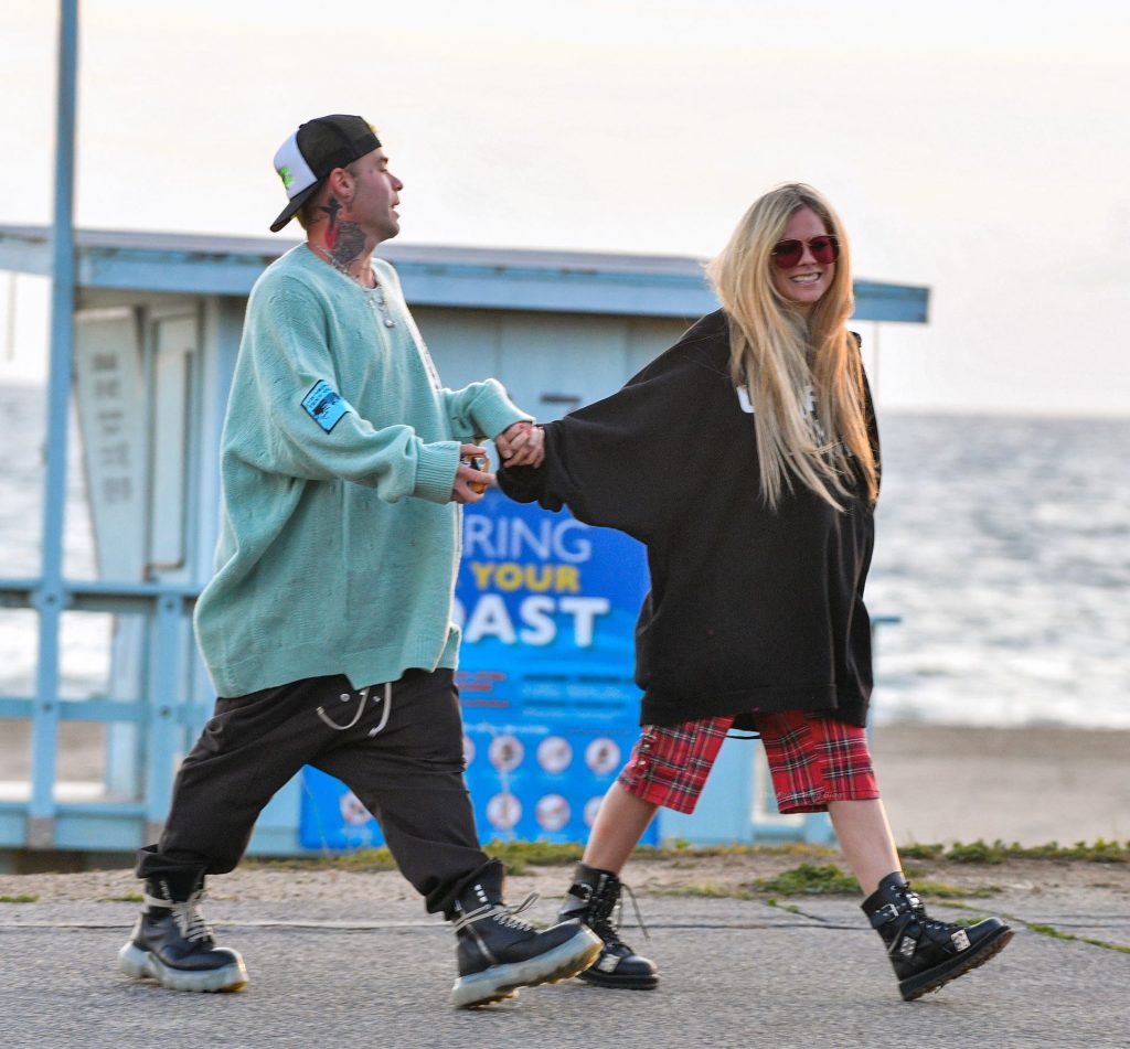 Аврил Лавин отмечает 34-й день рождения своего нового рокерского бойфренда Mod Sun романтической прогулкой по пляжу на закате в Санта-Монике, 11.03.2021.