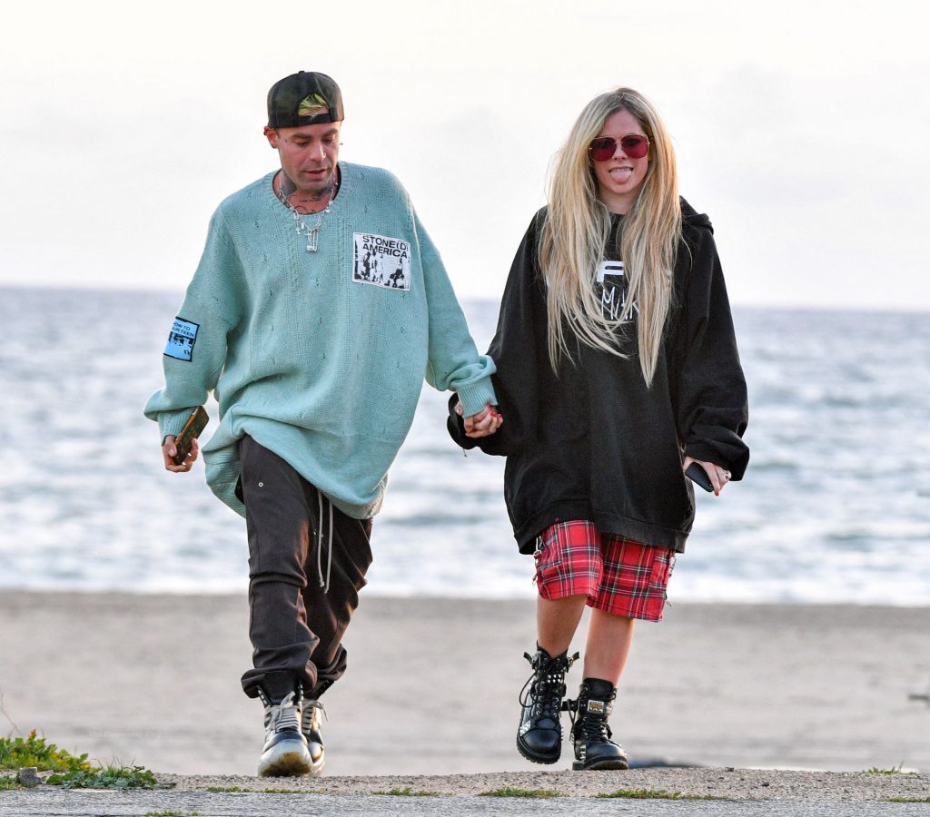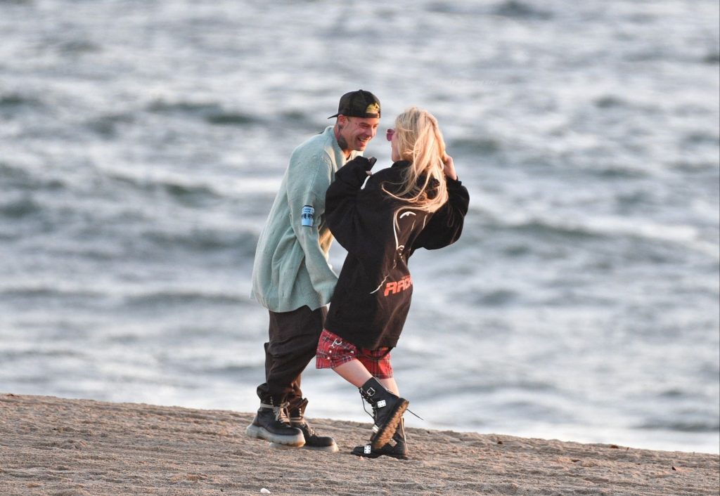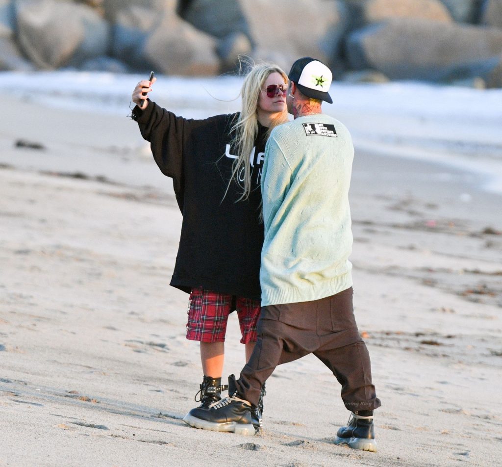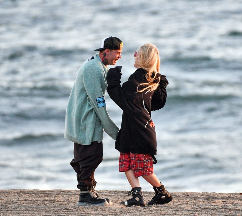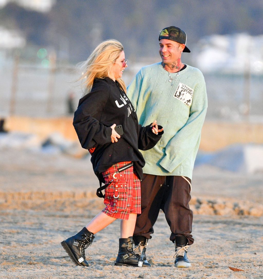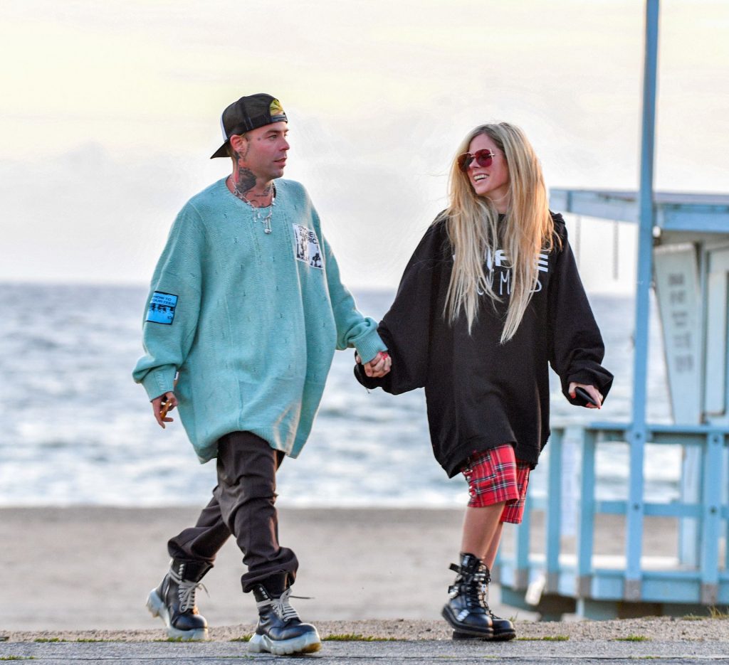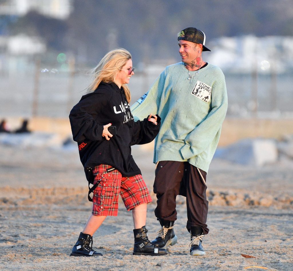 Аврил Лавин отмечает 34-й день рождения своего нового рокерского бойфренда Mod Sun романтической прогулкой по пляжу на закате в Санта-Монике, 11.03.2021.