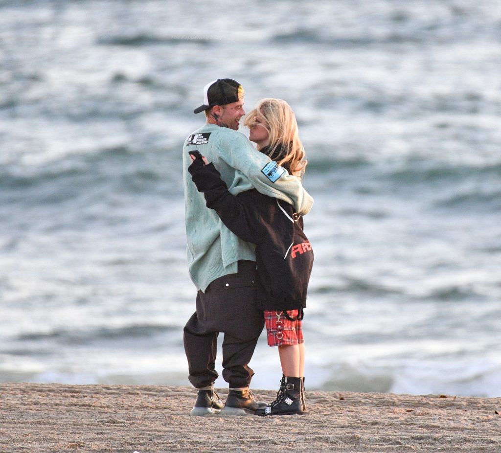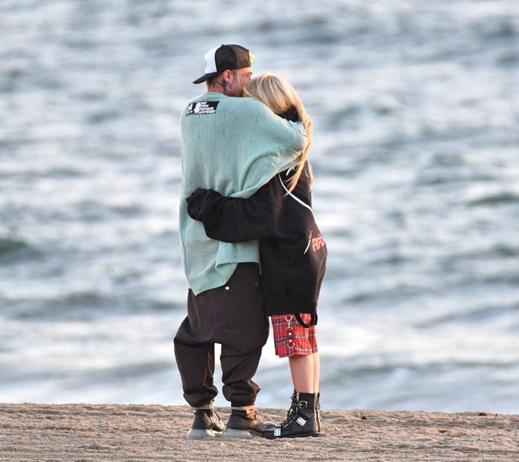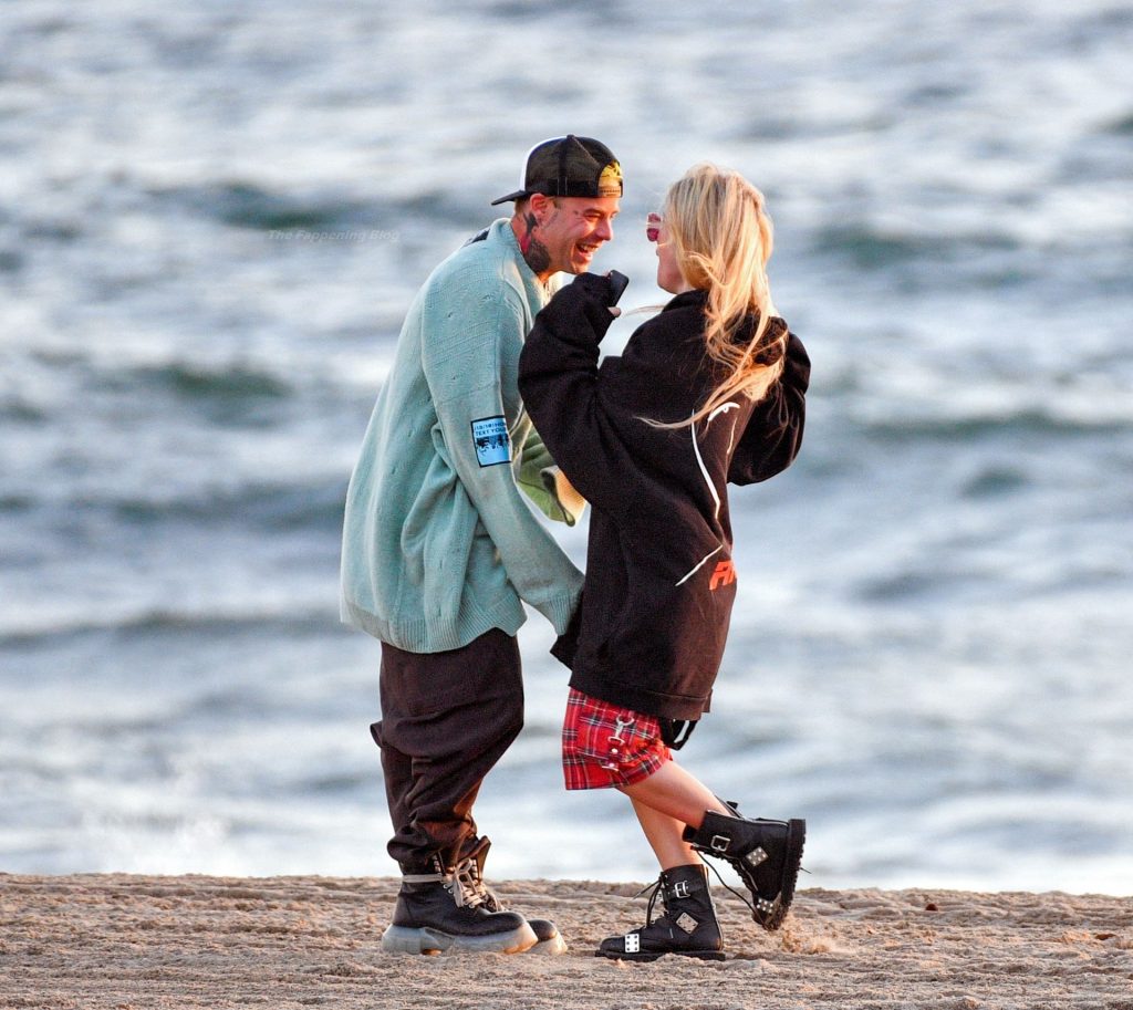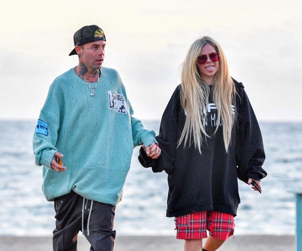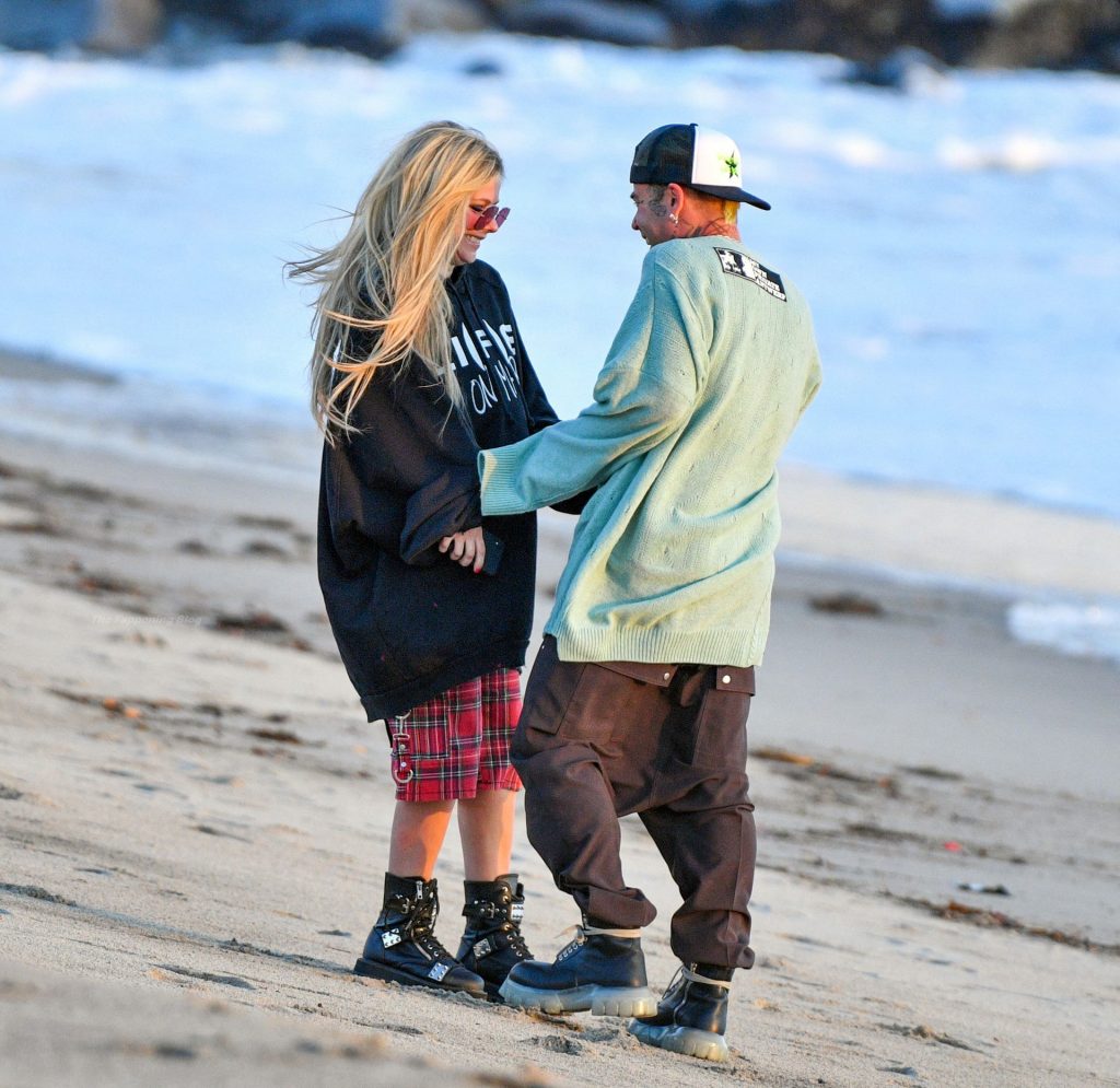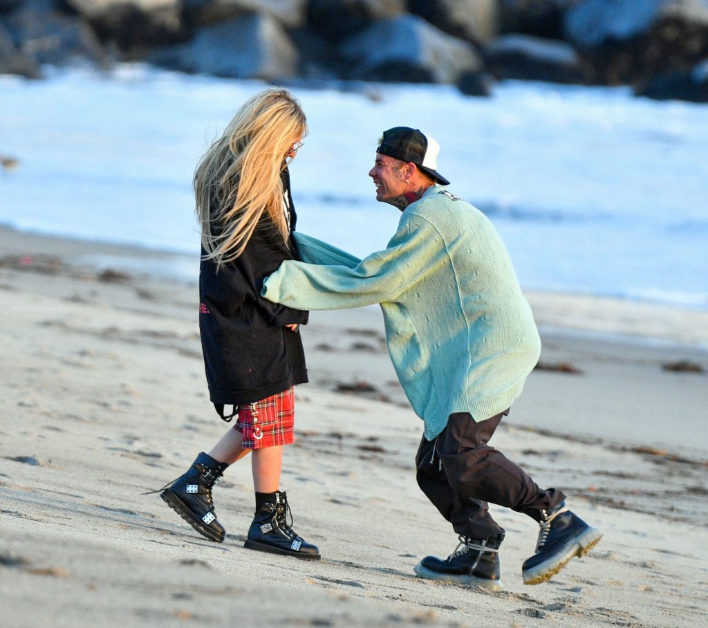 Аврил Лавин отмечает 34-й день рождения своего нового рокерского бойфренда Mod Sun романтической прогулкой по пляжу на закате в Санта-Монике, 11.03.2021.