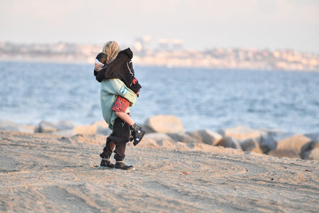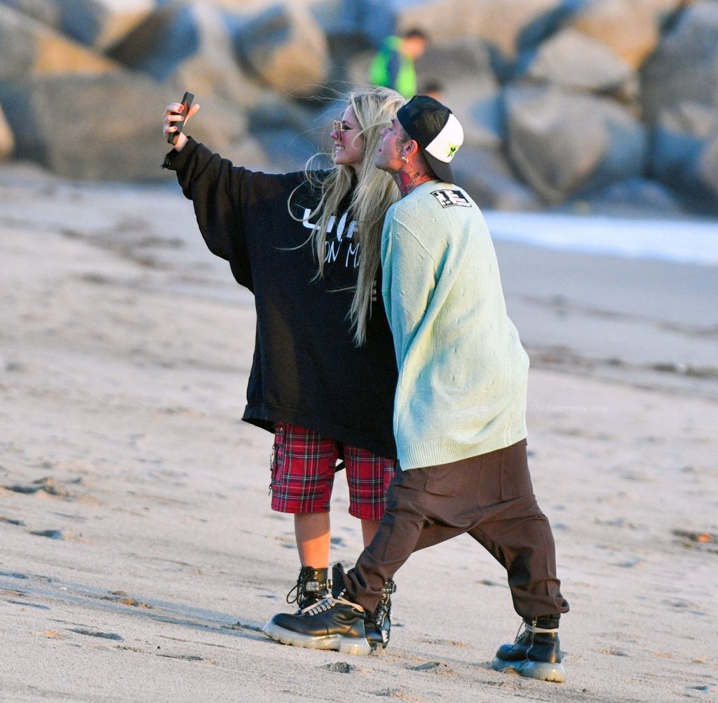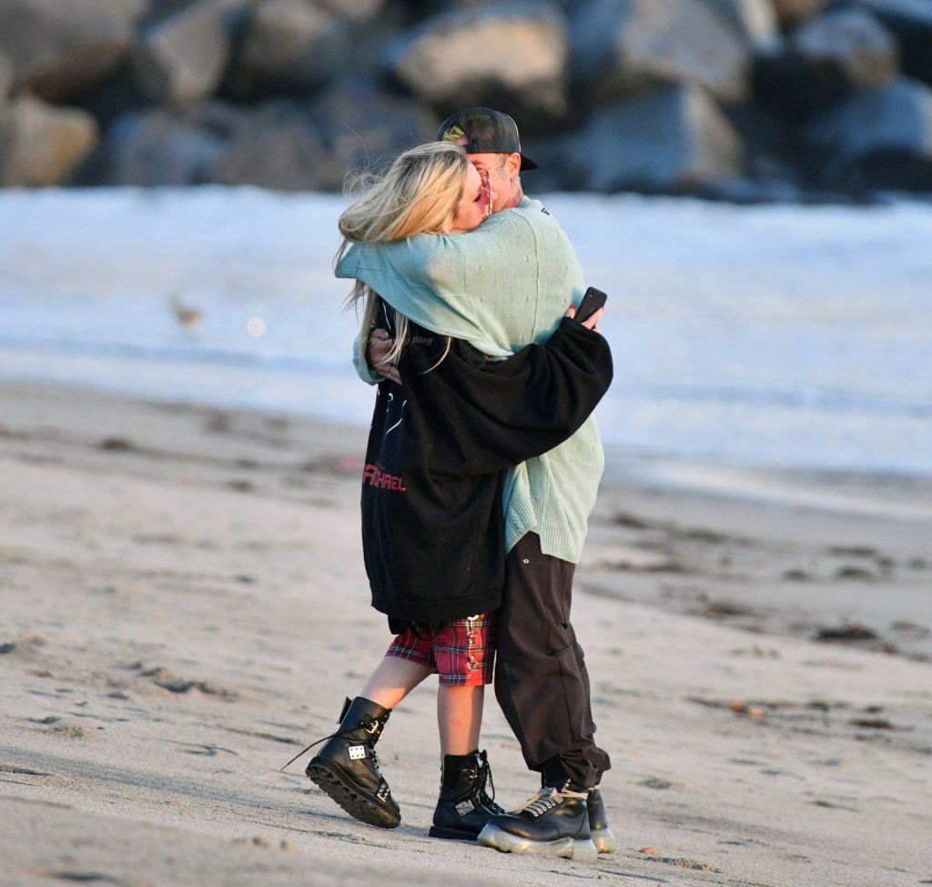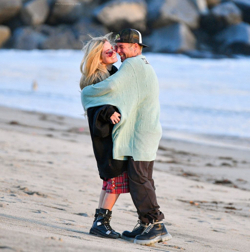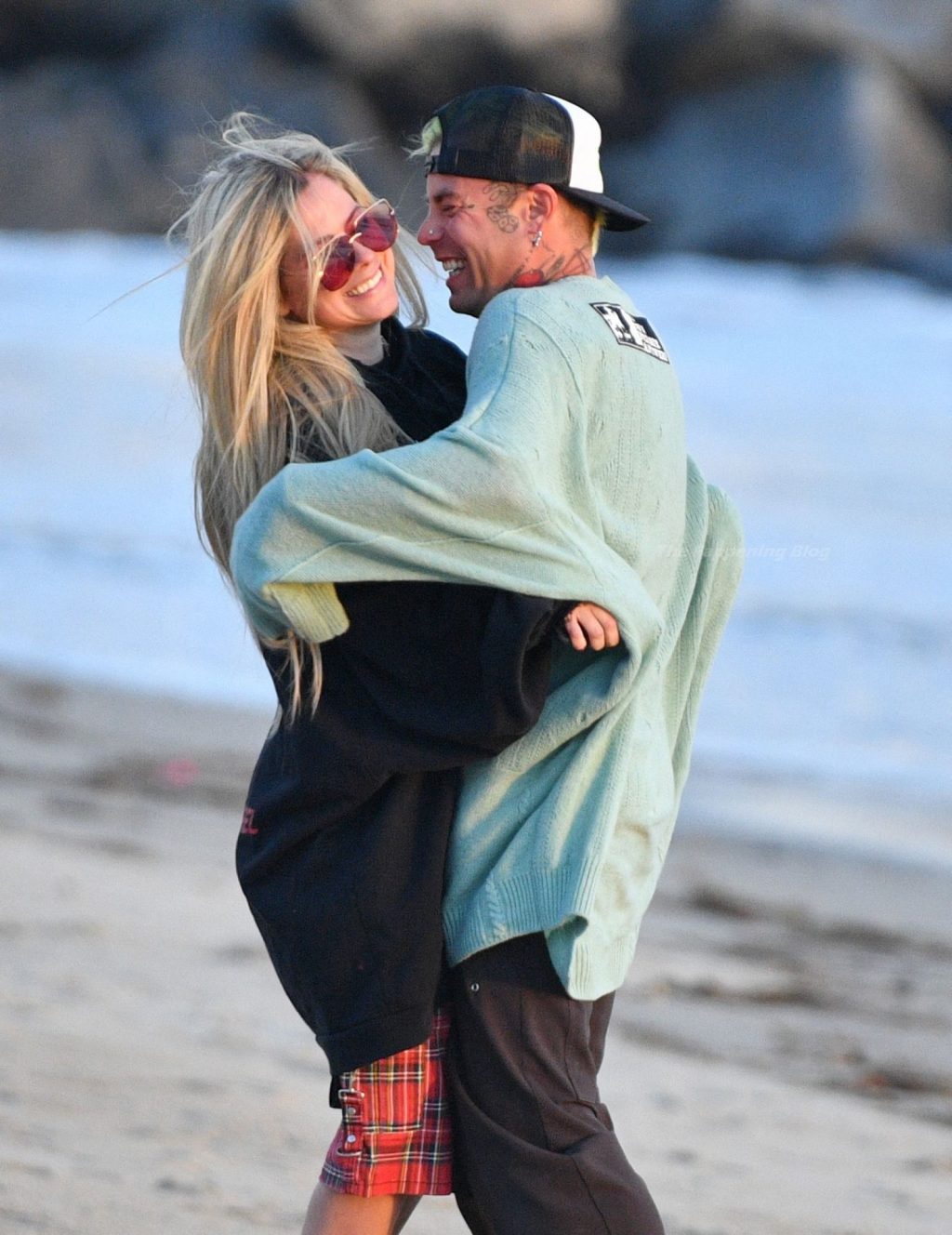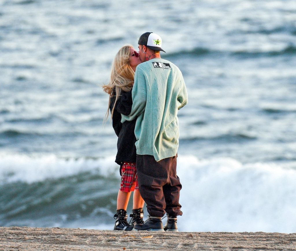 Аврил Лавин отмечает 34-й день рождения своего нового рокерского бойфренда Mod Sun романтической прогулкой по пляжу на закате в Санта-Монике, 11.03.2021.