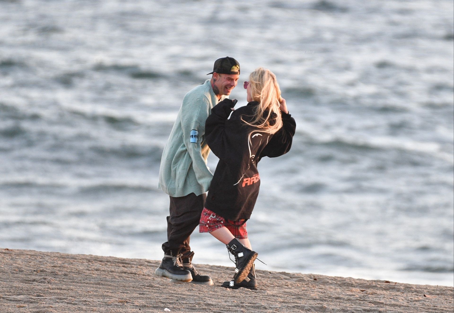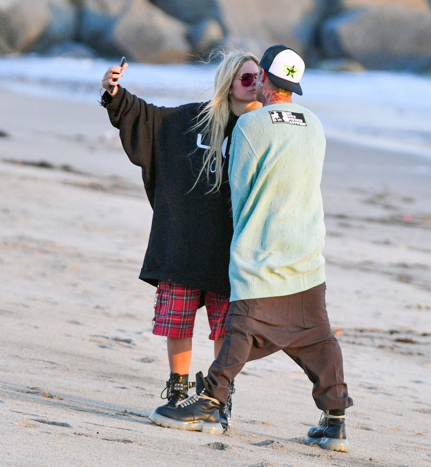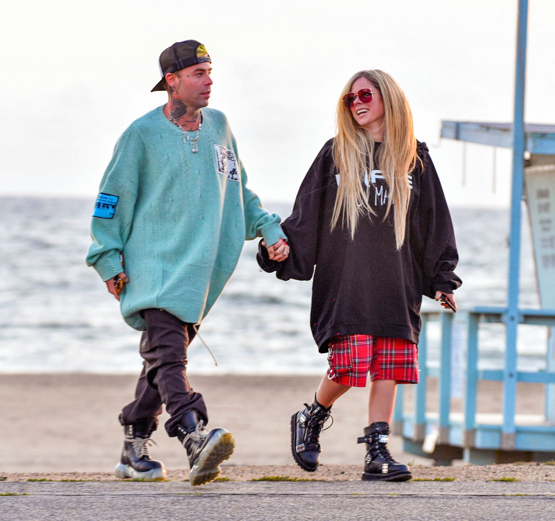 Аврил Лавин отмечает 34-й день рождения своего нового рокерского бойфренда Mod Sun романтической прогулкой по пляжу на закате в Санта-Монике, 11.03.2021.