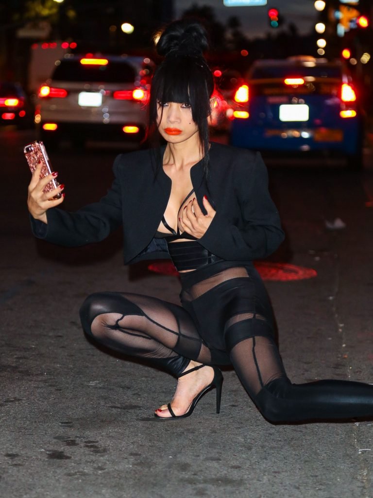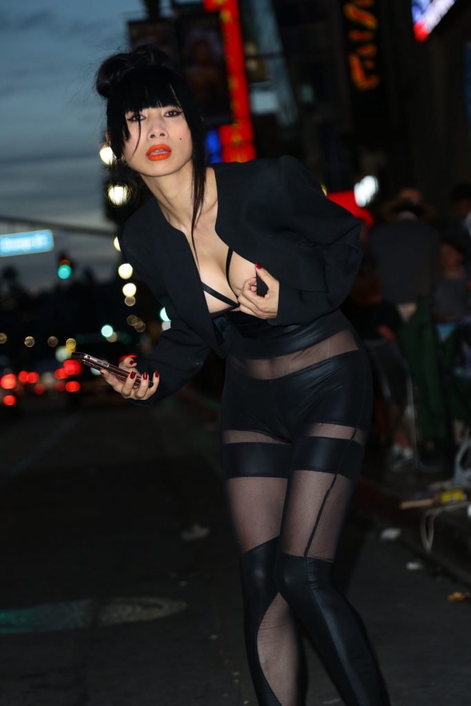 Bai Ling позирует на Голливудском бульваре в Лос-Анджелесе, 15.04.2017. Небольшой соскользнувший сосок и красивый камел-то! Bai Ling (白靈) — китайско-американская актриса (Secret Adventures to Shanghai – 2017). Возраст – 50 (родилась 10 октября 1966).