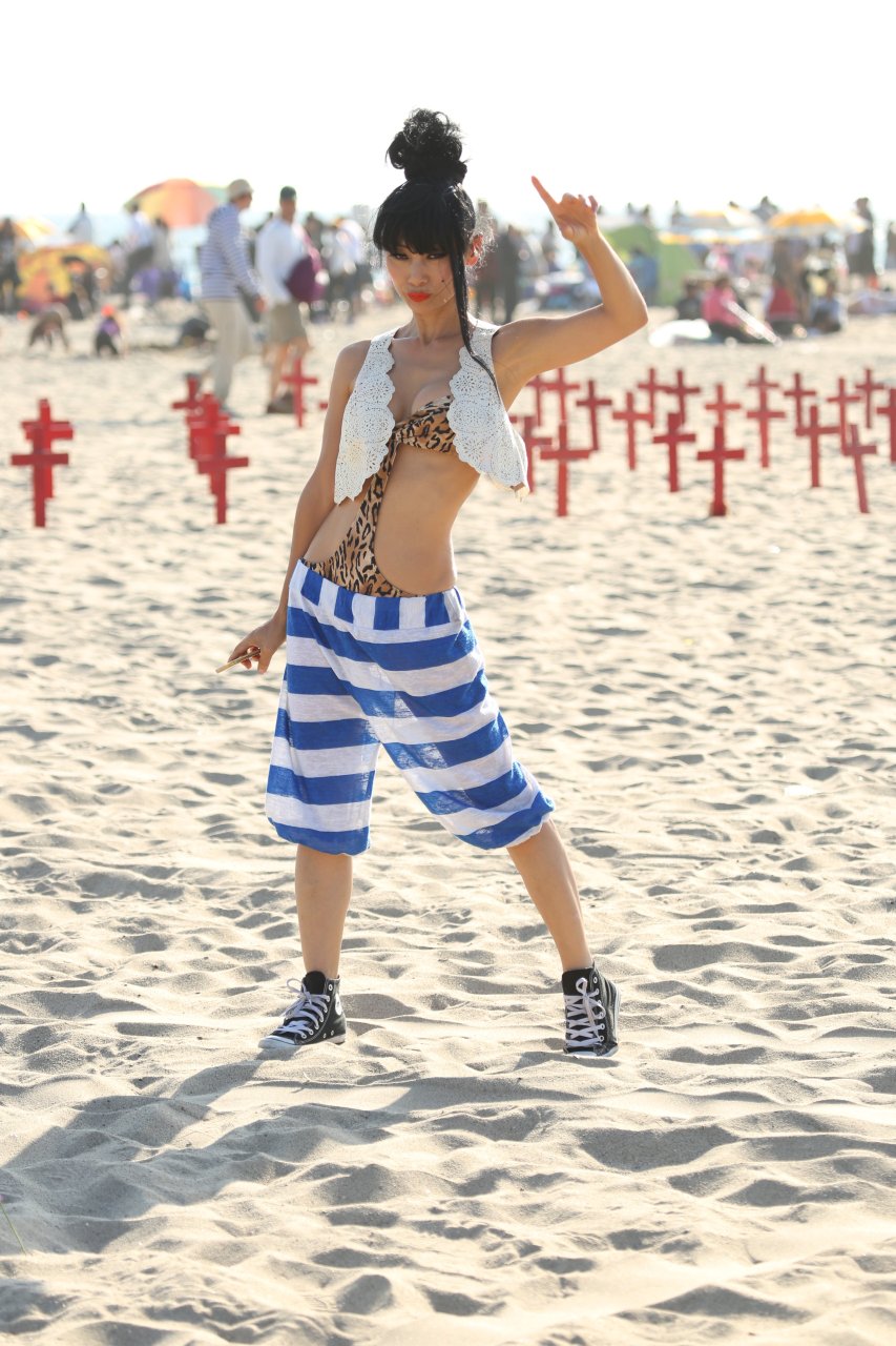 Новые сексуальные фотографии Бай Линг на пляже в Санта-Монике, 30.05.2016. Маленькие ареолы виднеются! Бай Линг — китайско-американская актриса. Возраст 49 лет (10 октября 1966).