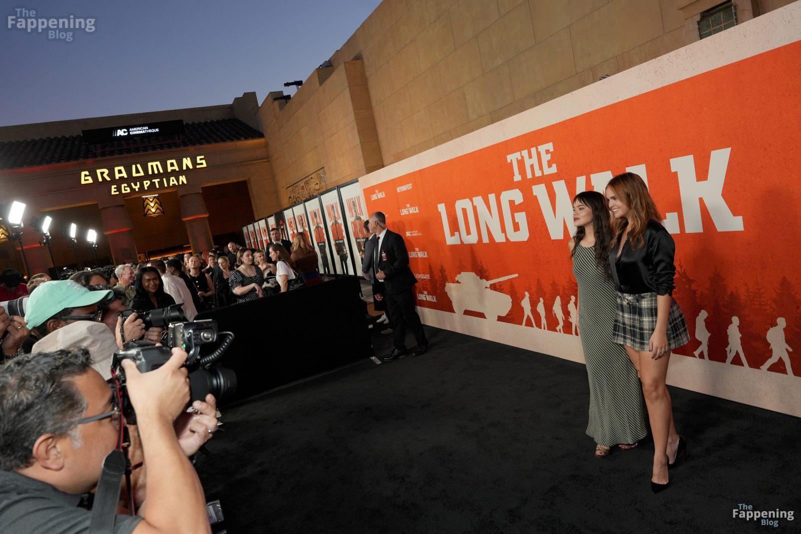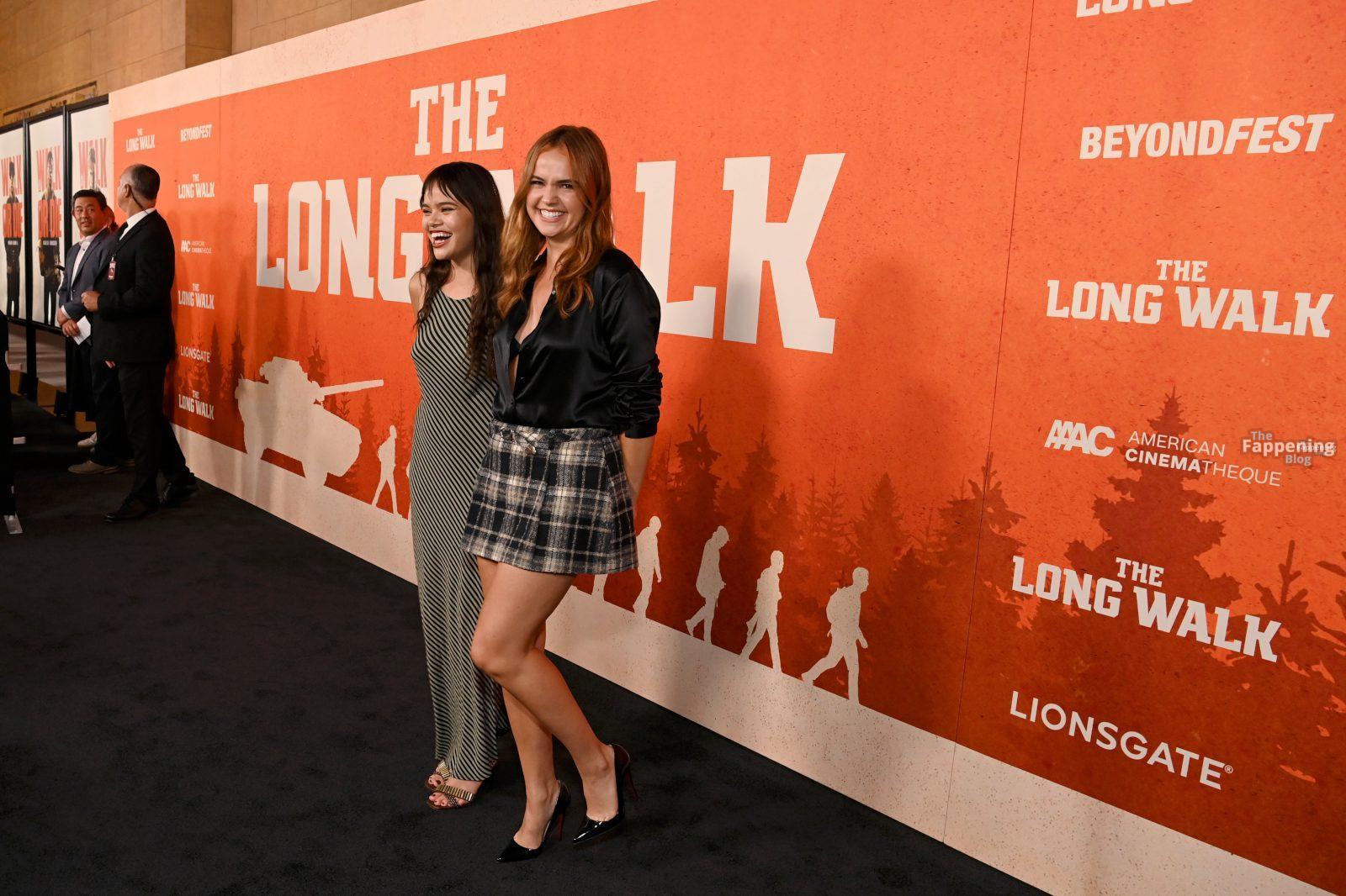 Бэйли Мэдисон пришла на специальный показ фильма “Долгая прогулка” в театре El Capitan в Лос-Анджелесе, демонстрируя декольте и ноги в атласной блузке, заправленной в клетчатую мини-юбку