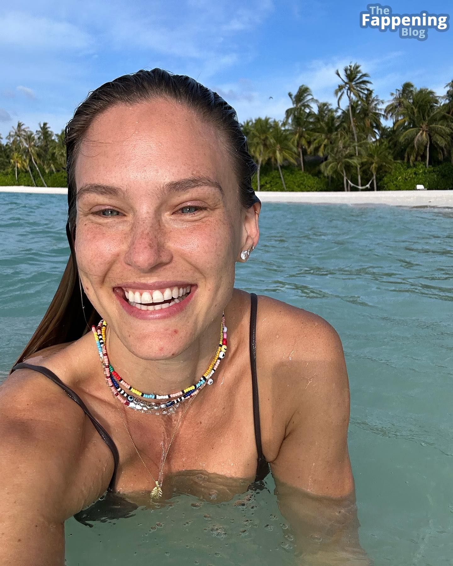 Бар Рафаэли, известная израильская модель, вновь привлекла внимание поклонников и СМИ своими горячими фотографиями. На некоторых снимках она позирует на пляже в откровенном коричневом бикини, демонстрируя подтянутую фигуру и загорелую кожу.