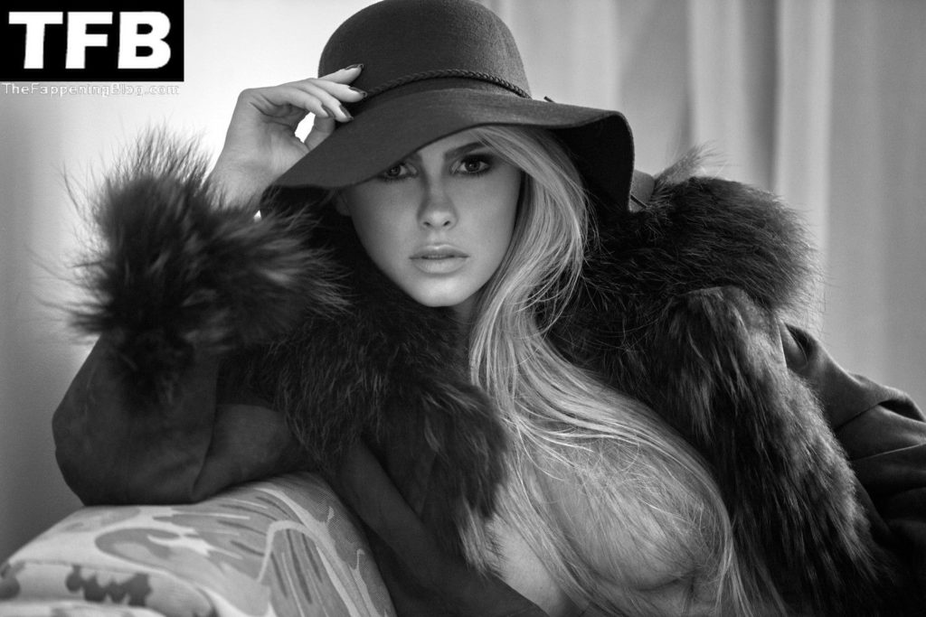 Бразильская модель Ба́рбара Эванс Кларк демонстрирует свои обнажённые груди и ягодицы в чёрно-белой эротической фотосессии.