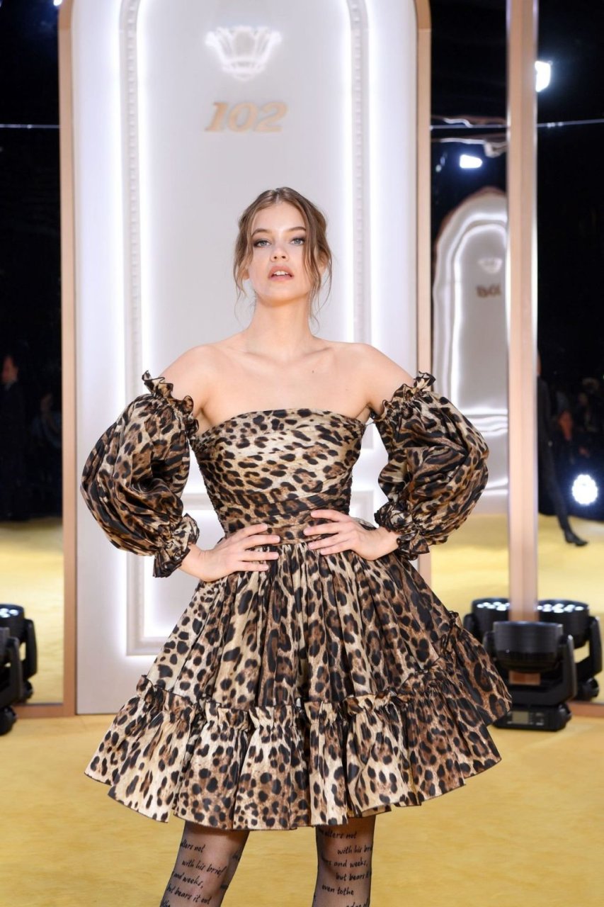Модель Барбара Палвин продемонстрировала свои сексуальные ноги в колготках с надписями на шоу Calzedonia Leg Show в Вероне, Италия, 08.10.2019.