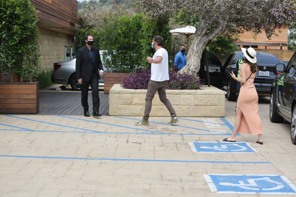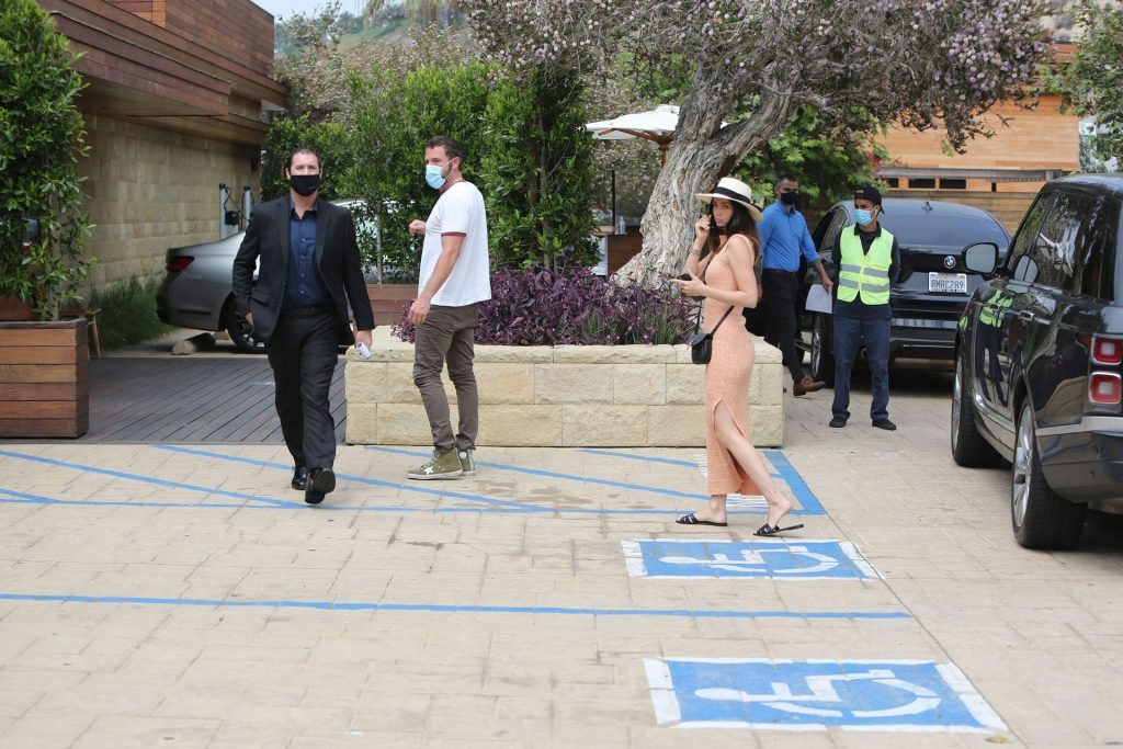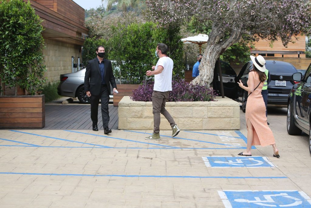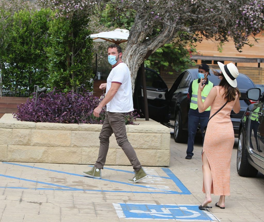 Бен Аффлек приглашает свою девушку Ану де Армас в Nobu Malibu на ранний субботний обед (июль 2020). Кубинско-испанская актриса почти выглядела ГОЛОЙ в своем ребристом персиковом платье, дополненном сумкой через плечо Saint Laurent и шлепанцами YSL. Бен был в высоких кроссовках Golden Goose стоимостью 550 долларов. Эй, эти двое — настоящие модники!