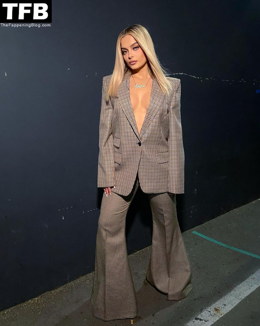 Певица Биби Рекса позирует без бюстгальтера, показывая свое красивое декольте с маленькой грудью, позируя в брючном костюме – Instagram, 24.10.2021.