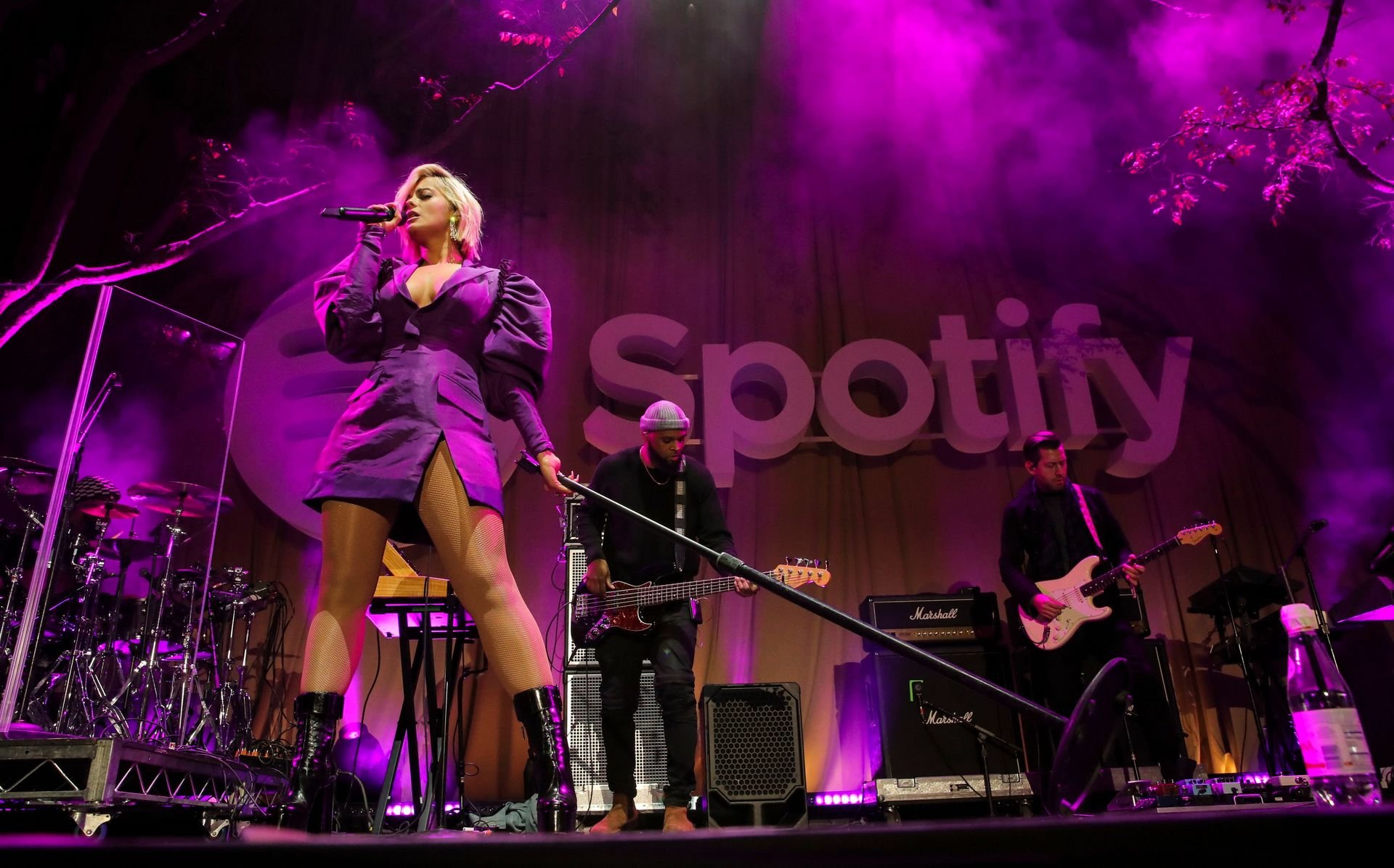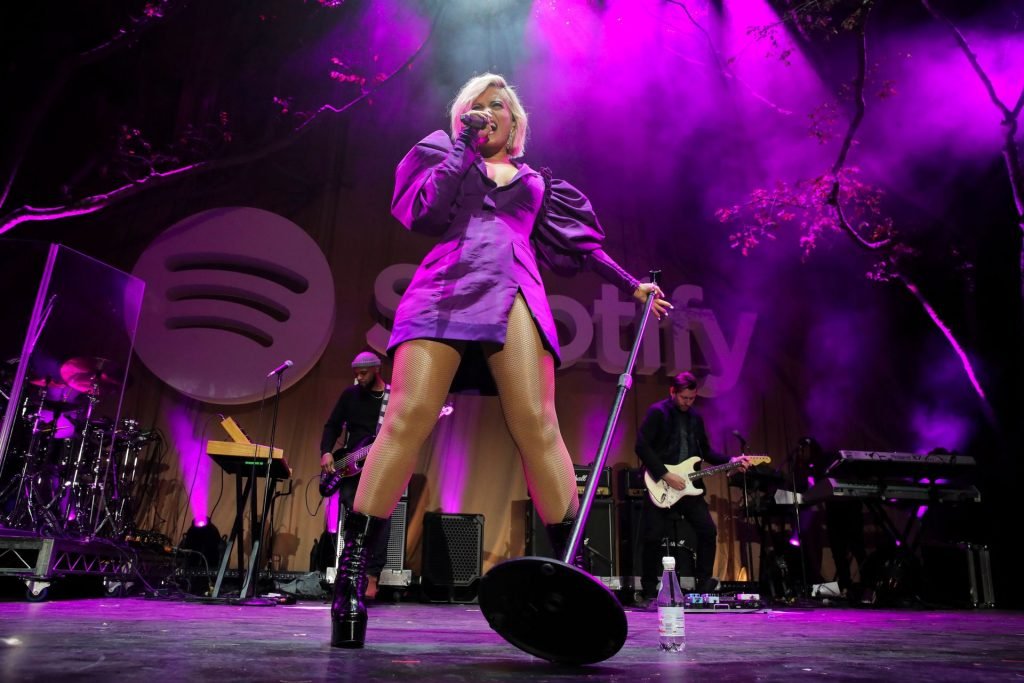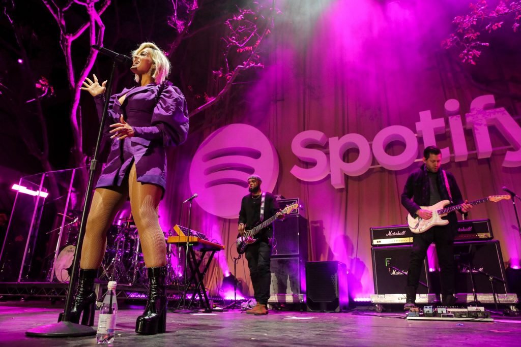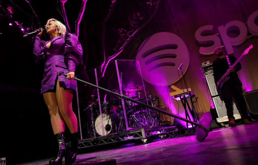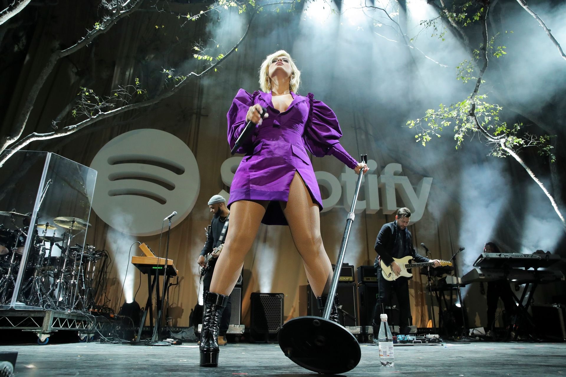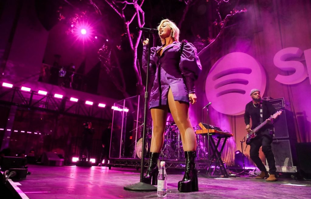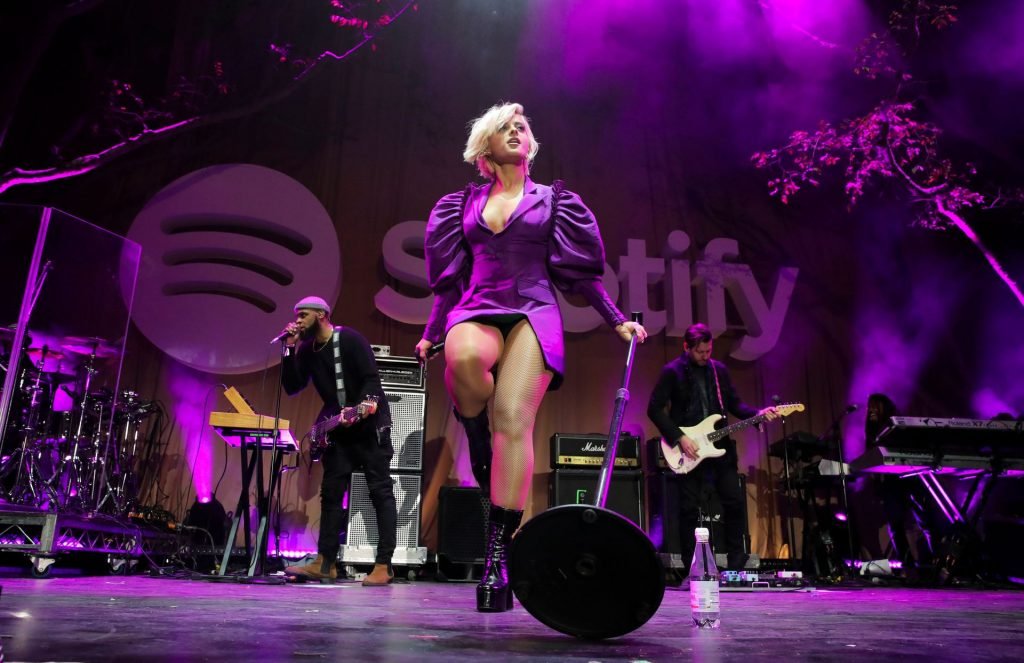 Певица Bebe Rexha продемонстрировала свое декольте и выступила на вечеринке Spotify “The Best New Artist 2019 Party” в музее Hammer в Лос-Анджелесе, 07.02.2019.
