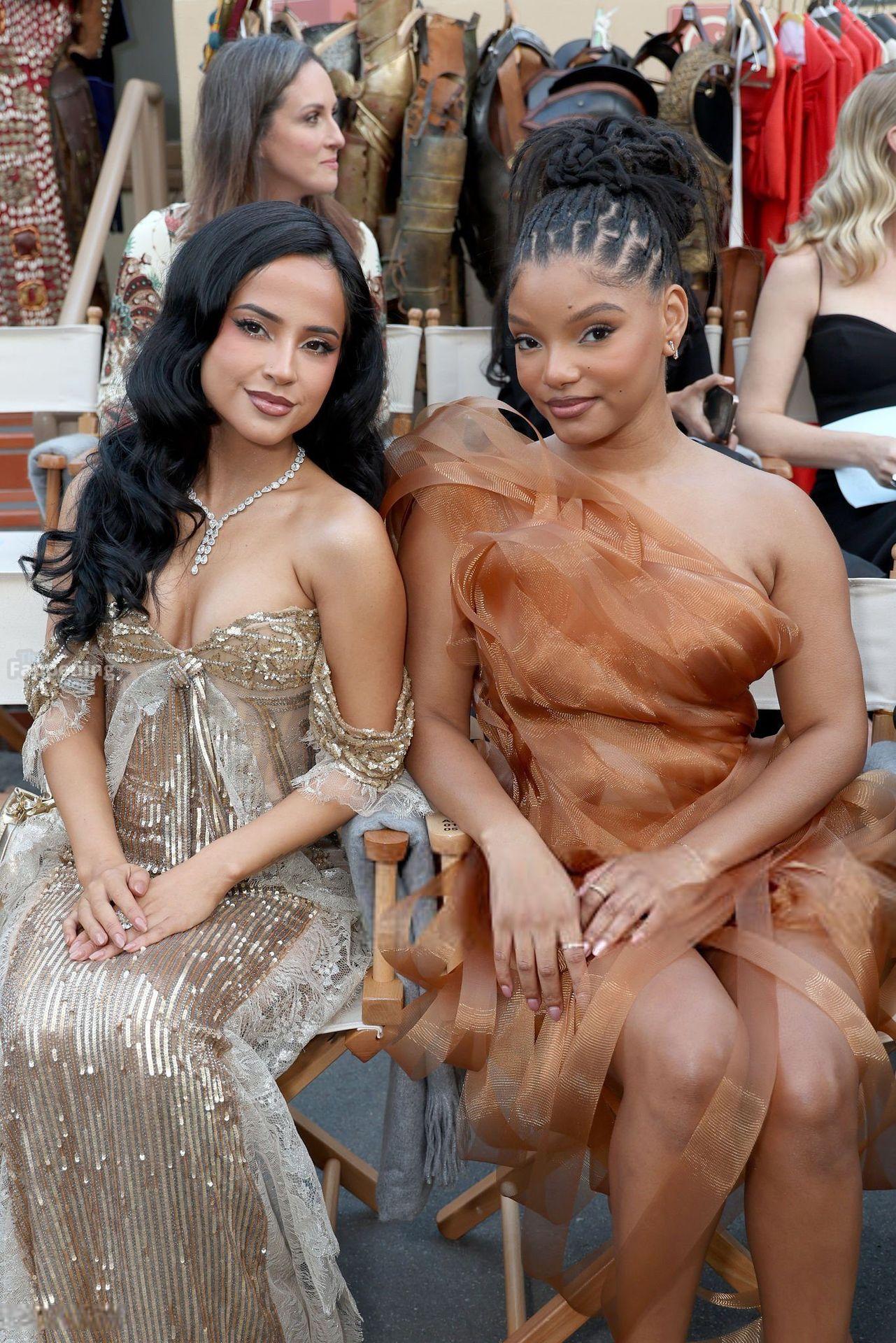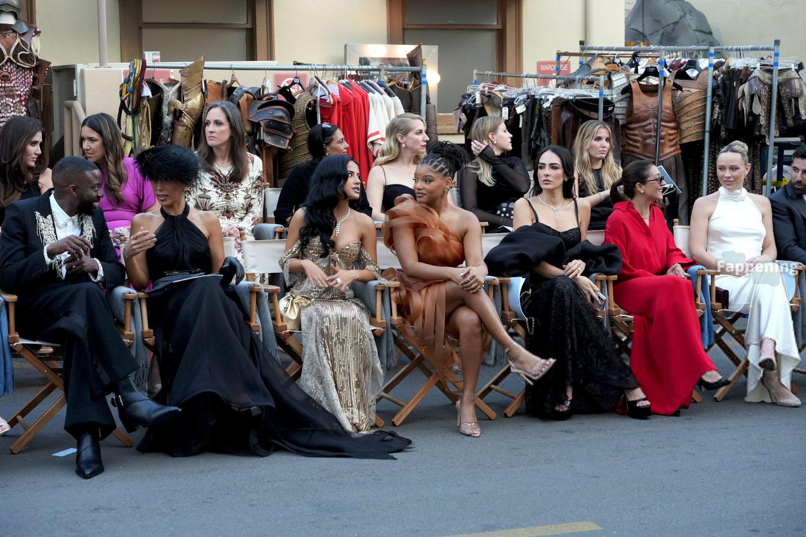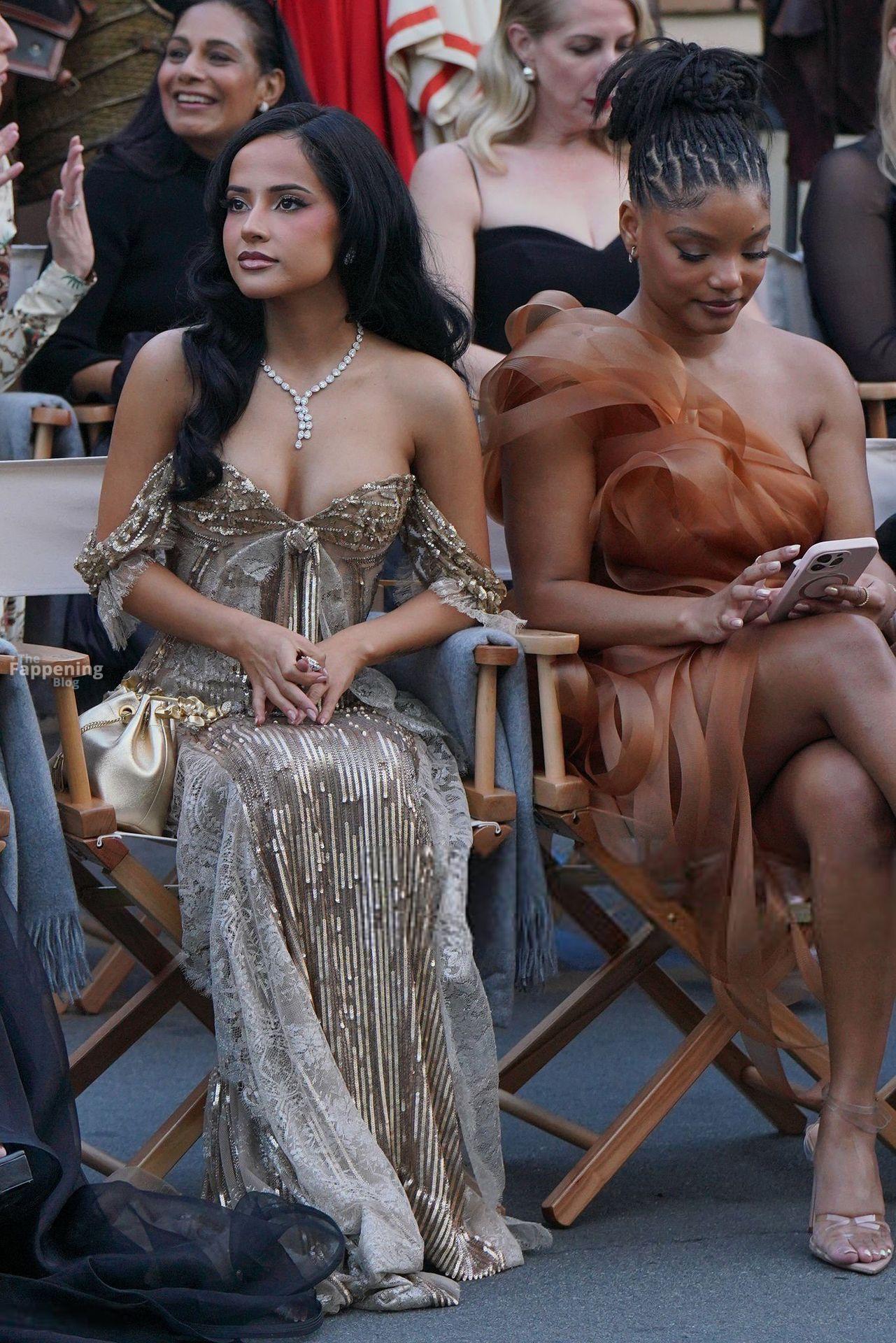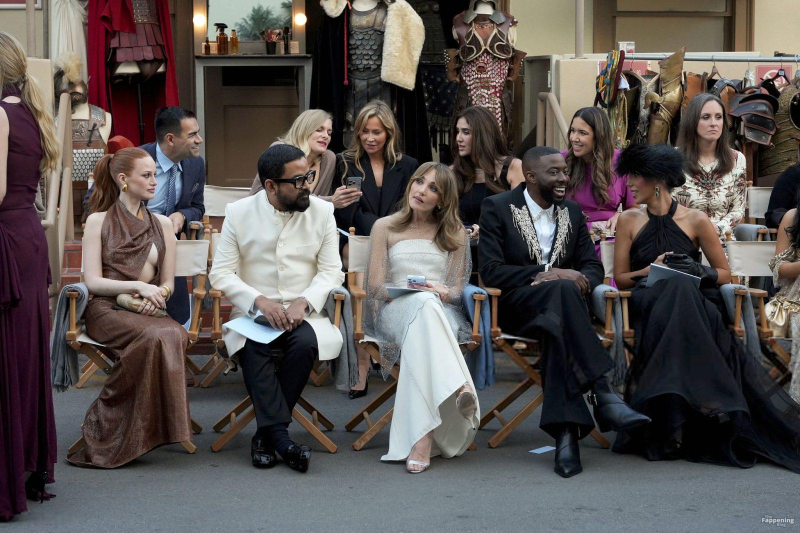 Певица Бекки Джи демонстрирует свое декольте в золотом платье с пайетками на Vogue World: Hollywood 2025.