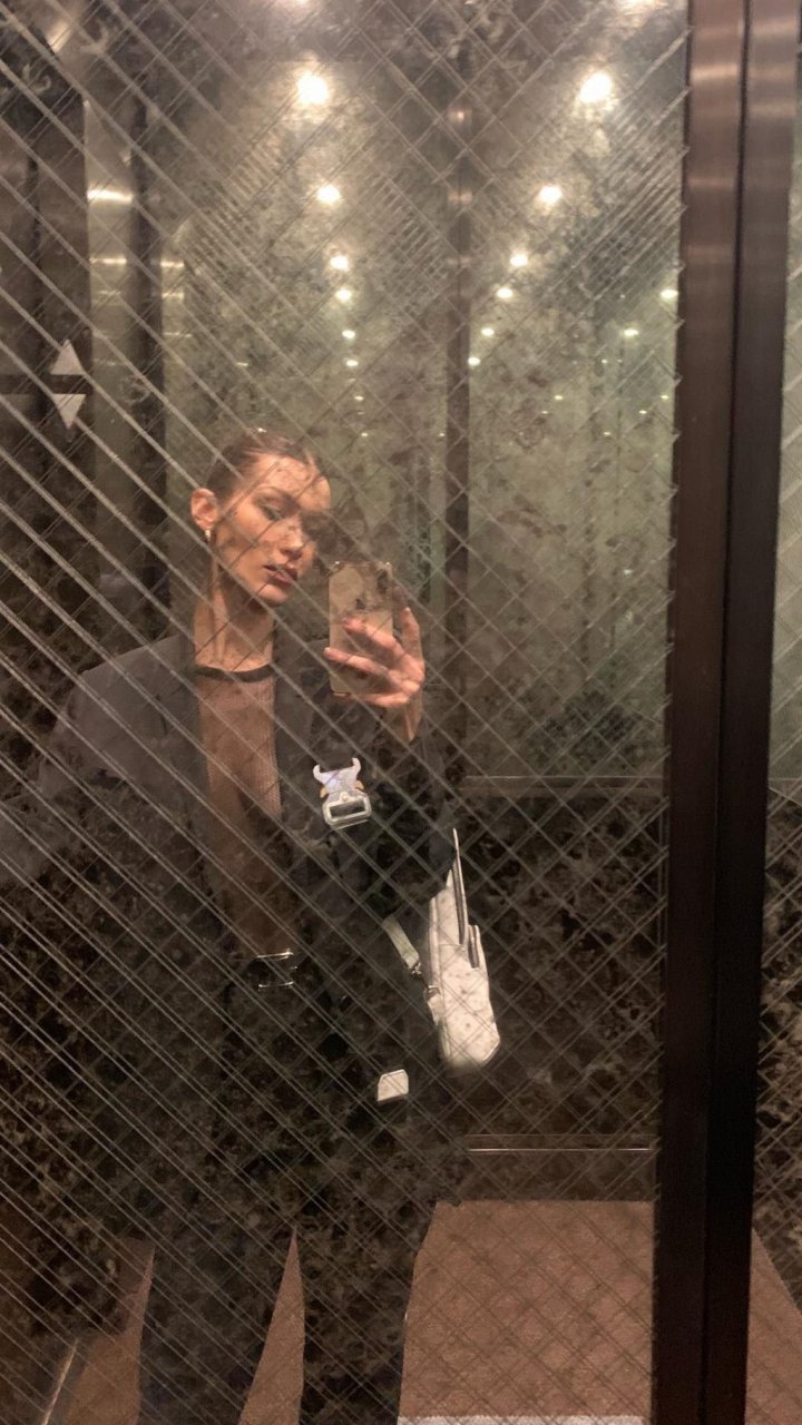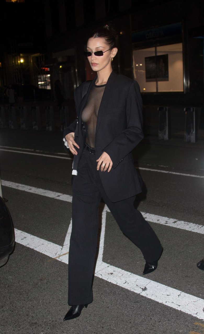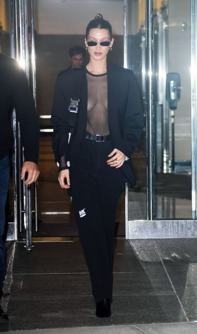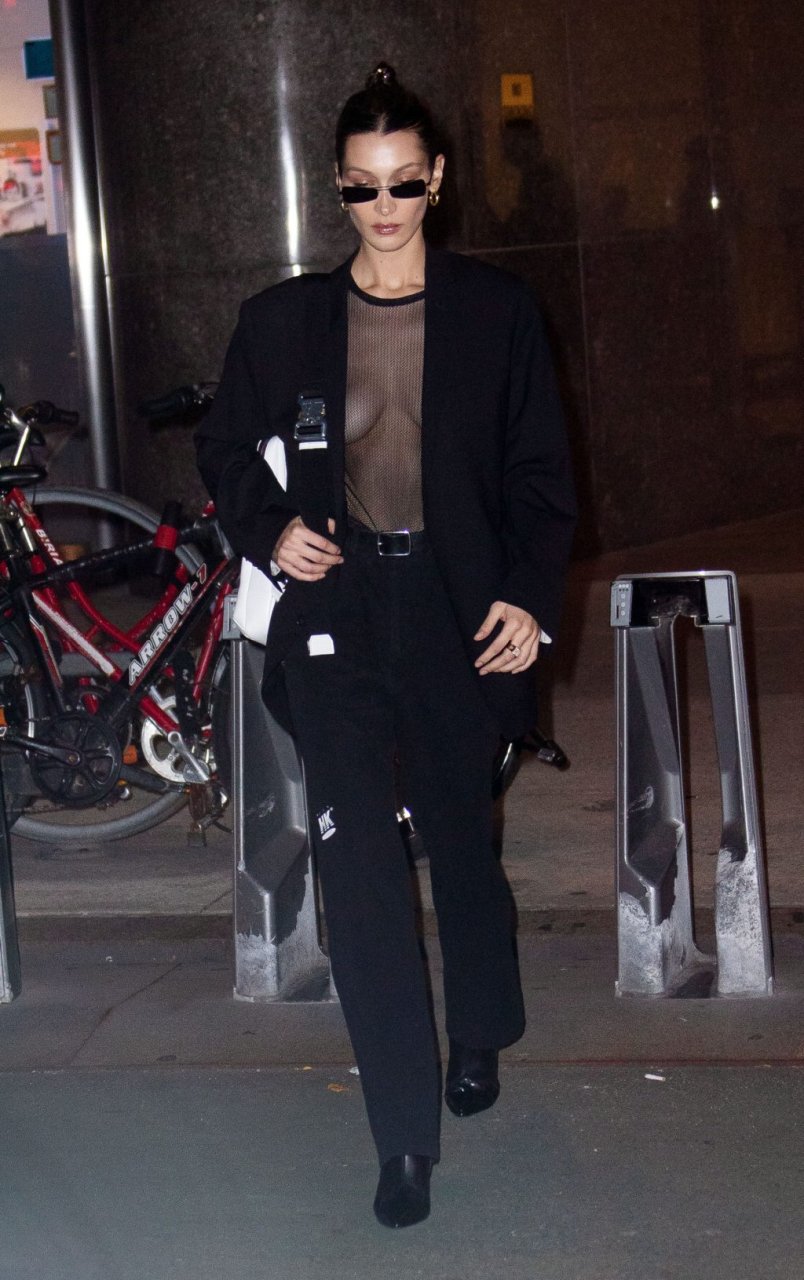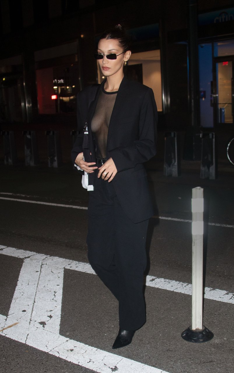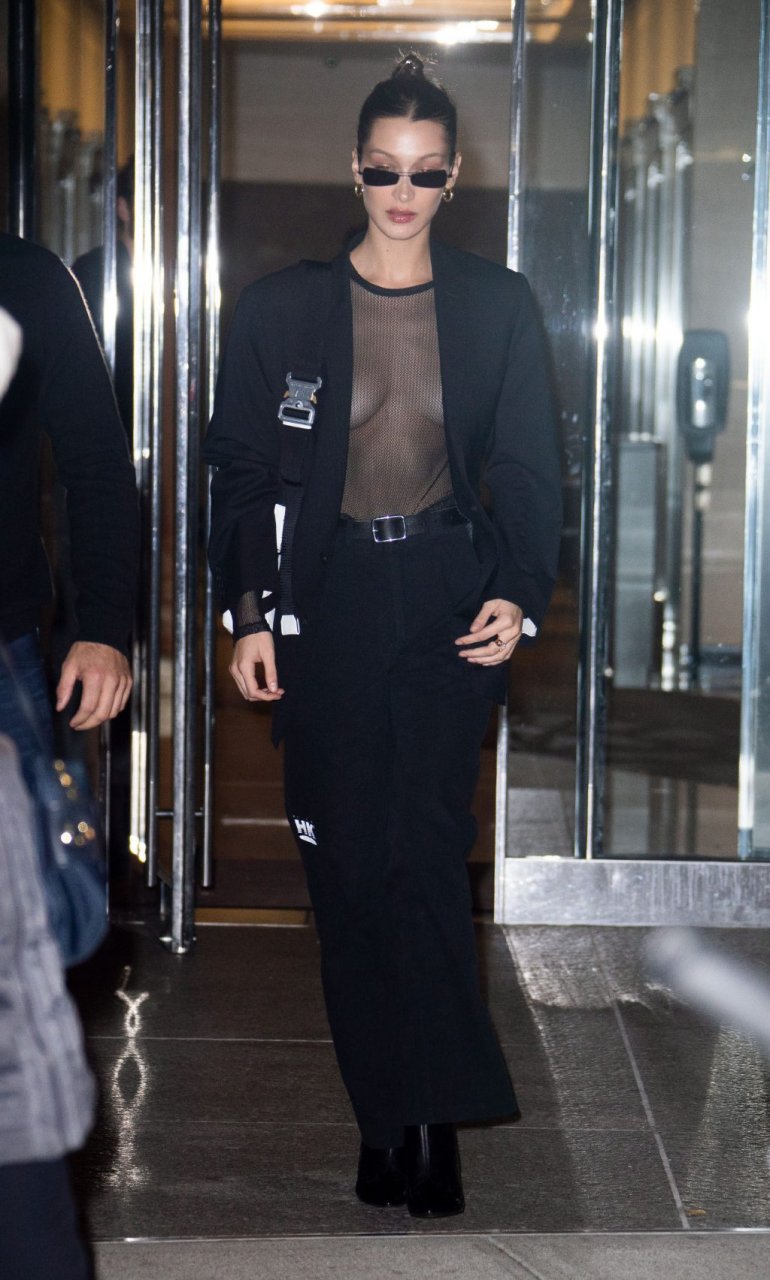 Модель Белла Хадид носит прозрачный черный топ, гуляя по Нью-Йорку, 11/04/2018.
