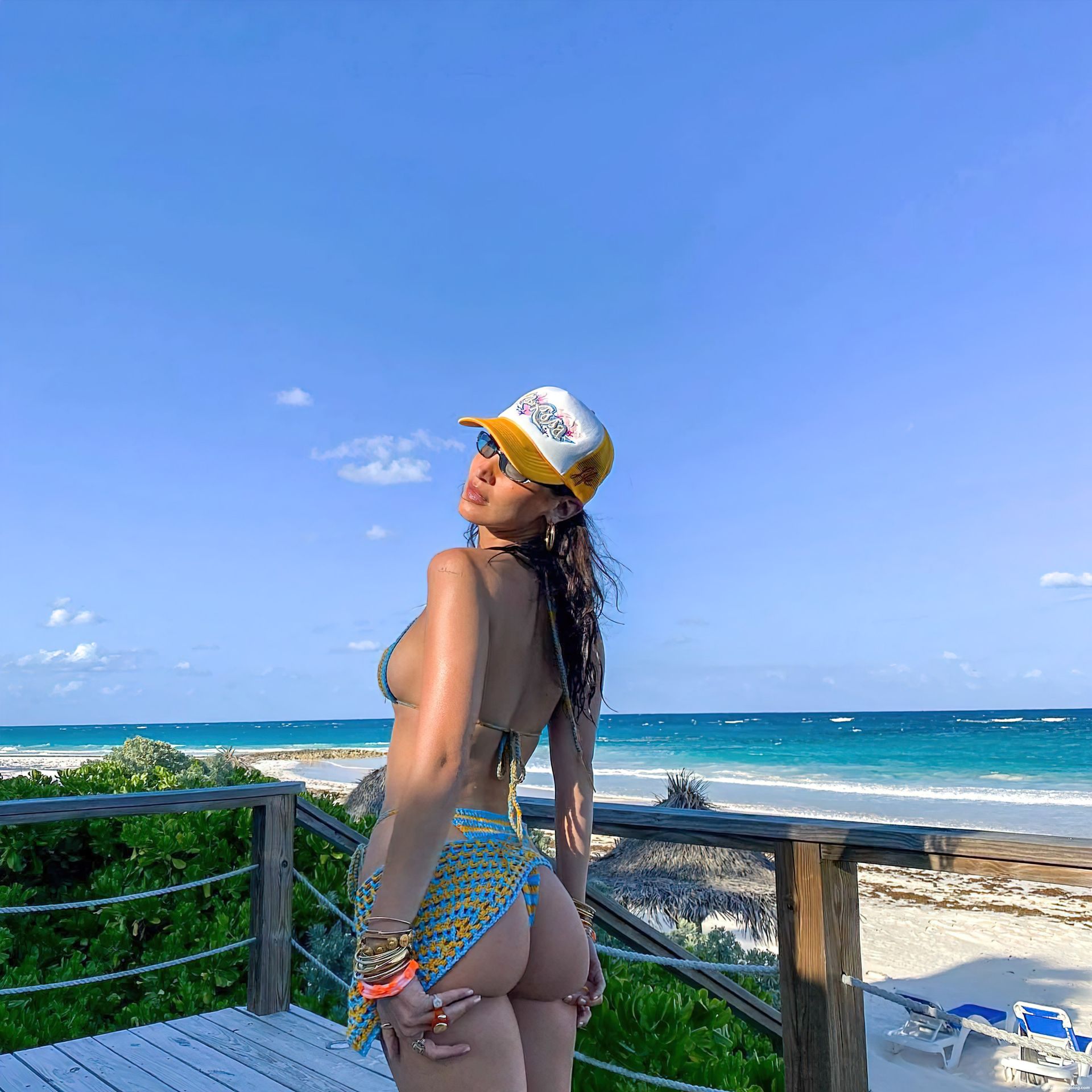Модель Белла Хадид показывает свою красивую попу, позируя в бикини для своего аккаунта в социальных сетях, 25.07.2021.