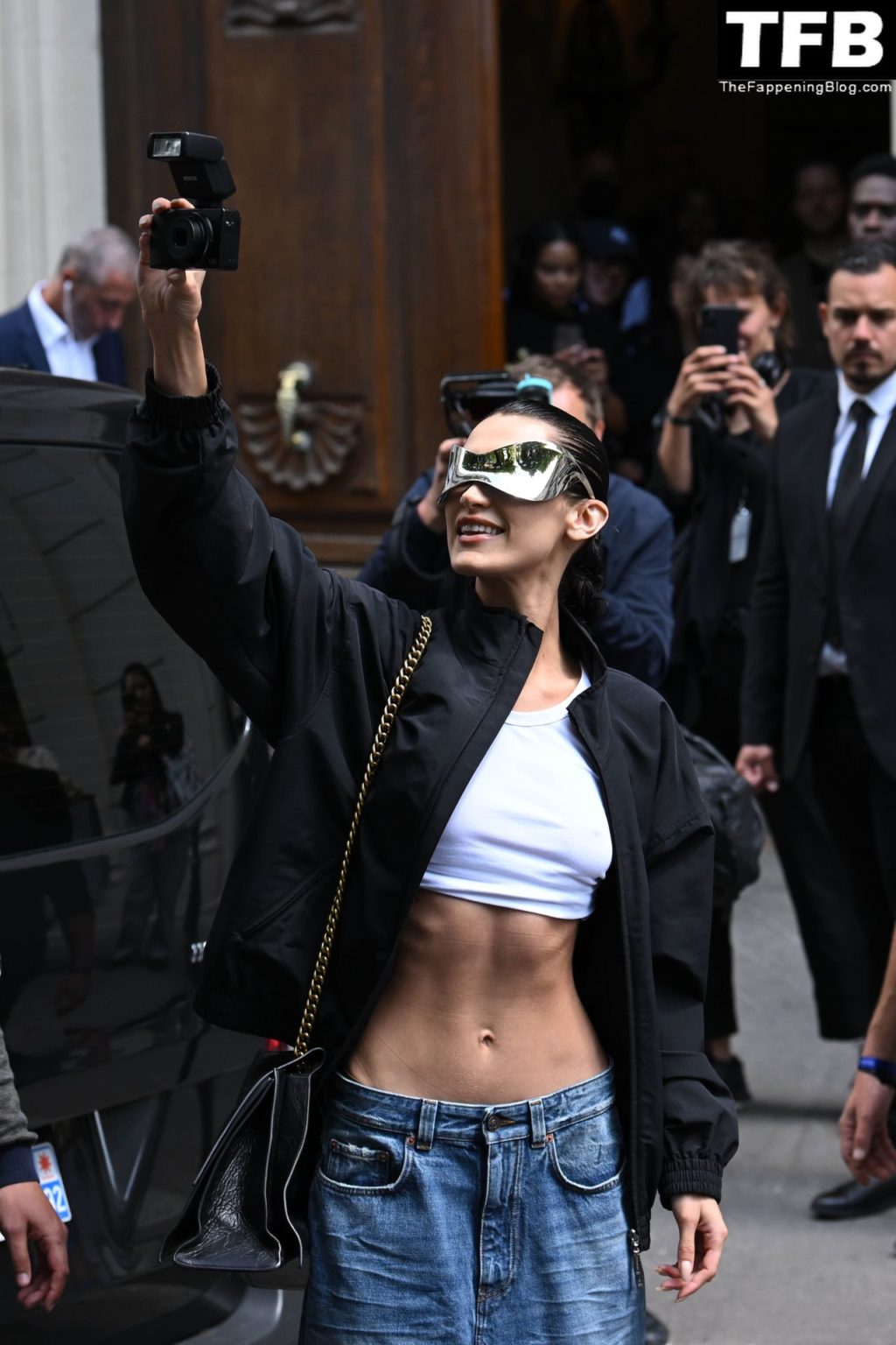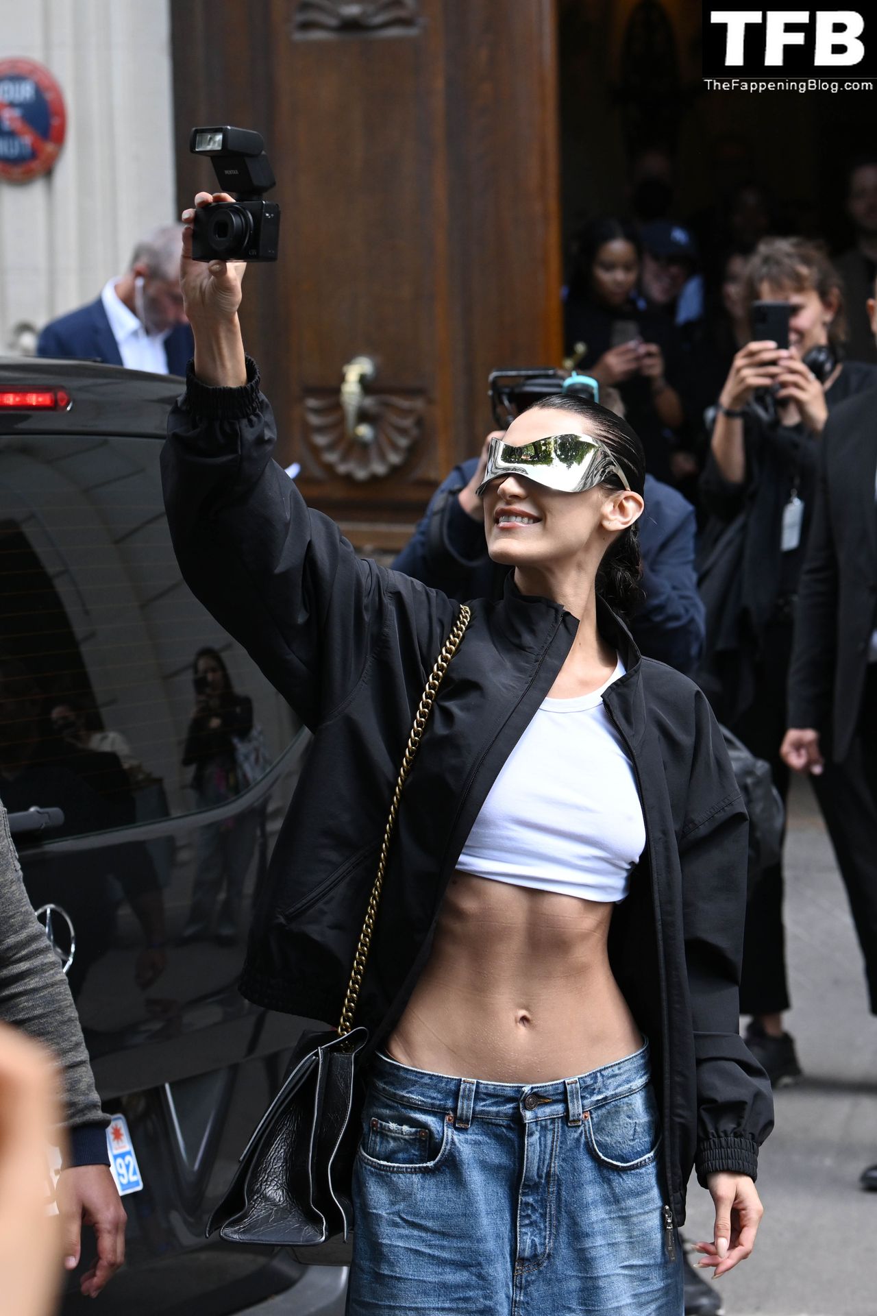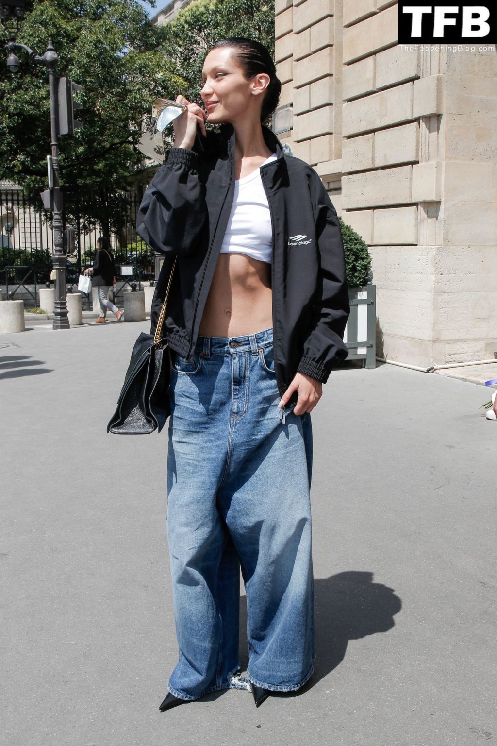 Белла Хадид демонстрирует свою стройную талию и грудь в Париже (88 фото)