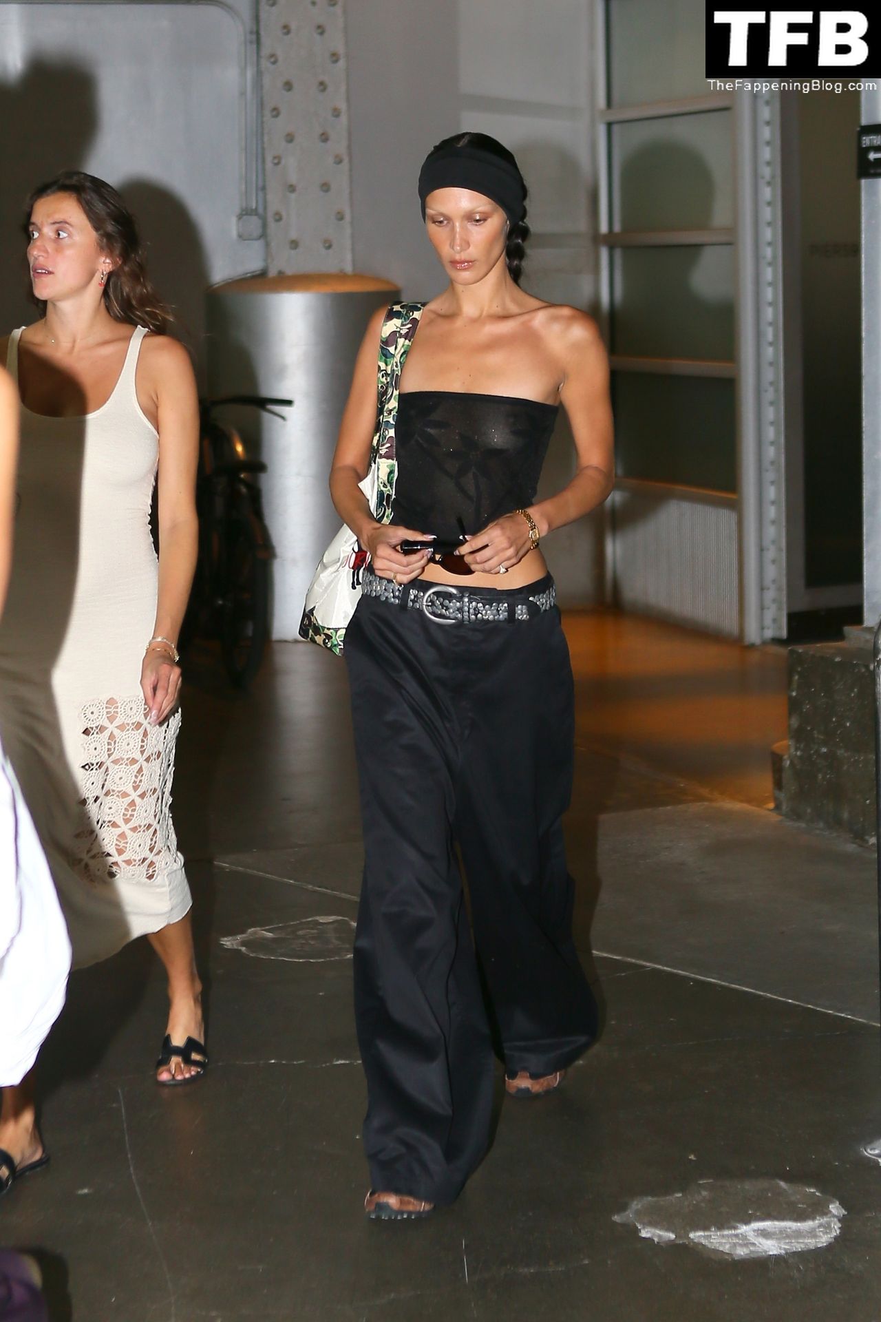 Модель Белла Хадид замечена без бюстгальтера, покидая студию Pier 59 после фотосессии в Нью-Йорке, 21.07.2022.