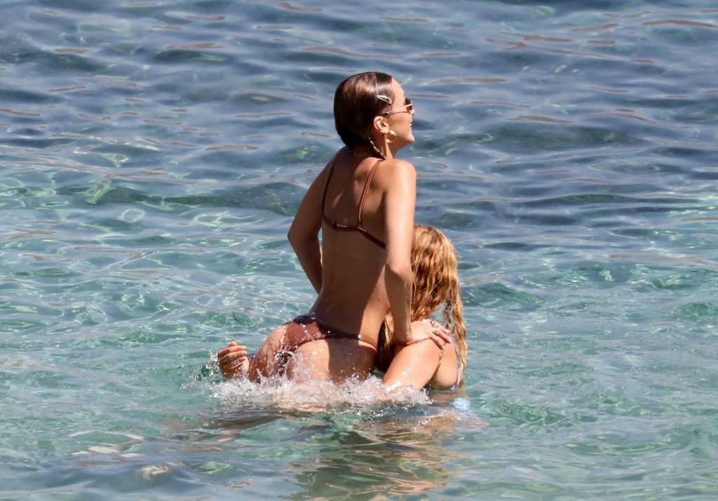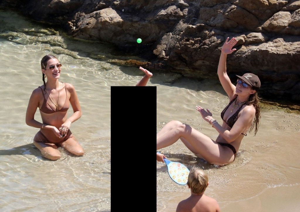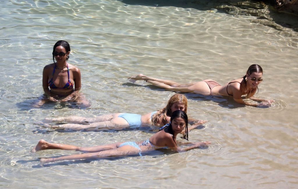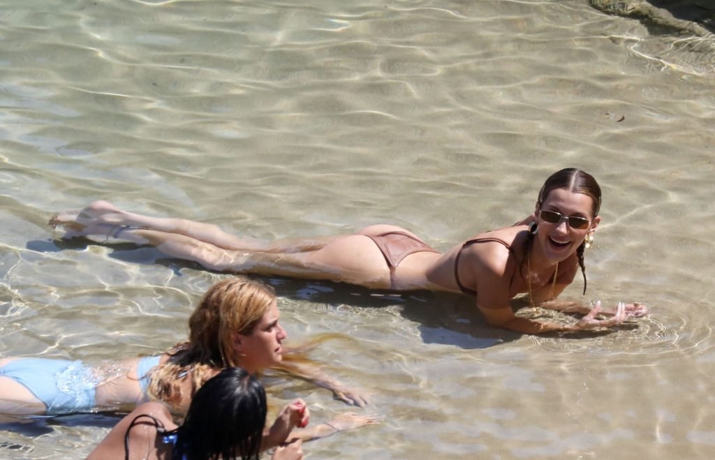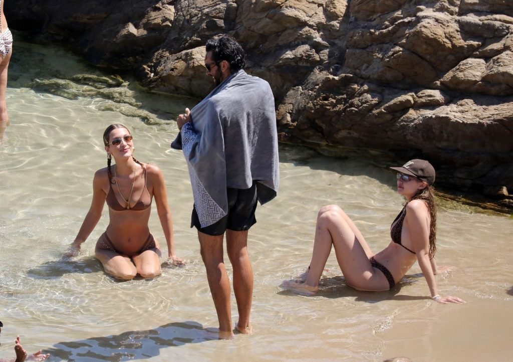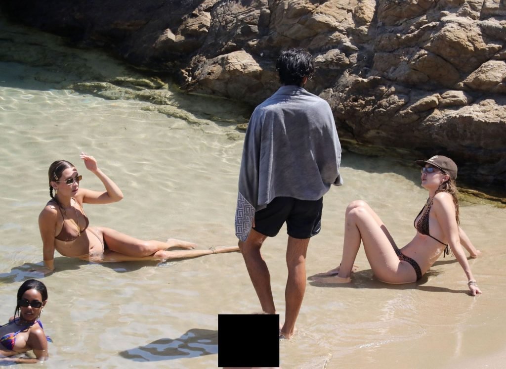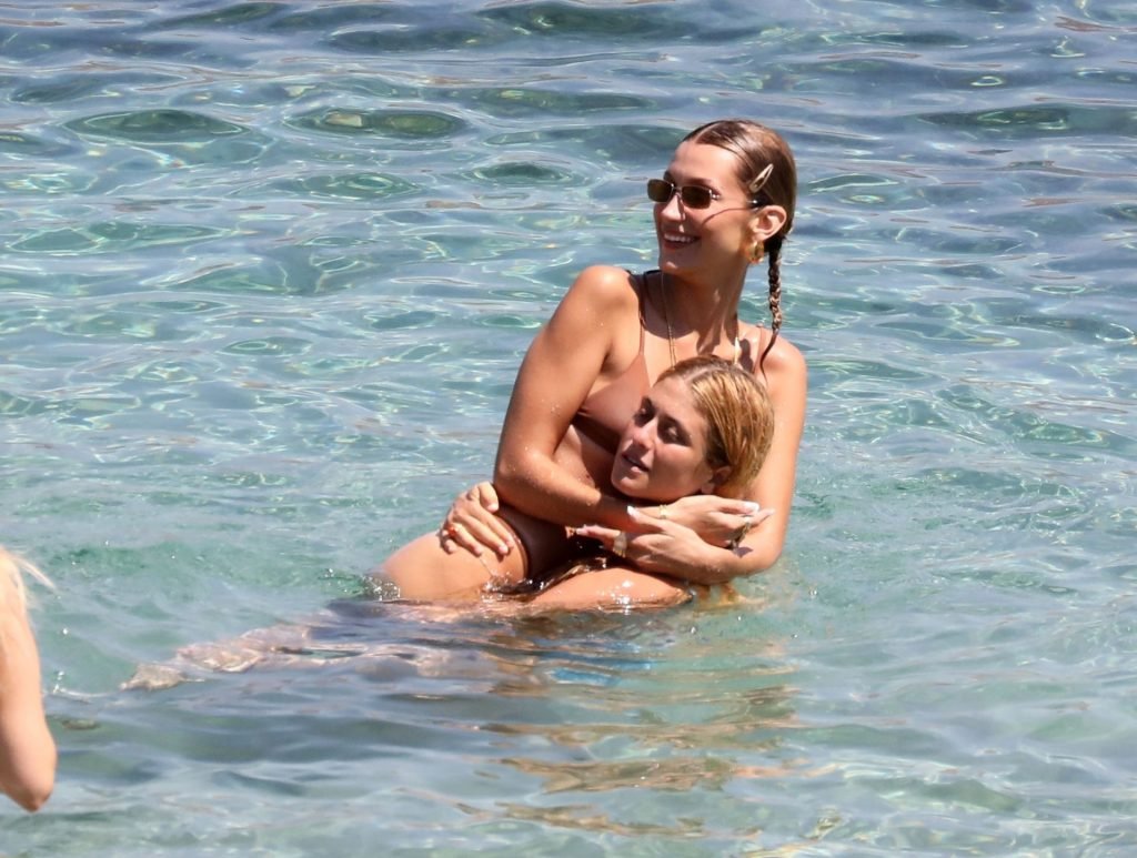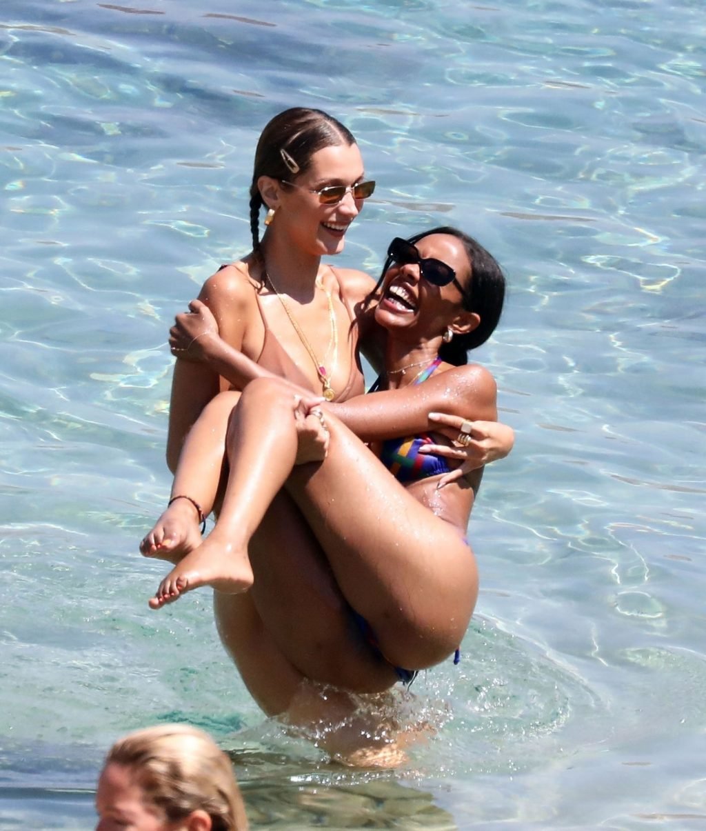 Сестры Белла Хадид и Джиджи Хадид были замечены с друзьями, проводящими время на пляже во время отпуска на Миконосе, 29.07.2019.