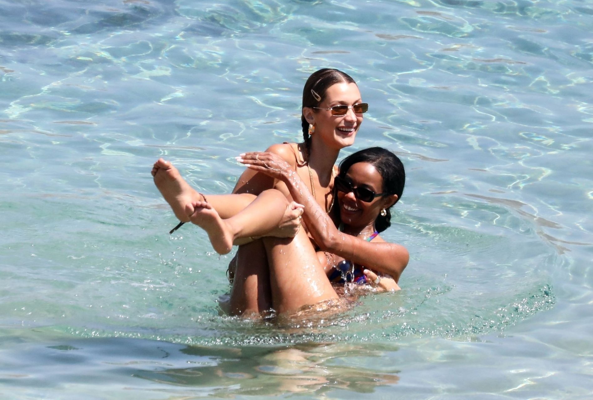 Модельные сестры были сфотографированы, как весело проводят время вместе на пляже, играя с песком, прежде чем бросить друг друга в море. Белла и Джиджи также продемонстрировали свои завидные пляжные тела, наслаждаясь солнечными лучами.