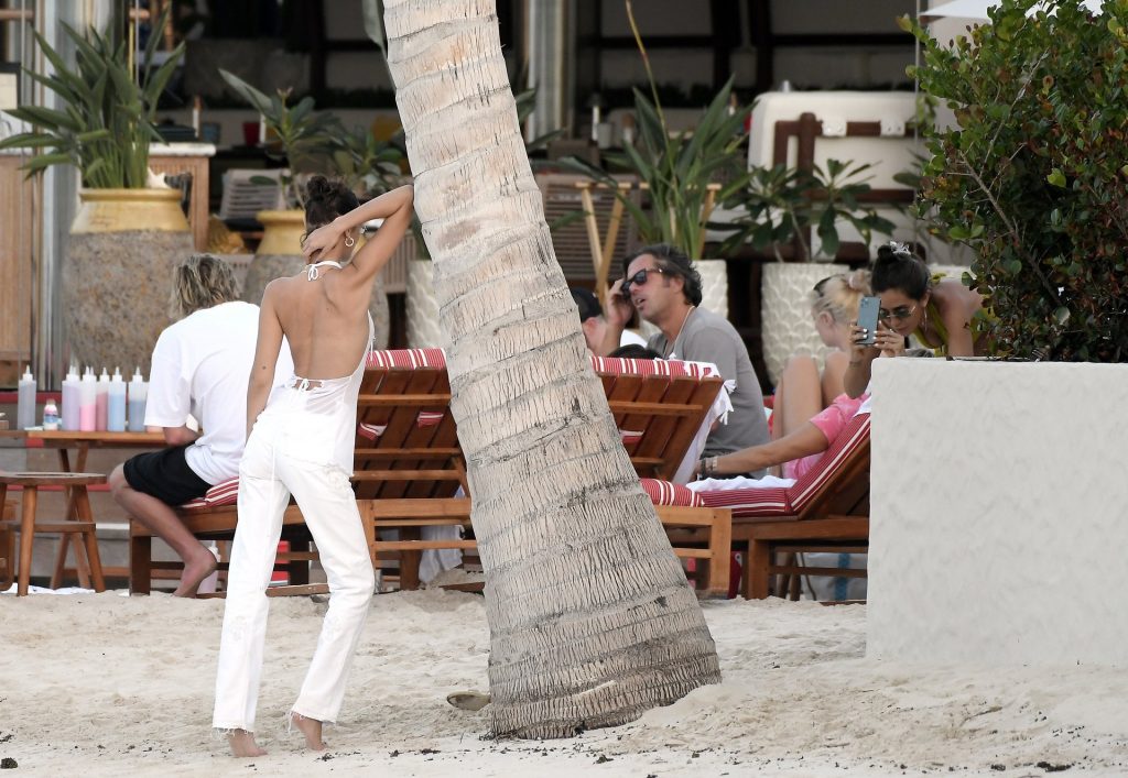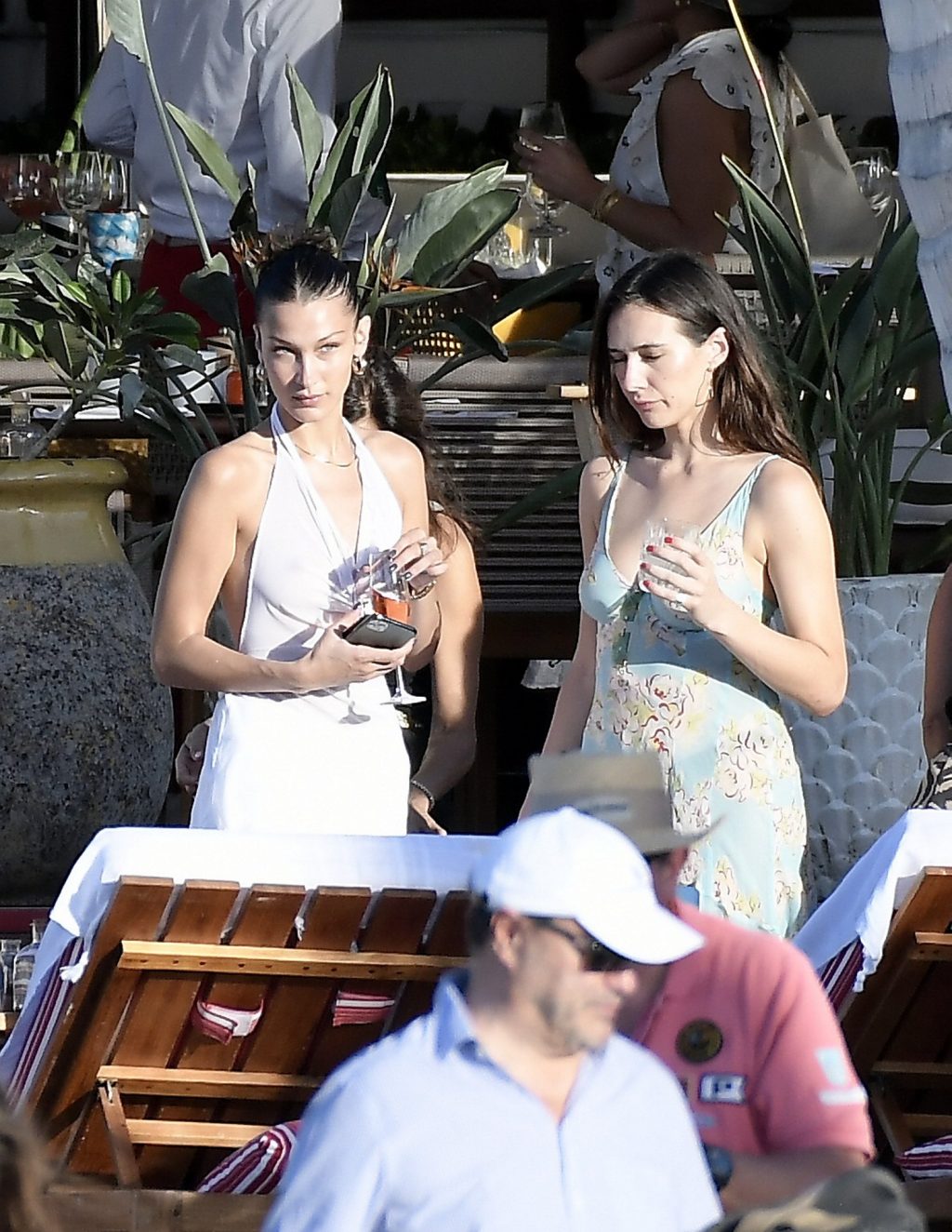 Белла Хадид была замечена наслаждающейся днем с друзьями, включая Джесси Джо Старк, Джордана Барретта, Девона Карлсона и Лорен Перес в Сен-Бартс, 12/08/2019.