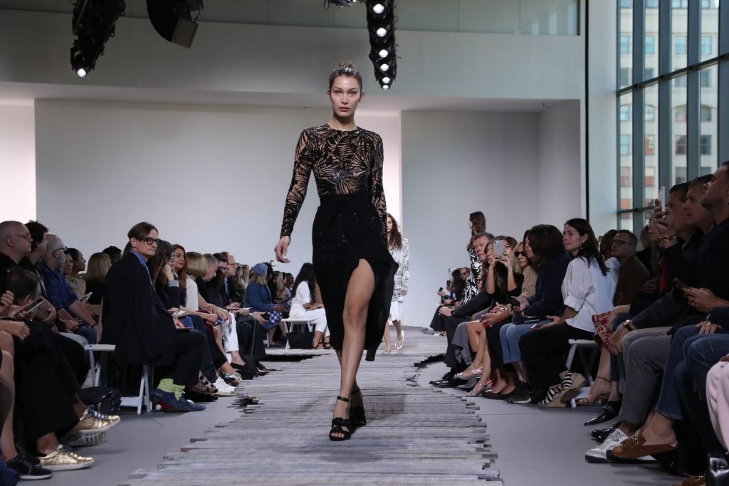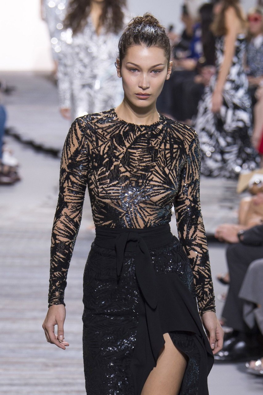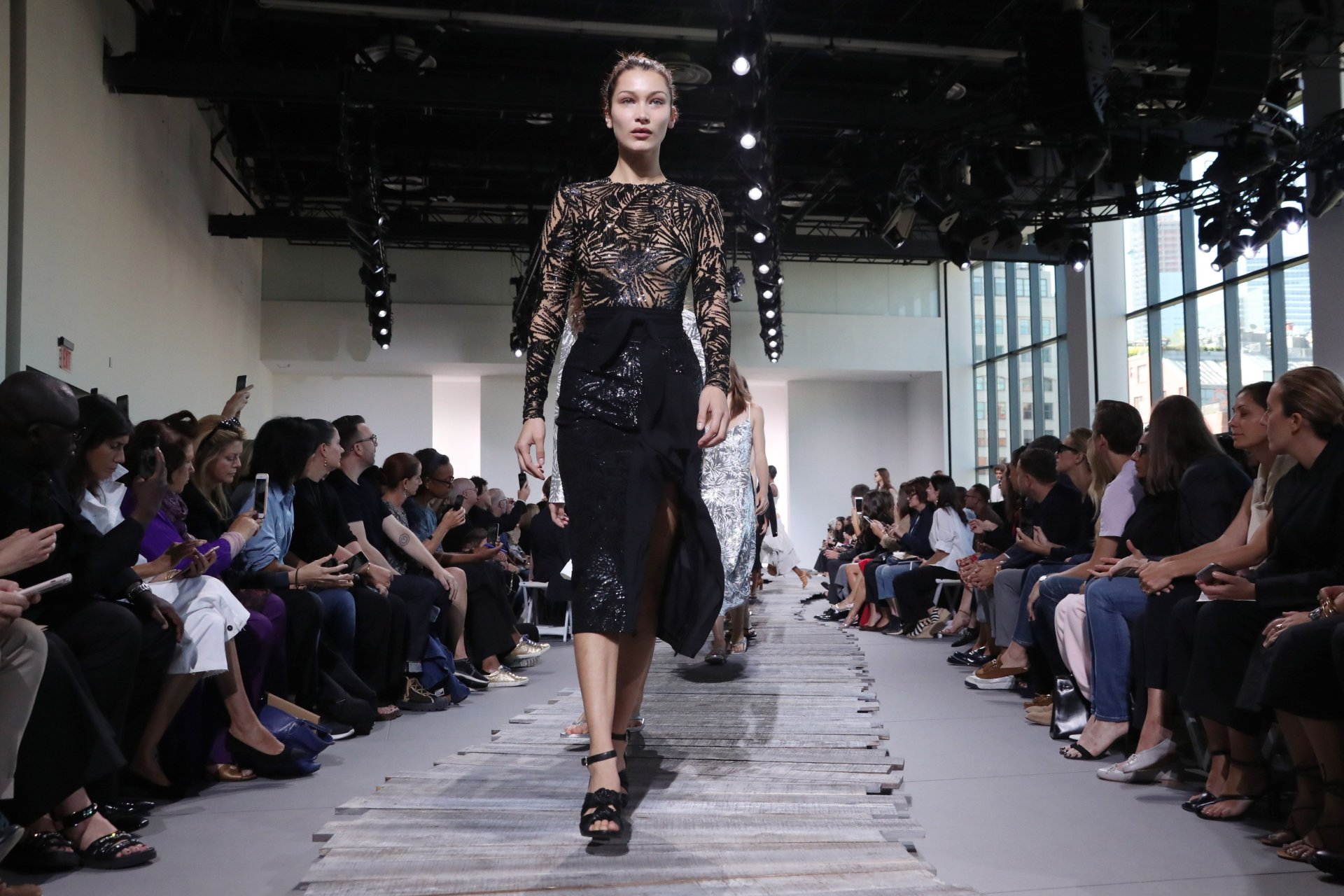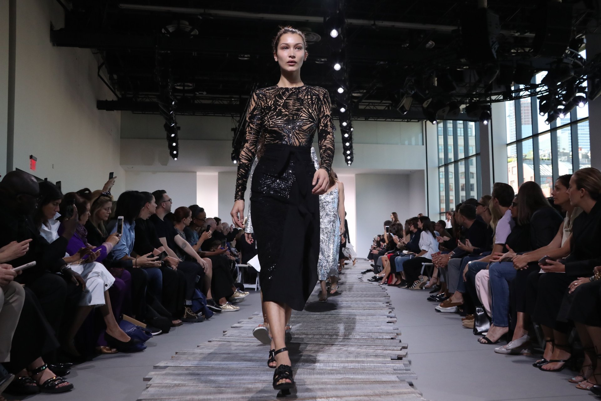 Модель Белла Хадид дефилирует на показе Michael Kors весна/лето 2018 на Неделе моды в Нью-Йорке, 13.09.2017.