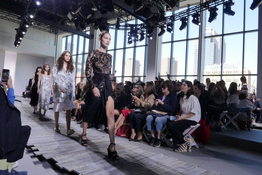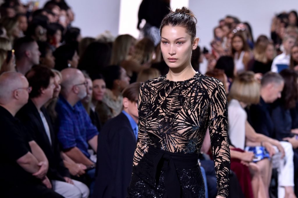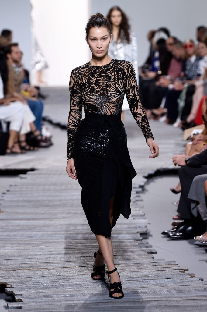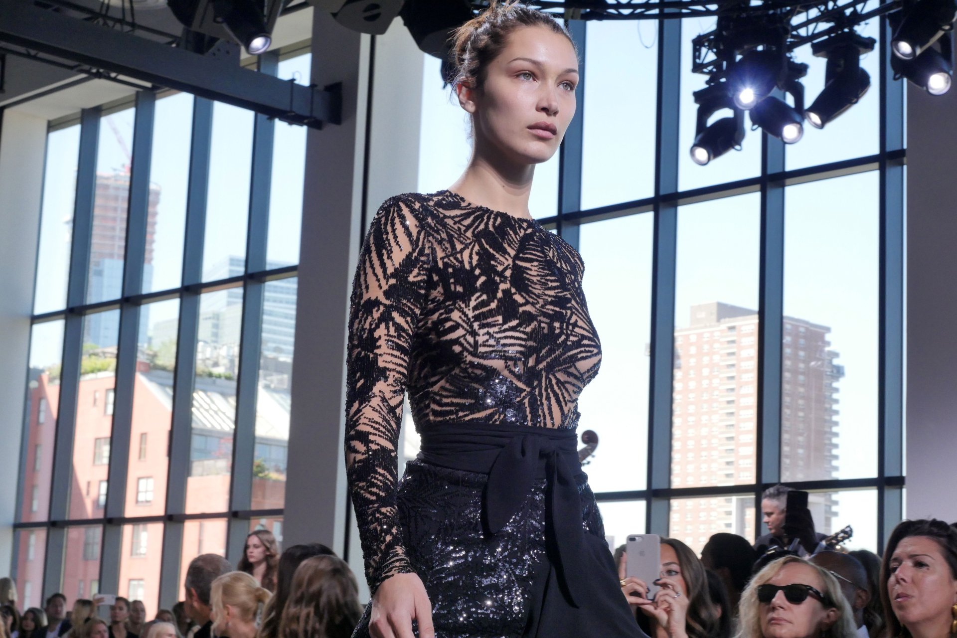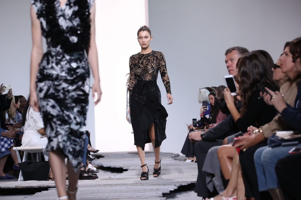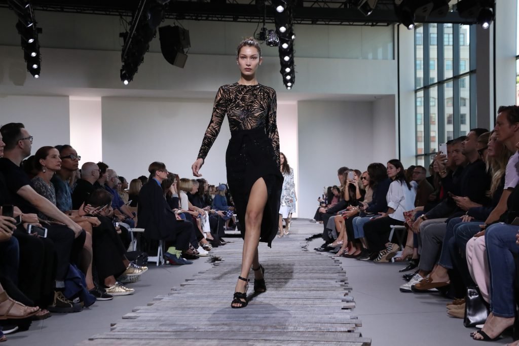 Модель Белла Хадид дефилирует на показе Michael Kors весна/лето 2018 на Неделе моды в Нью-Йорке, 13.09.2017.
