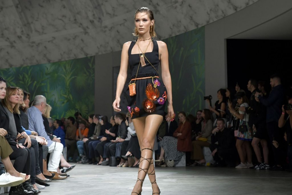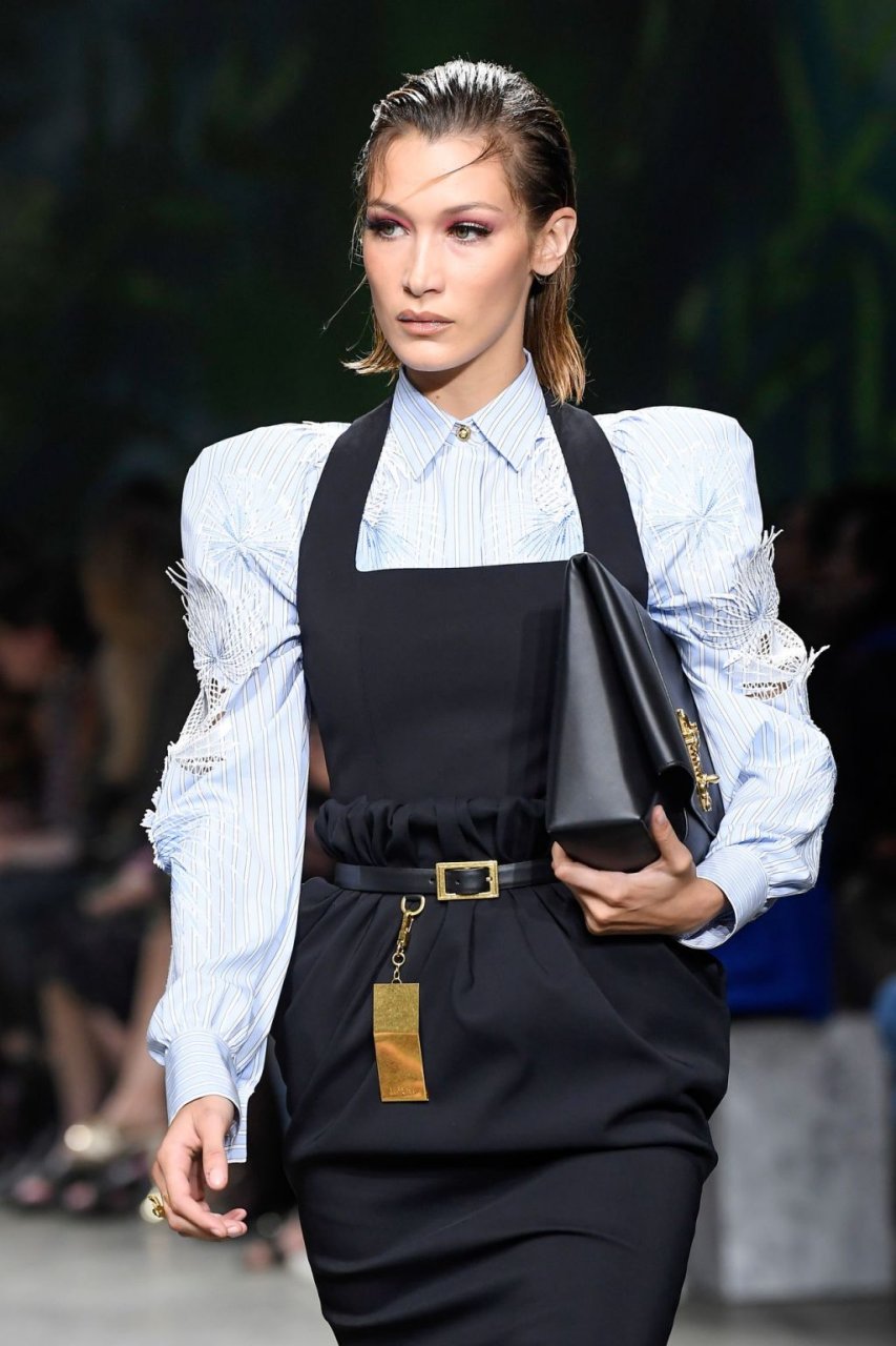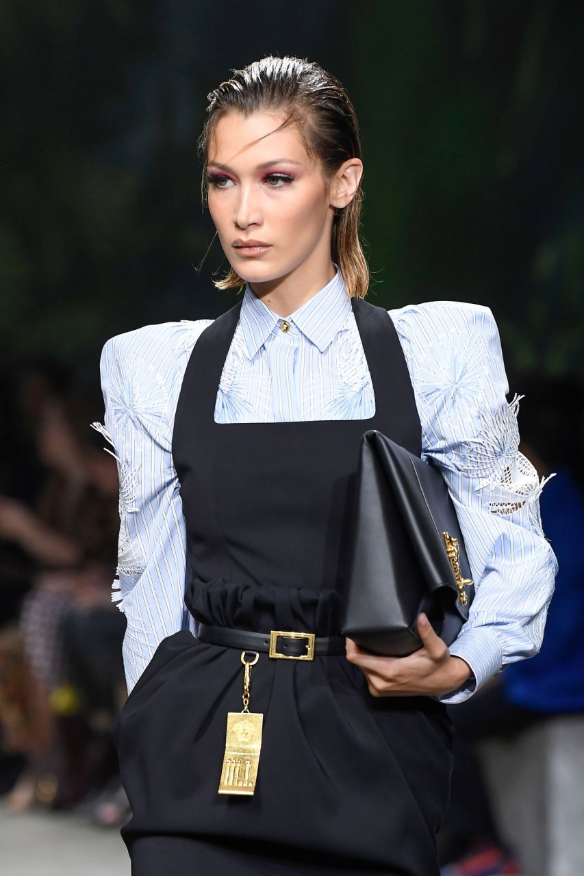Модель Белла Хадид на подиуме в разных нарядах на шоу Versace Весна/Лето 2020 во время Миланской недели моды в Италии, 20.09.2019.