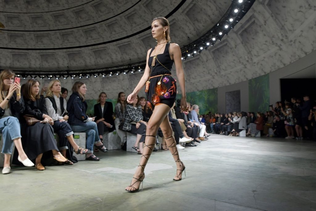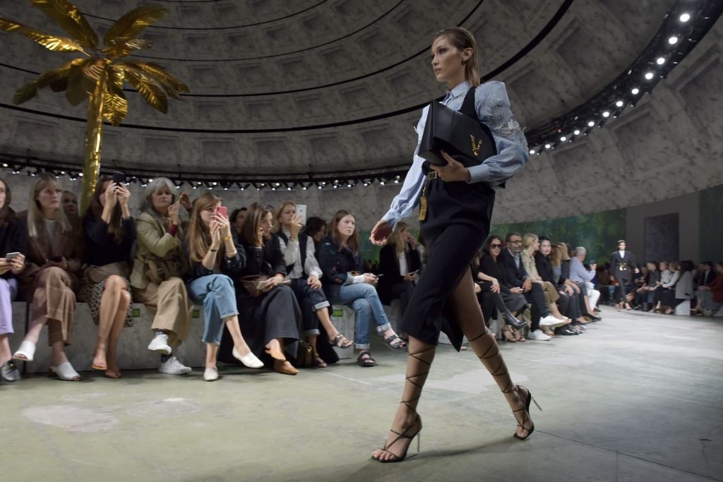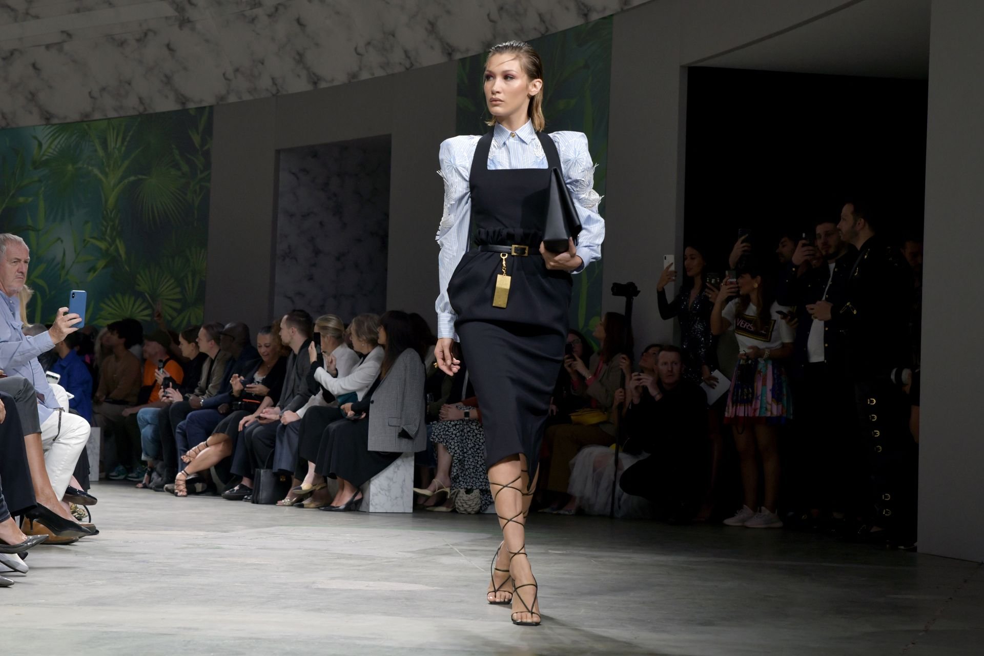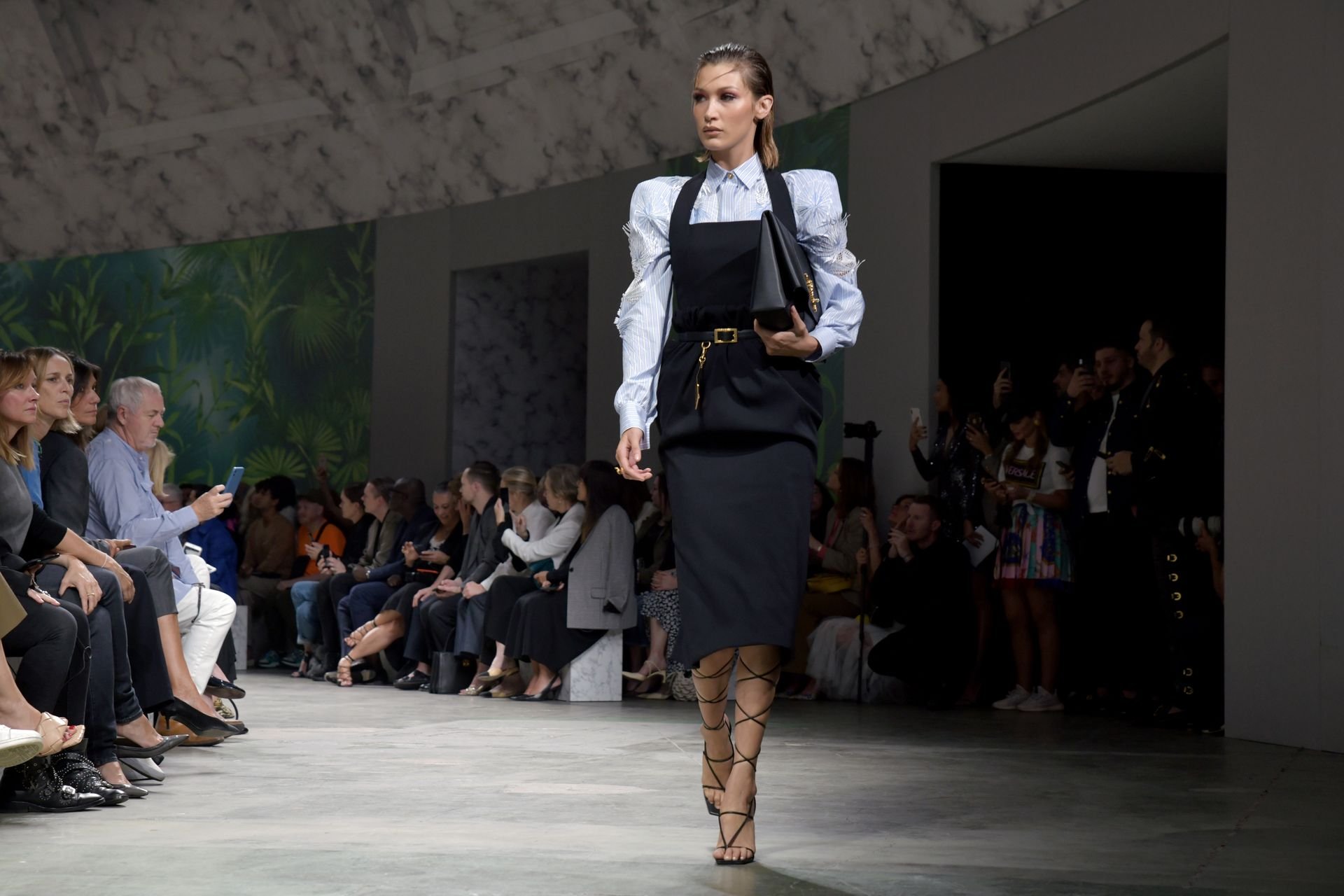 Модель Белла Хадид на подиуме в разных нарядах на шоу Versace Весна/Лето 2020 во время Миланской недели моды в Италии, 20.09.2019.