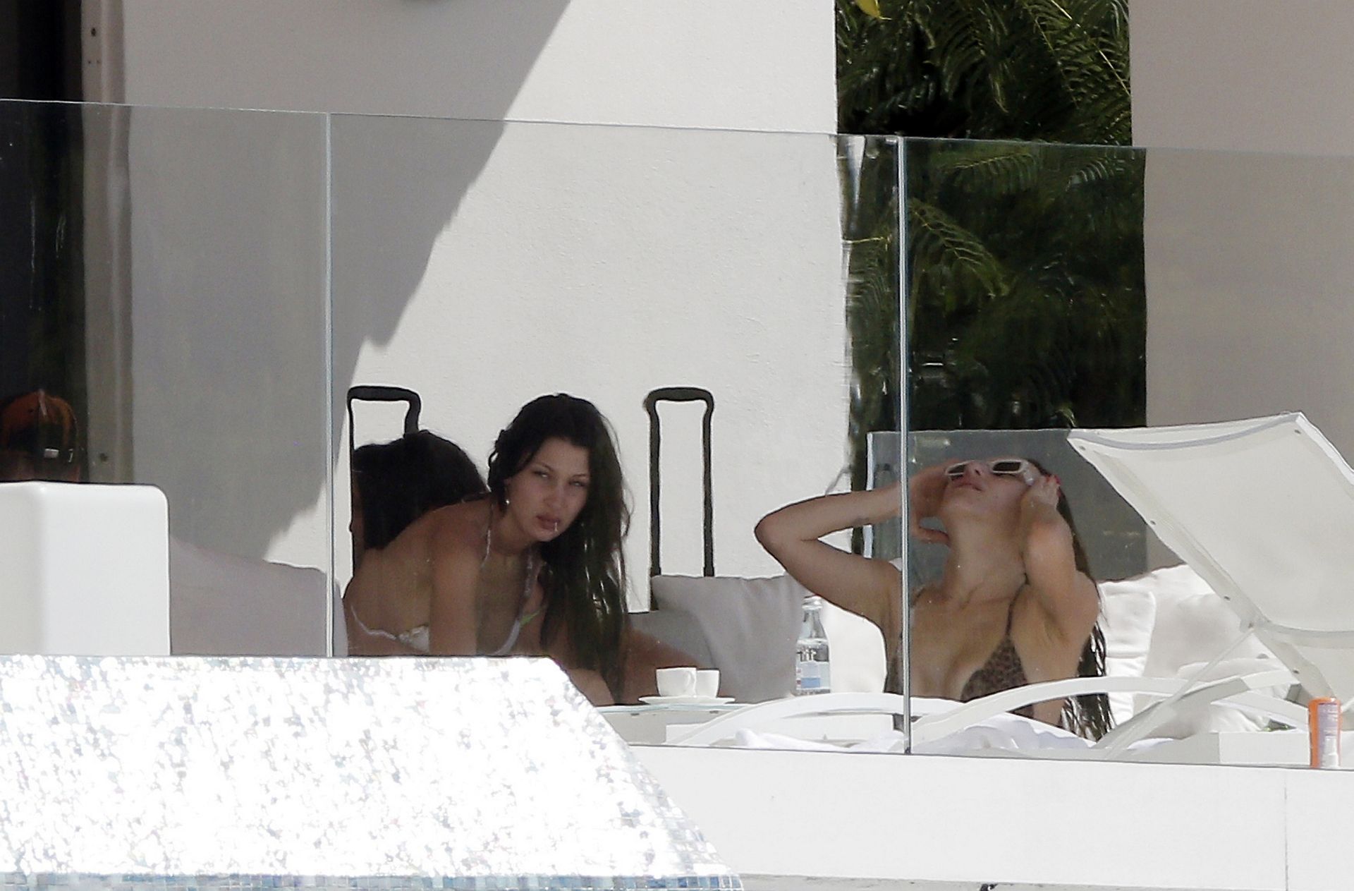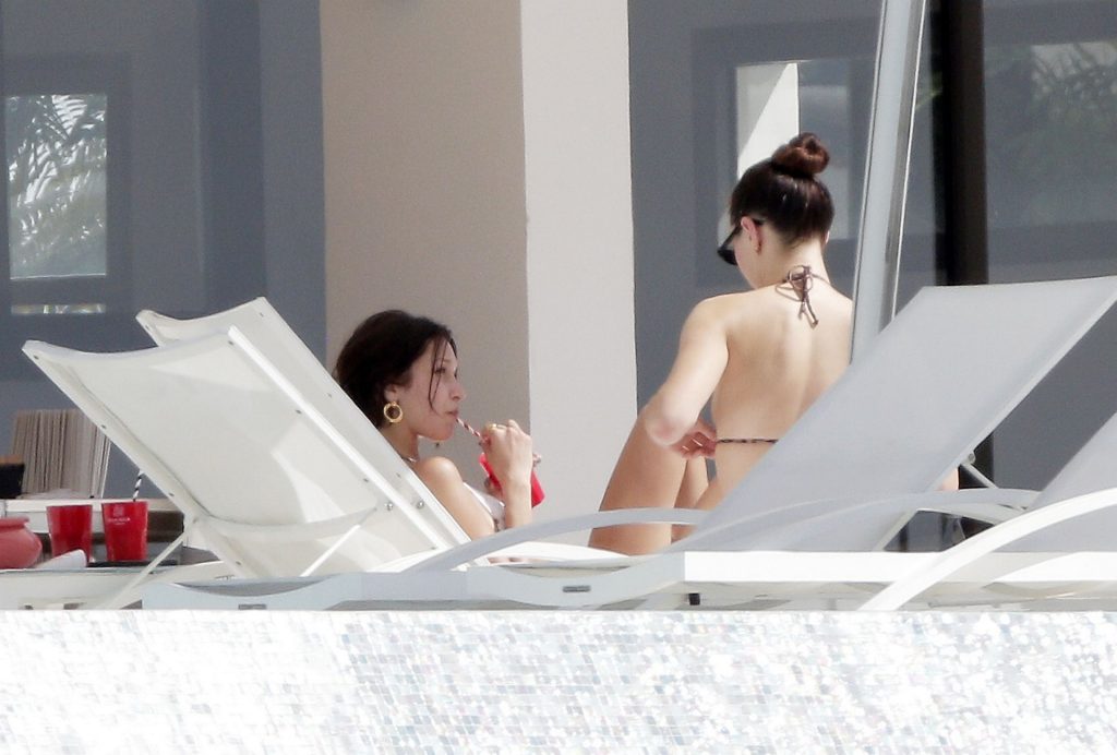 Bella Hadid демонстрирует свою невероятную фигуру в крошечном бикини, наслаждаясь карибским солнцем с друзьями, включая Jesse Jo Stark, Devon Carlson и Lauren Perez на острове Сент-Бартс, 12/07/2019.